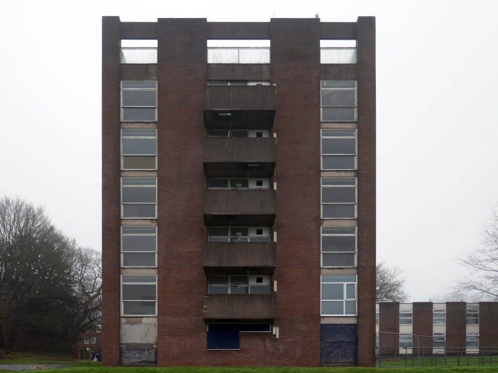 The majority of housing was two to four storeys in height with the exception of this now empty point block.