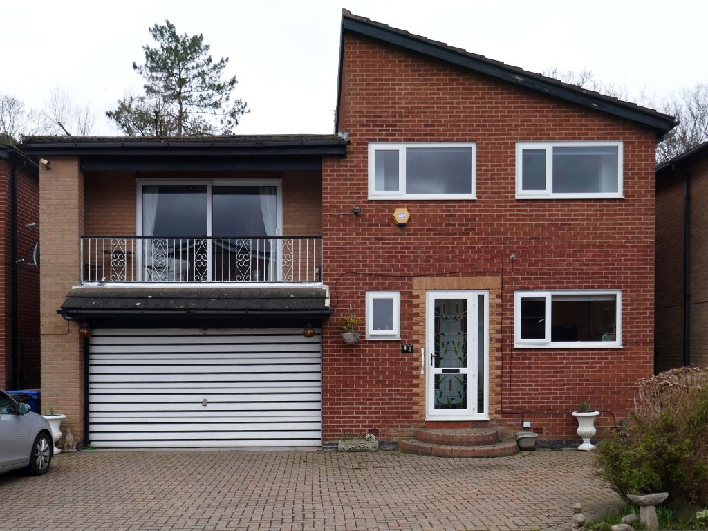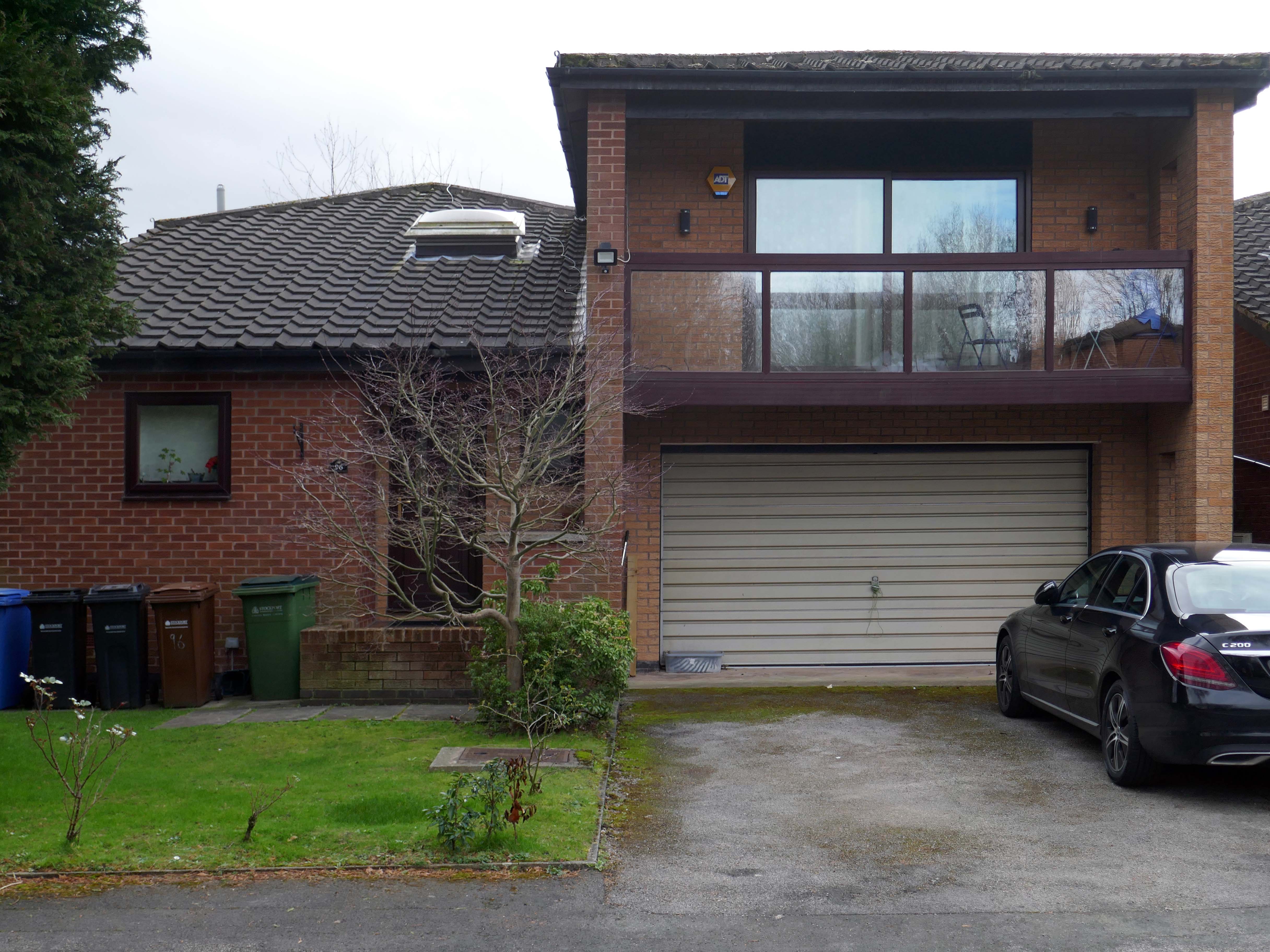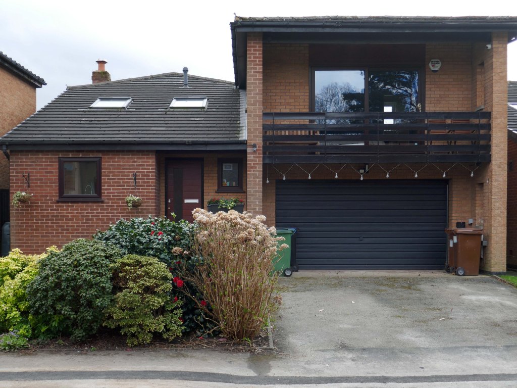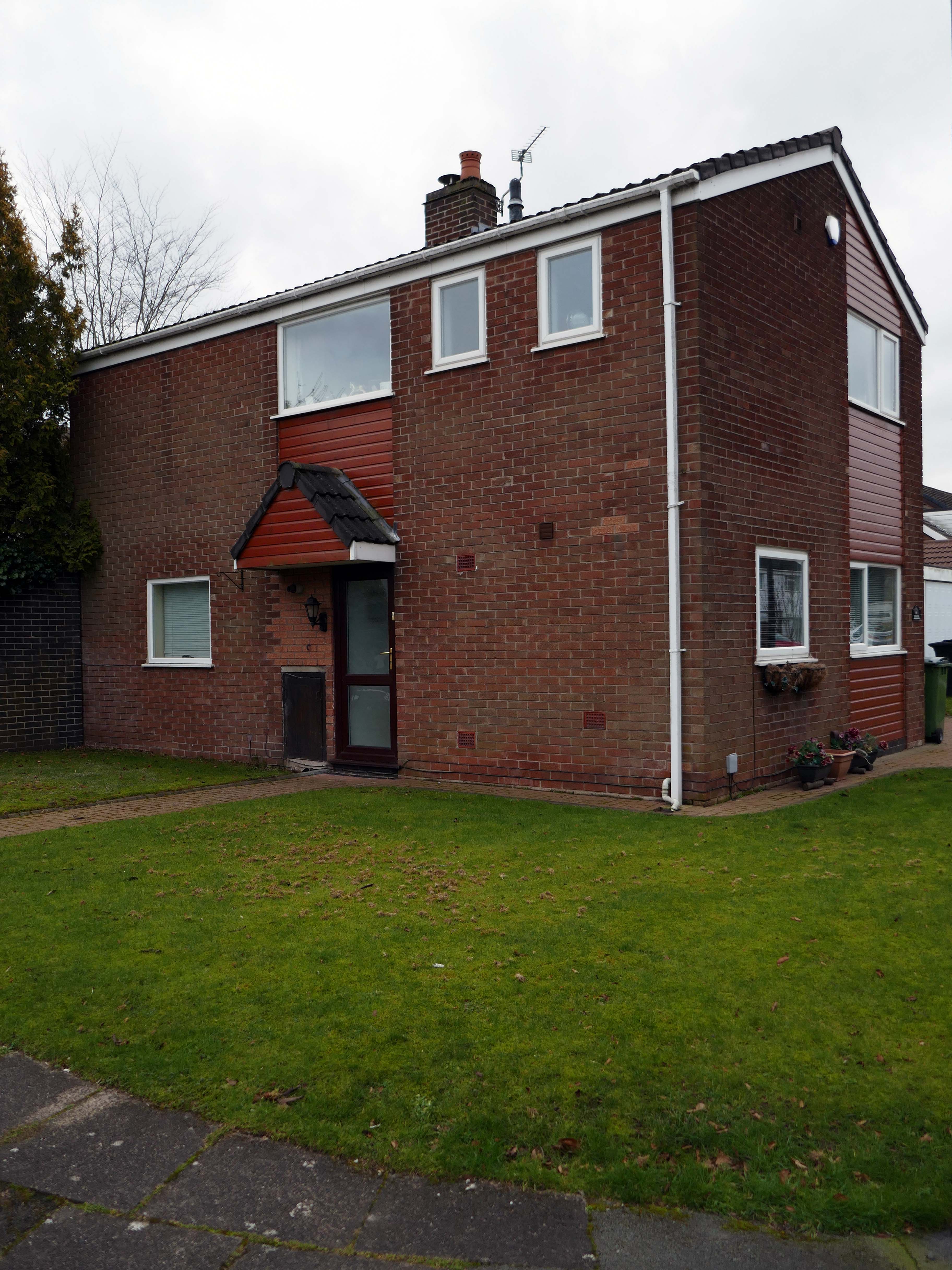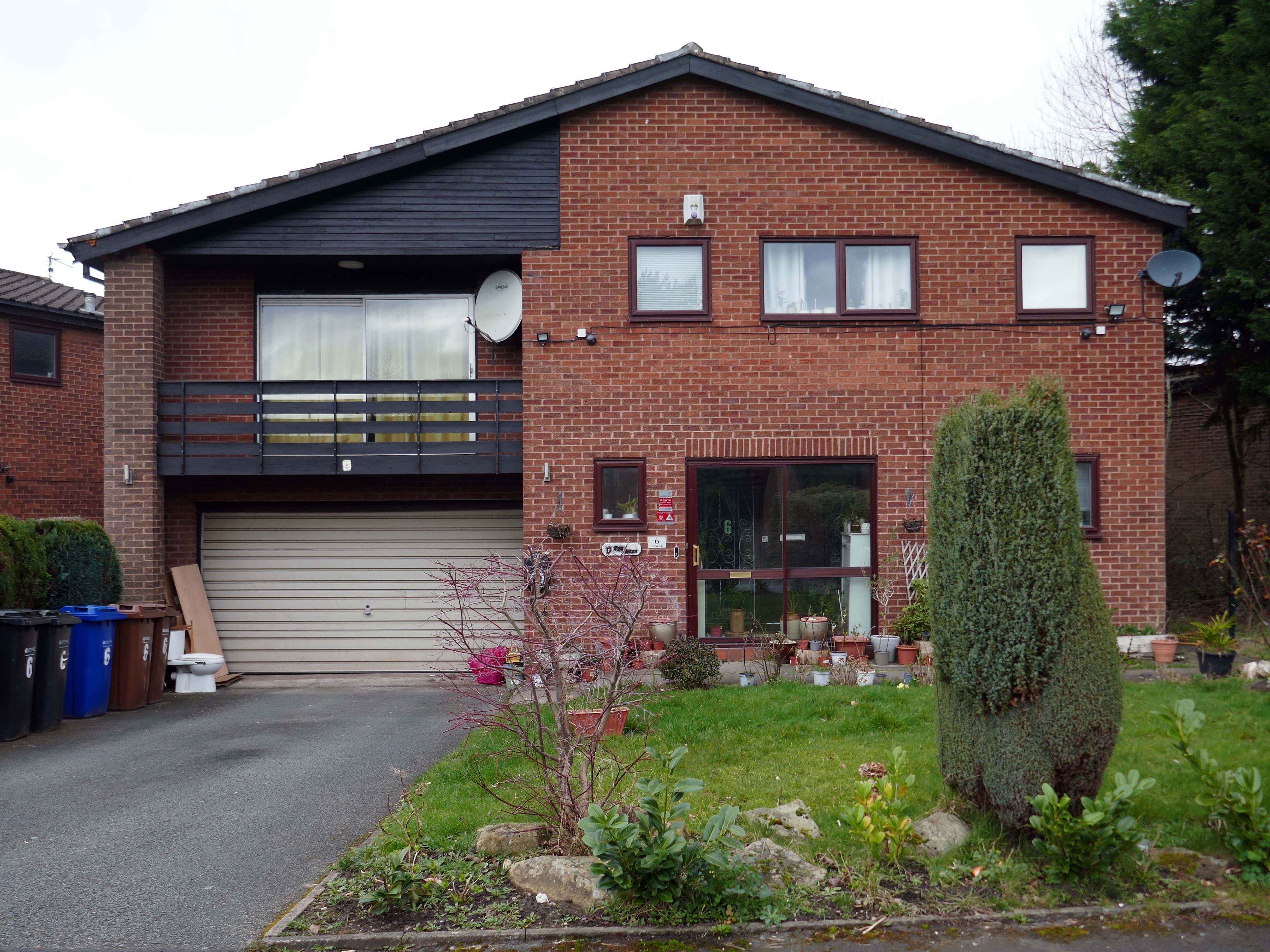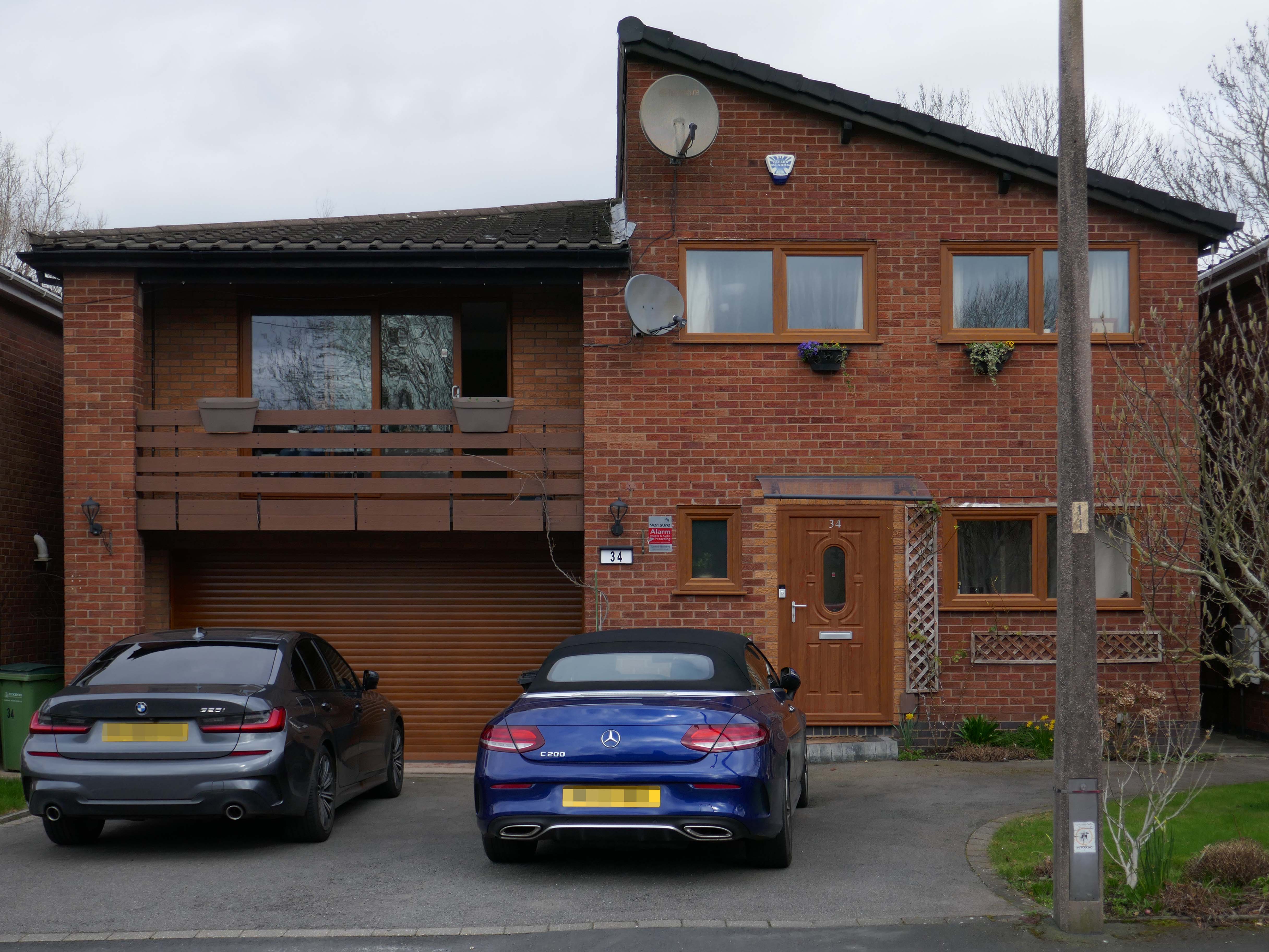 High above the streets of Stockport – zooming in to a cluster of cul de sacs branching out from Tithe Barn Road.