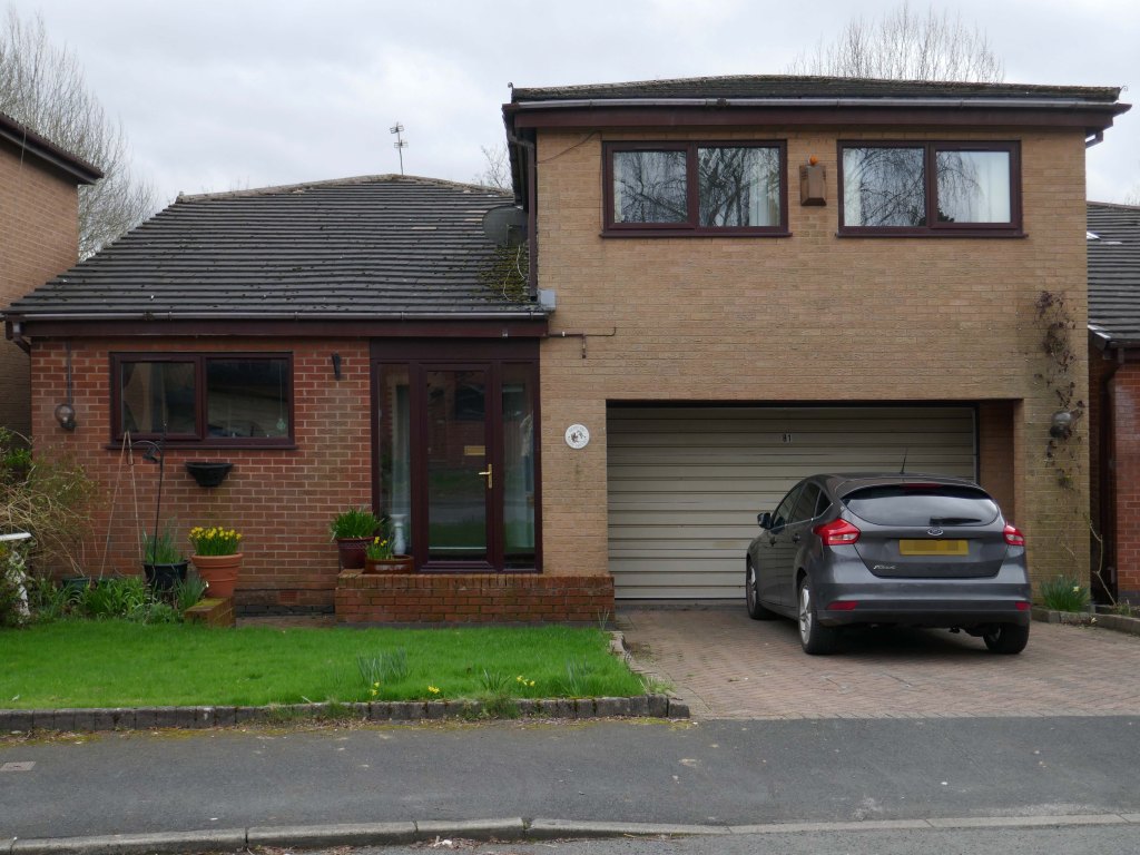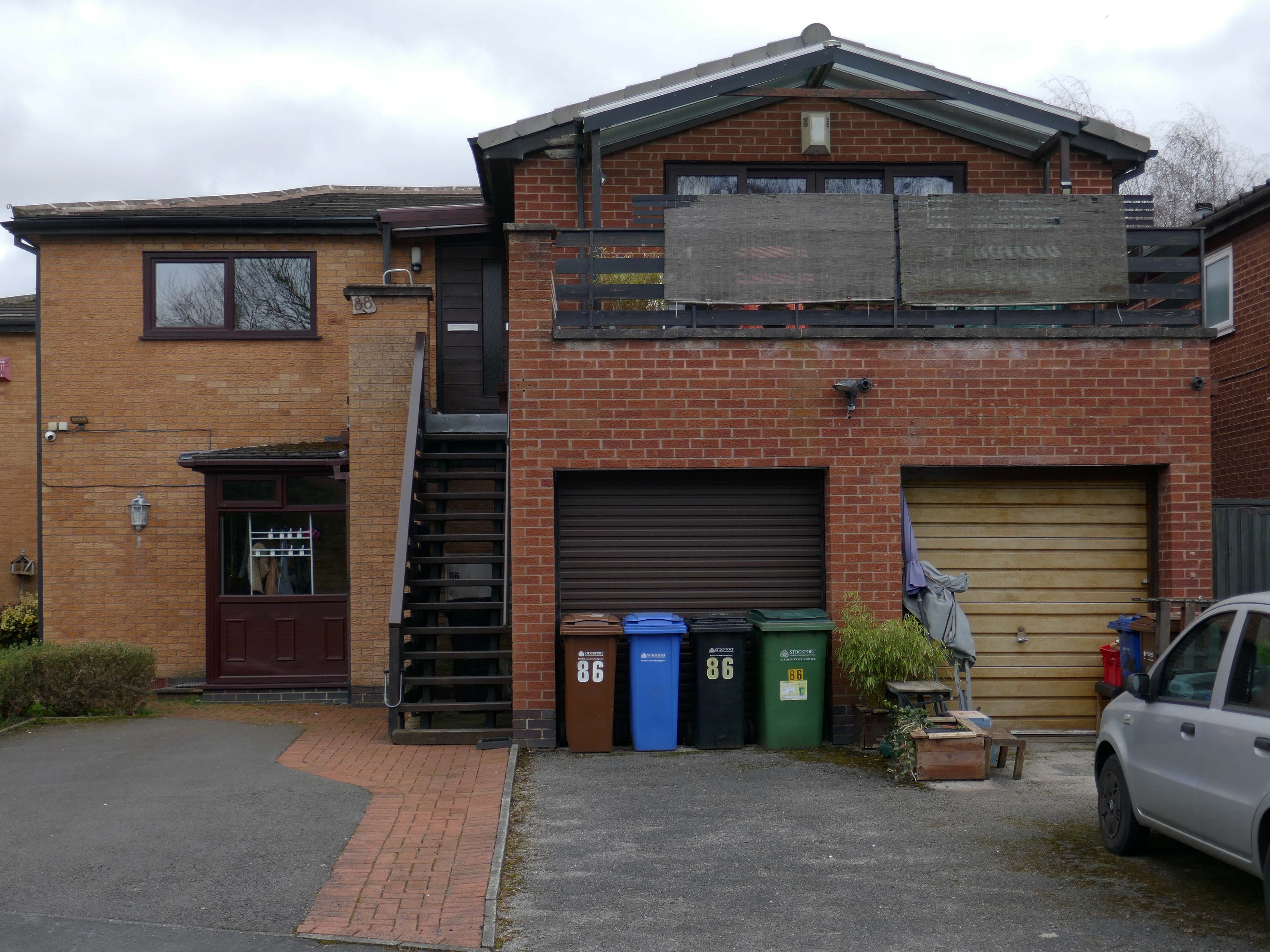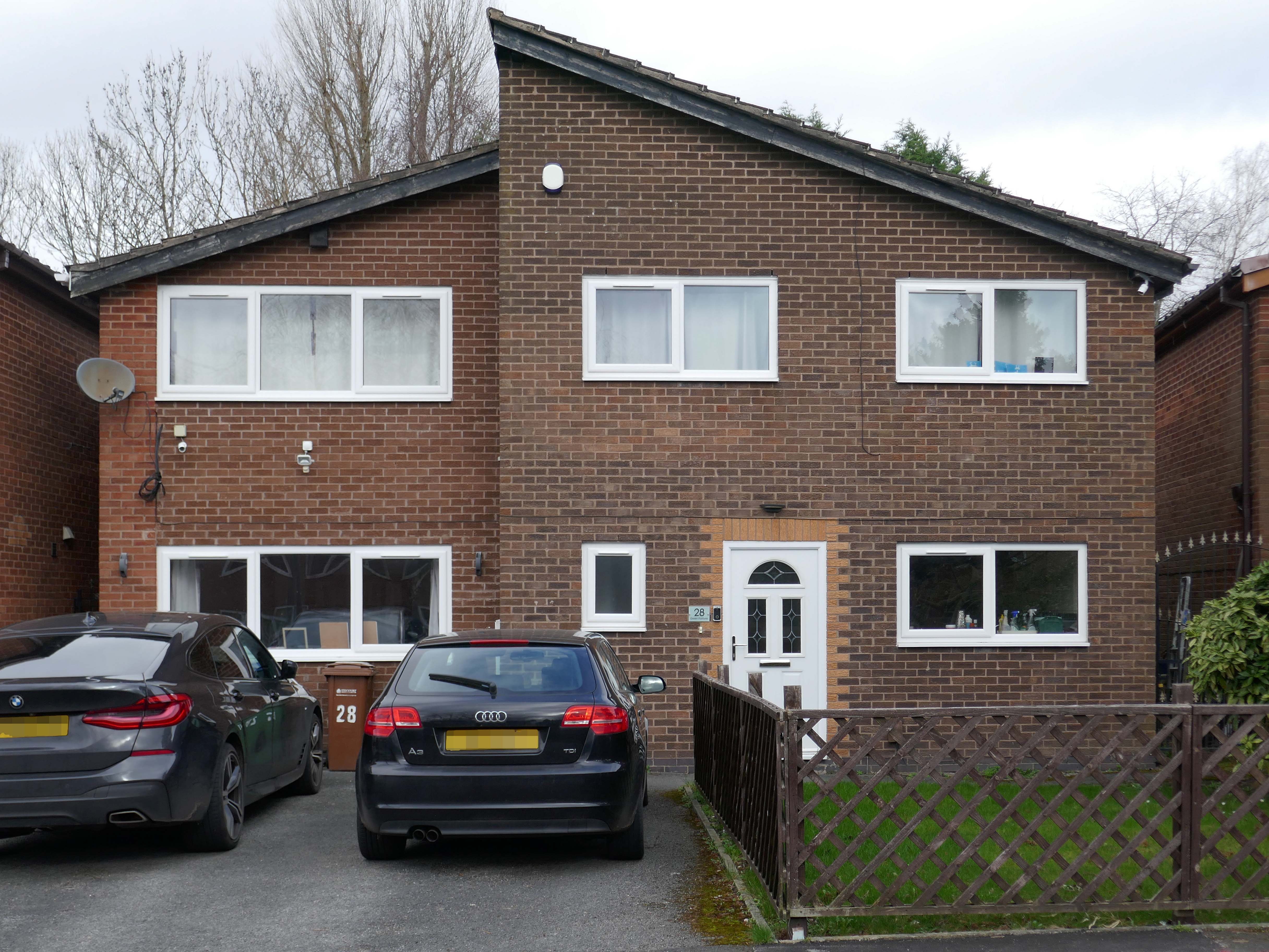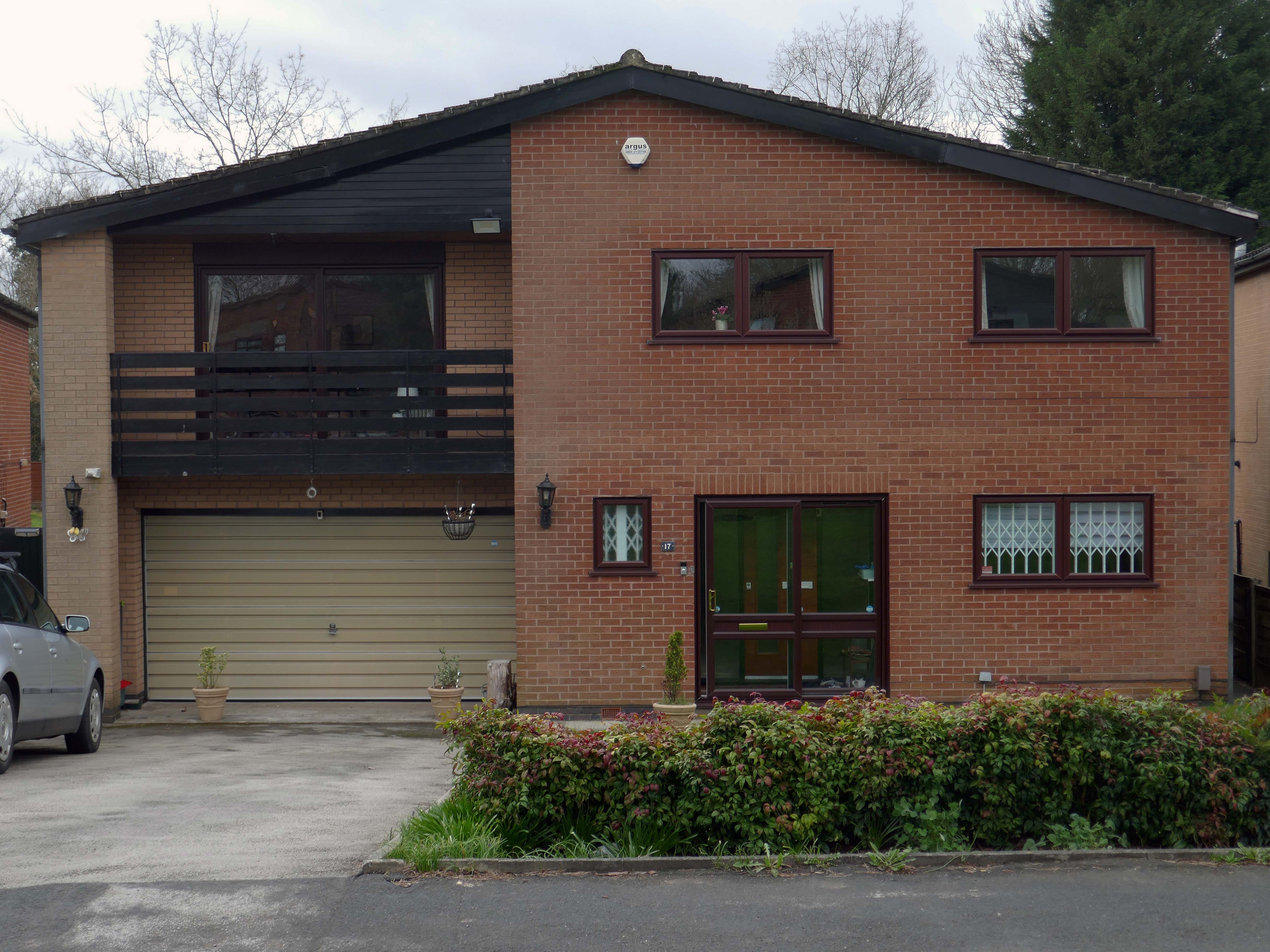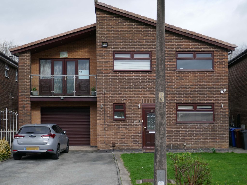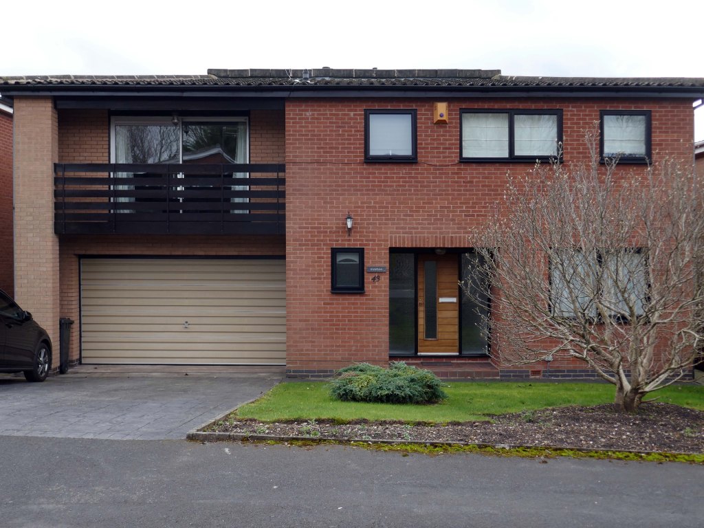 High above the streets of Stockport – zooming in to a cluster of cul de sacs branching out from Tithe Barn Road.