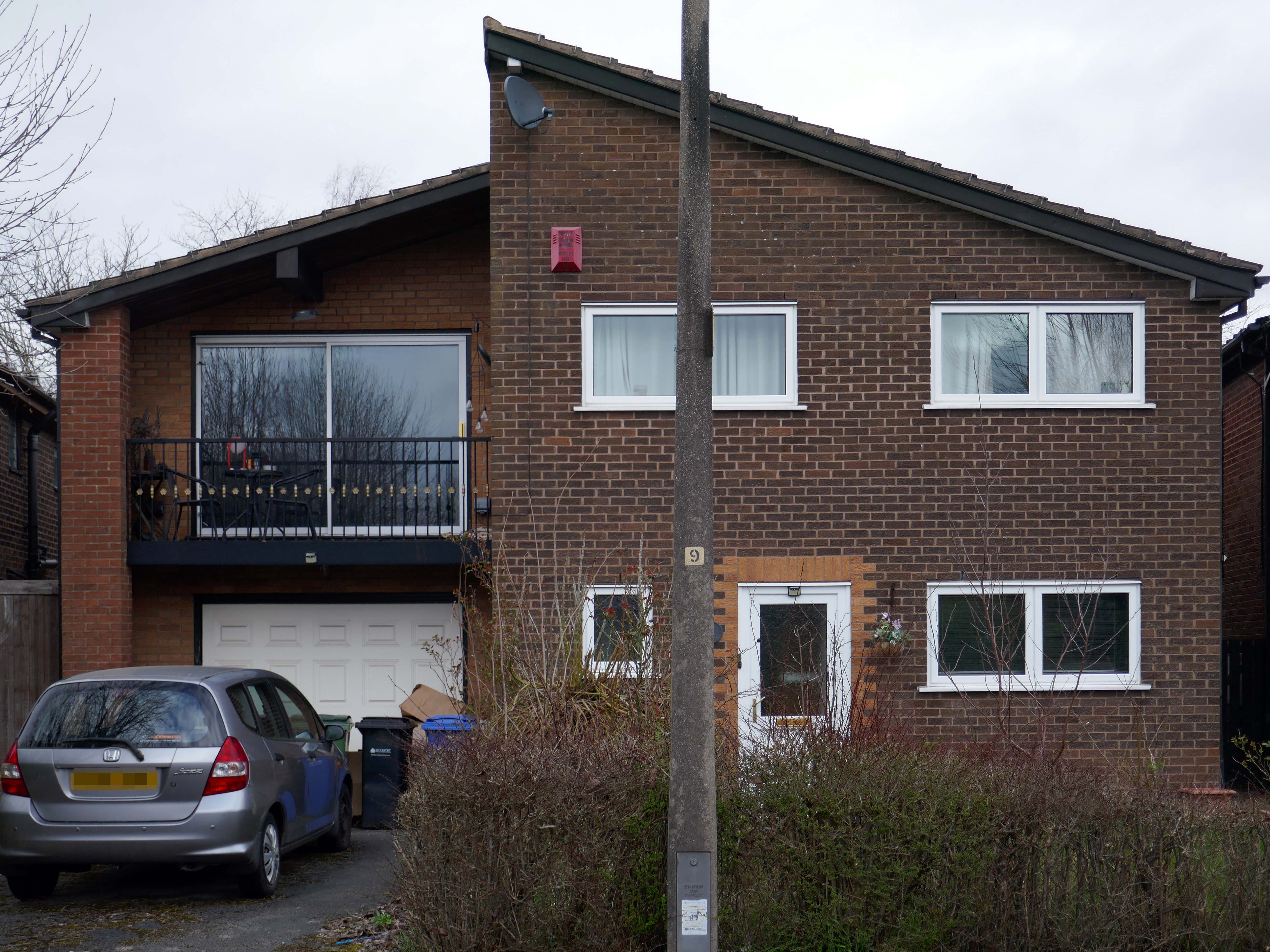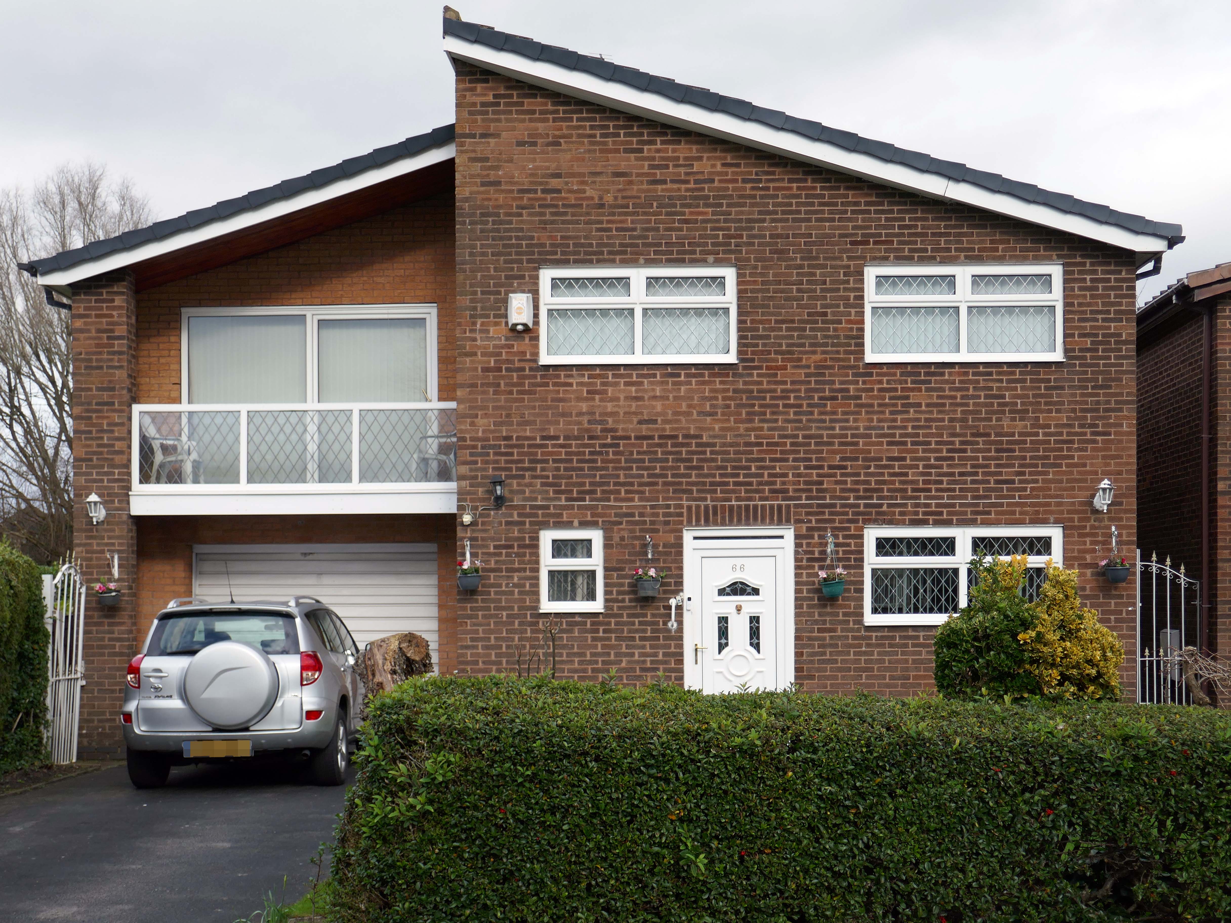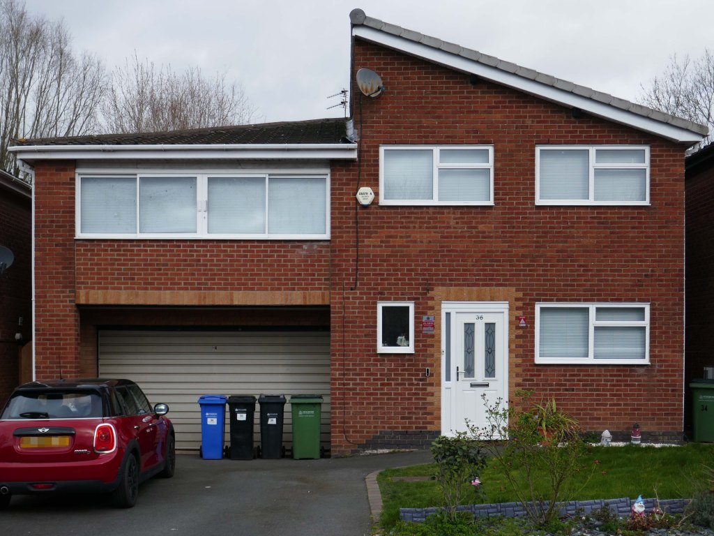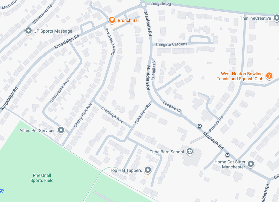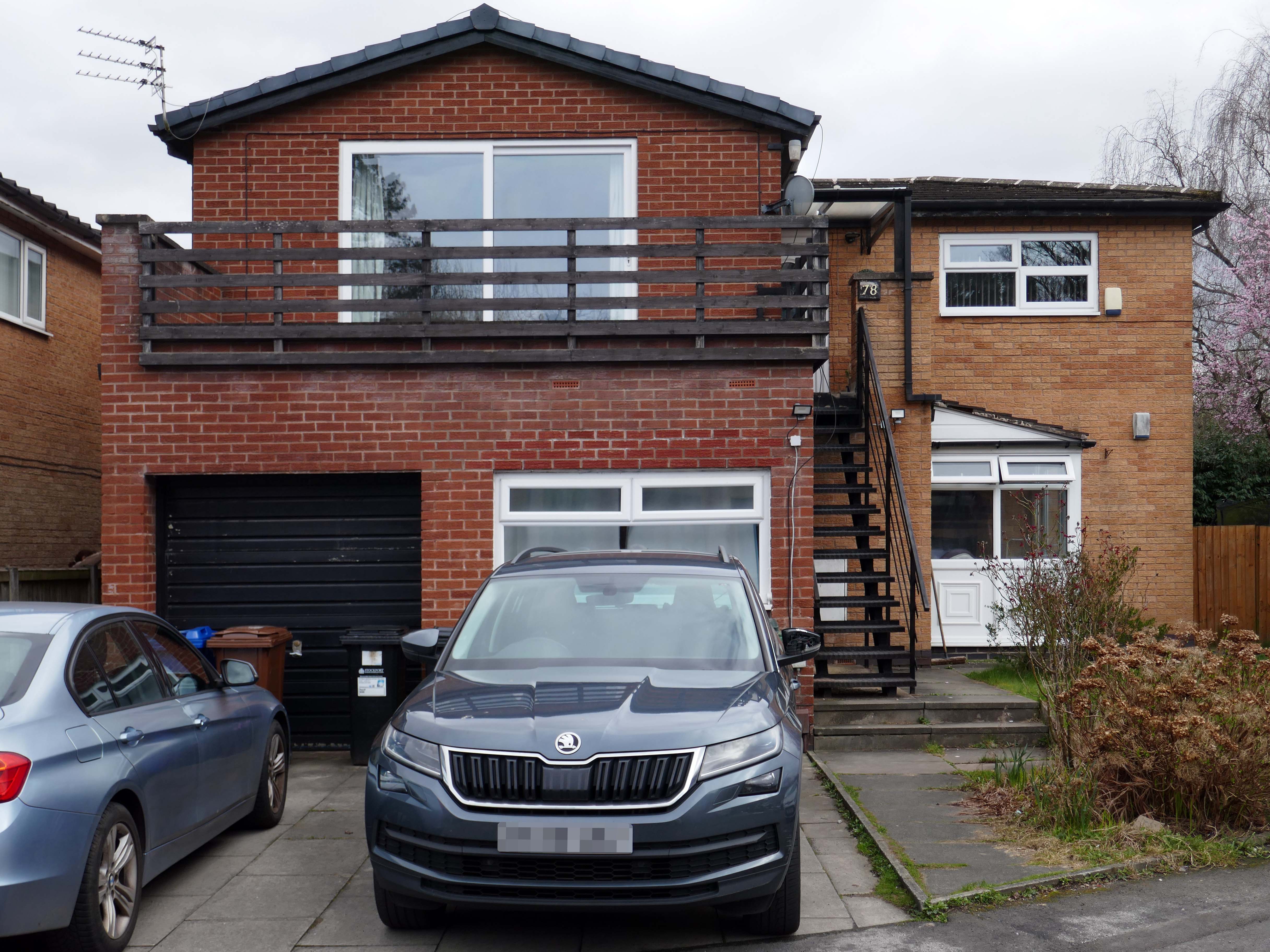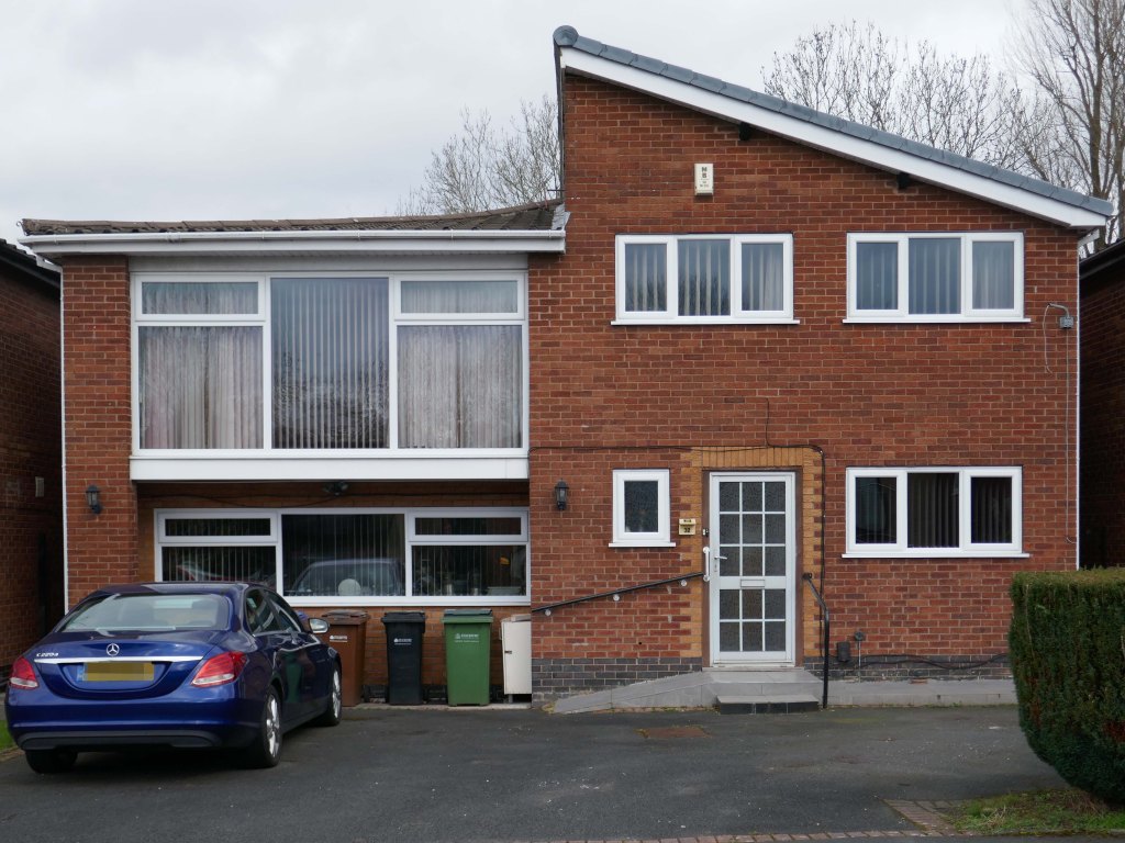 High above the streets of Stockport – zooming in to a cluster of cul de sacs branching out from Tithe Barn Road.