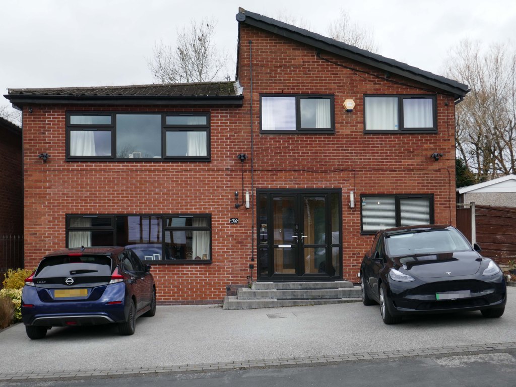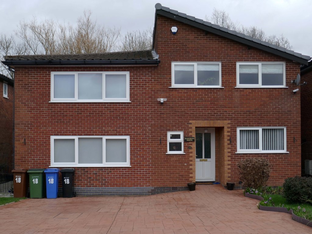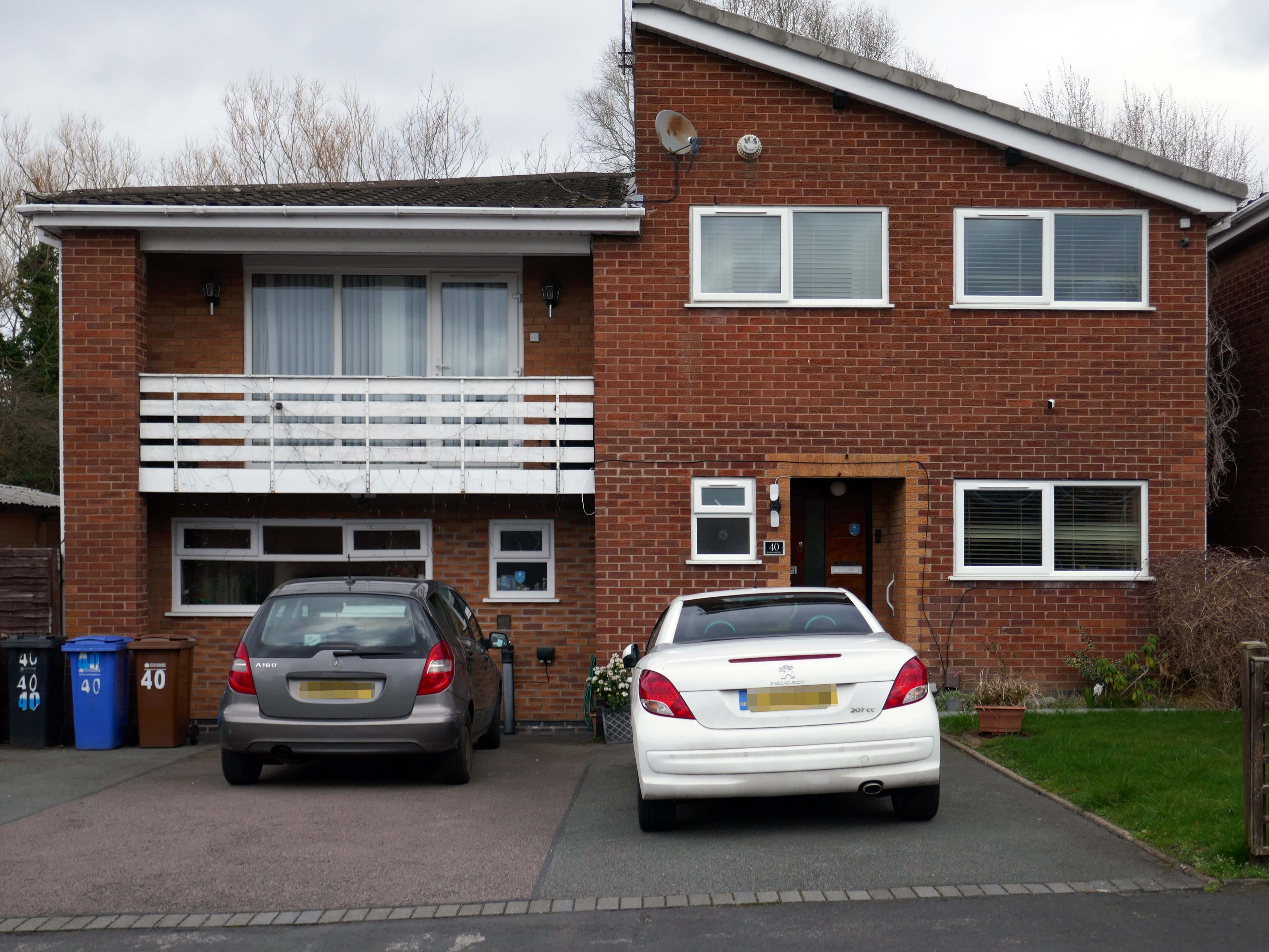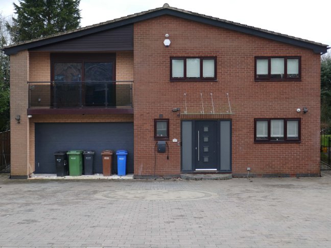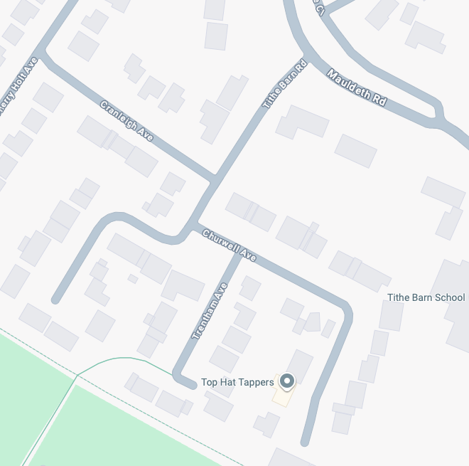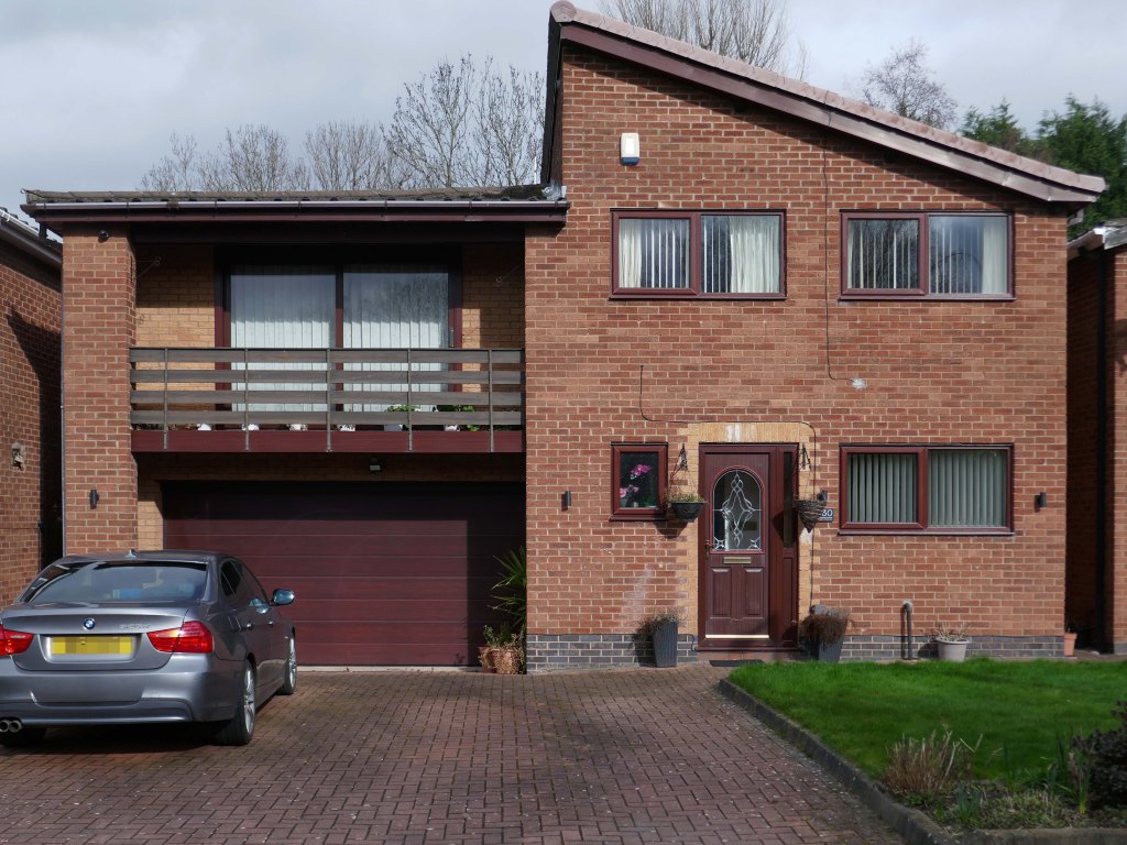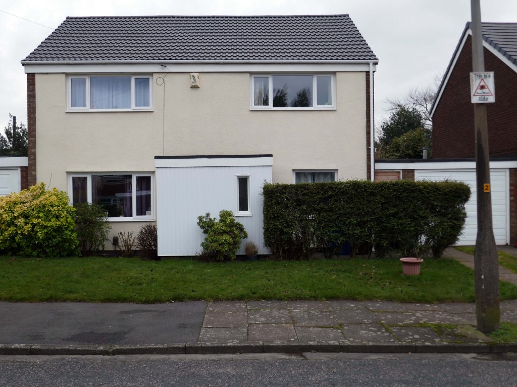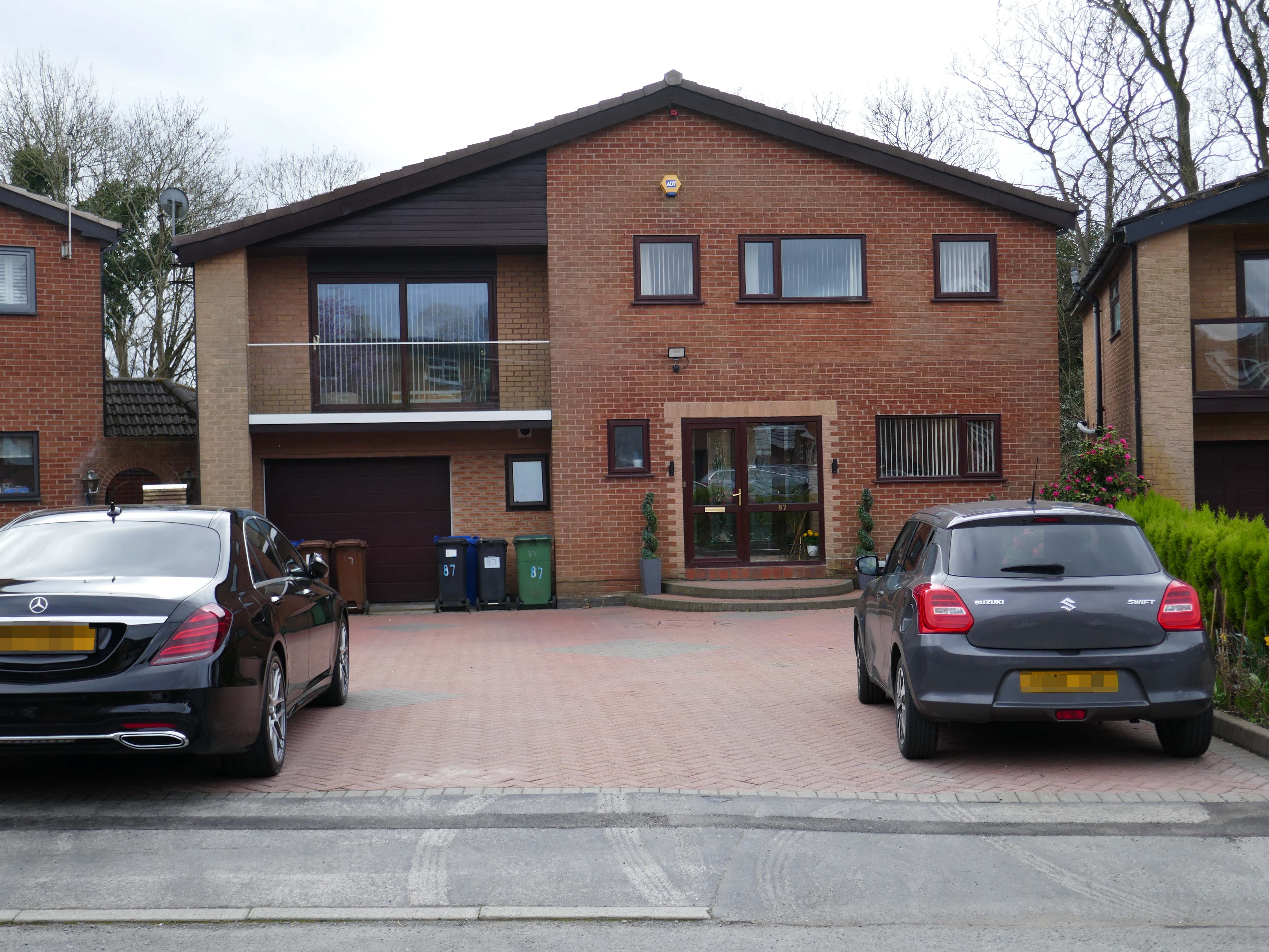 High above the streets of Stockport – zooming in to a cluster of cul de sacs branching out from Tithe Barn Road.