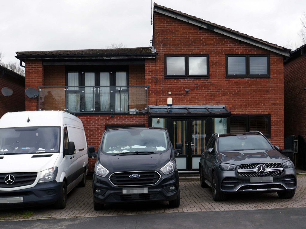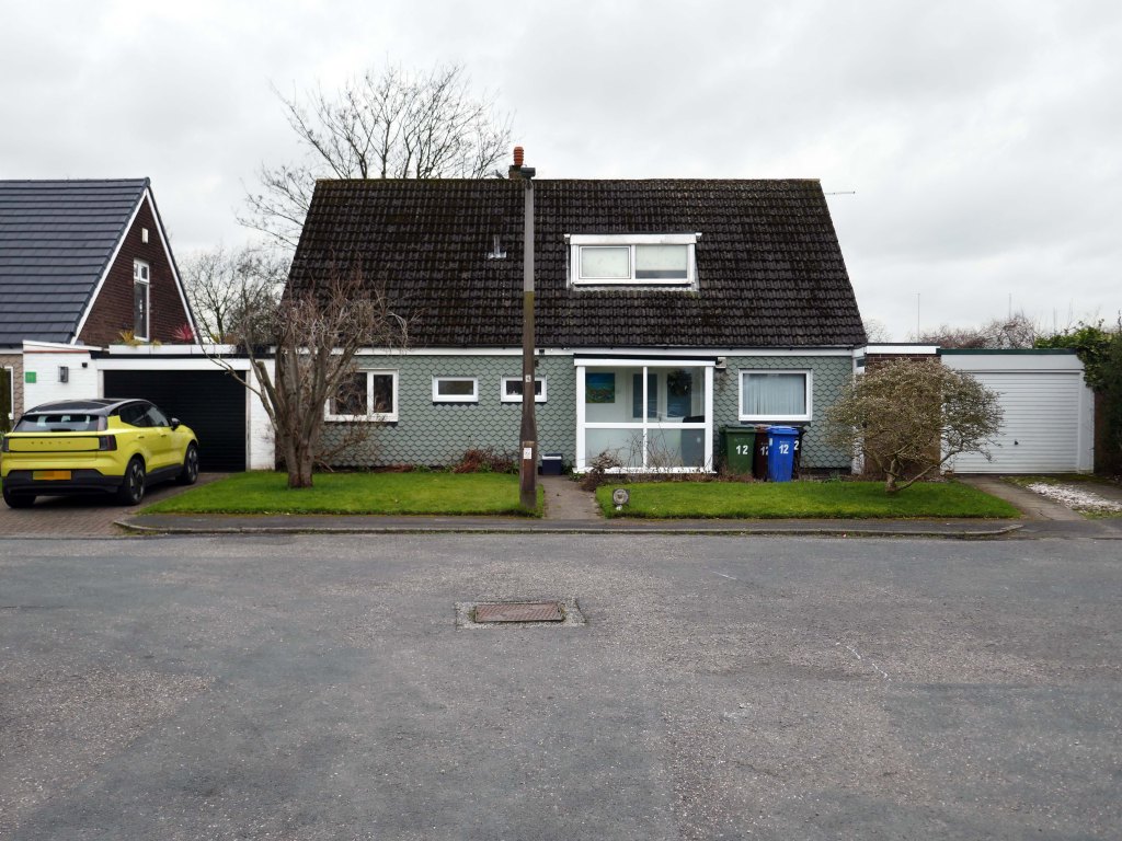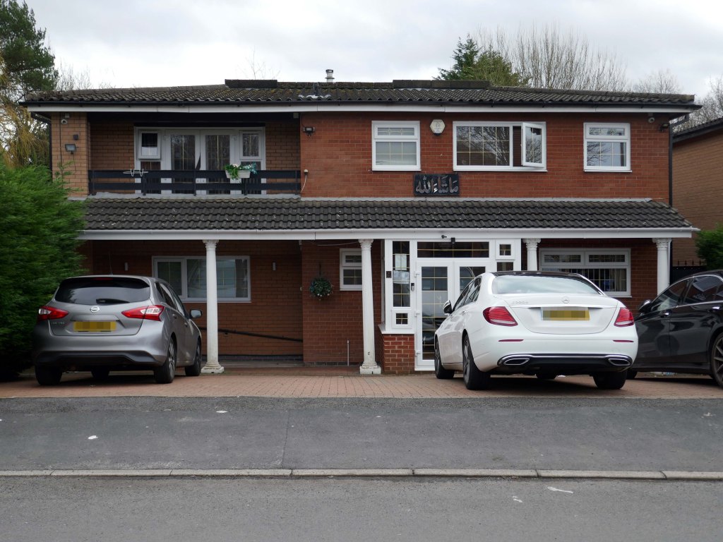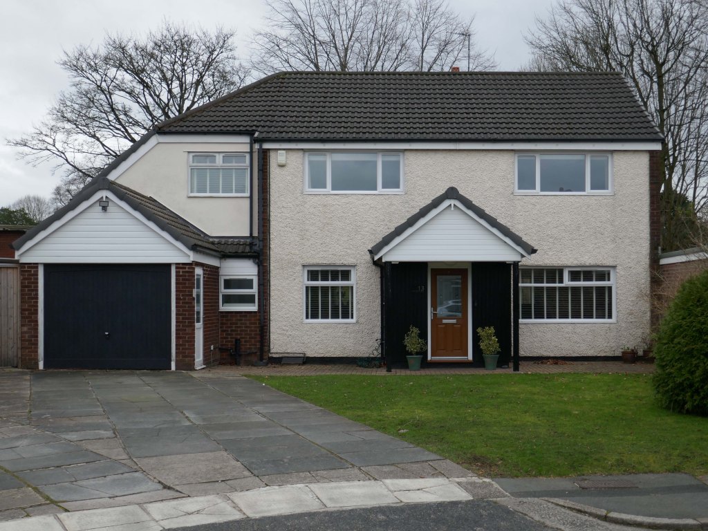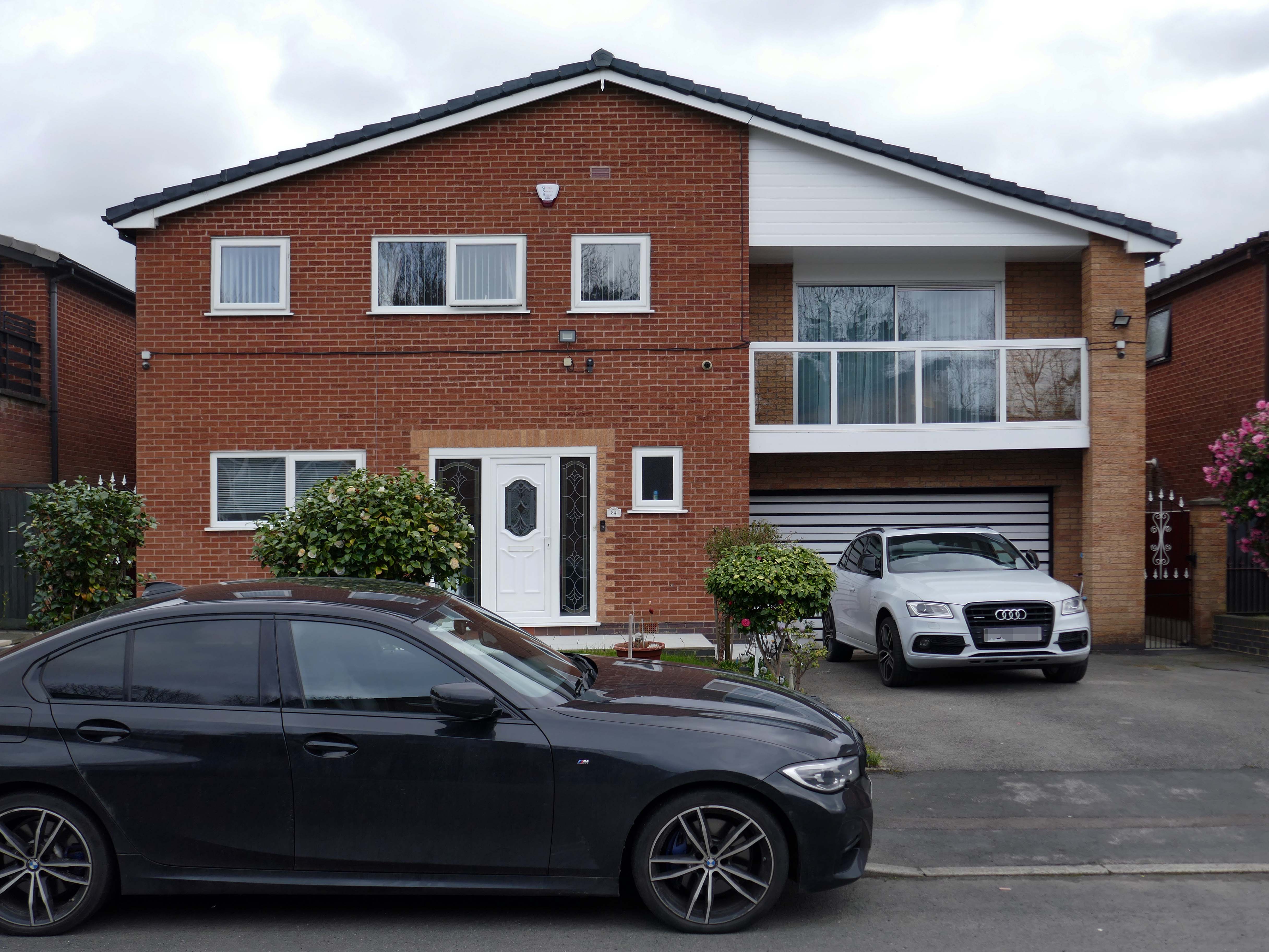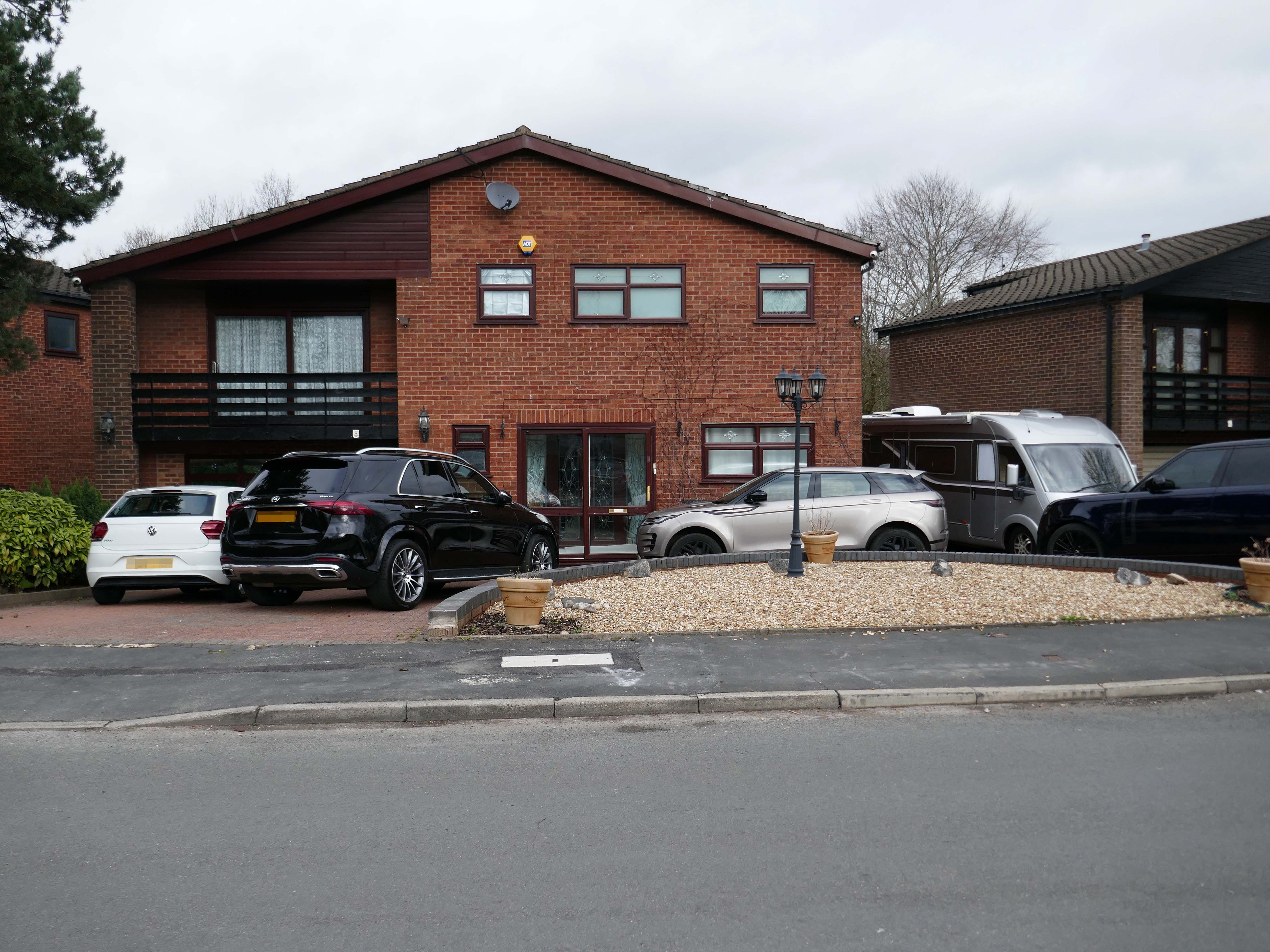 High above the streets of Stockport – zooming in to a cluster of cul de sacs branching out from Tithe Barn Road.
