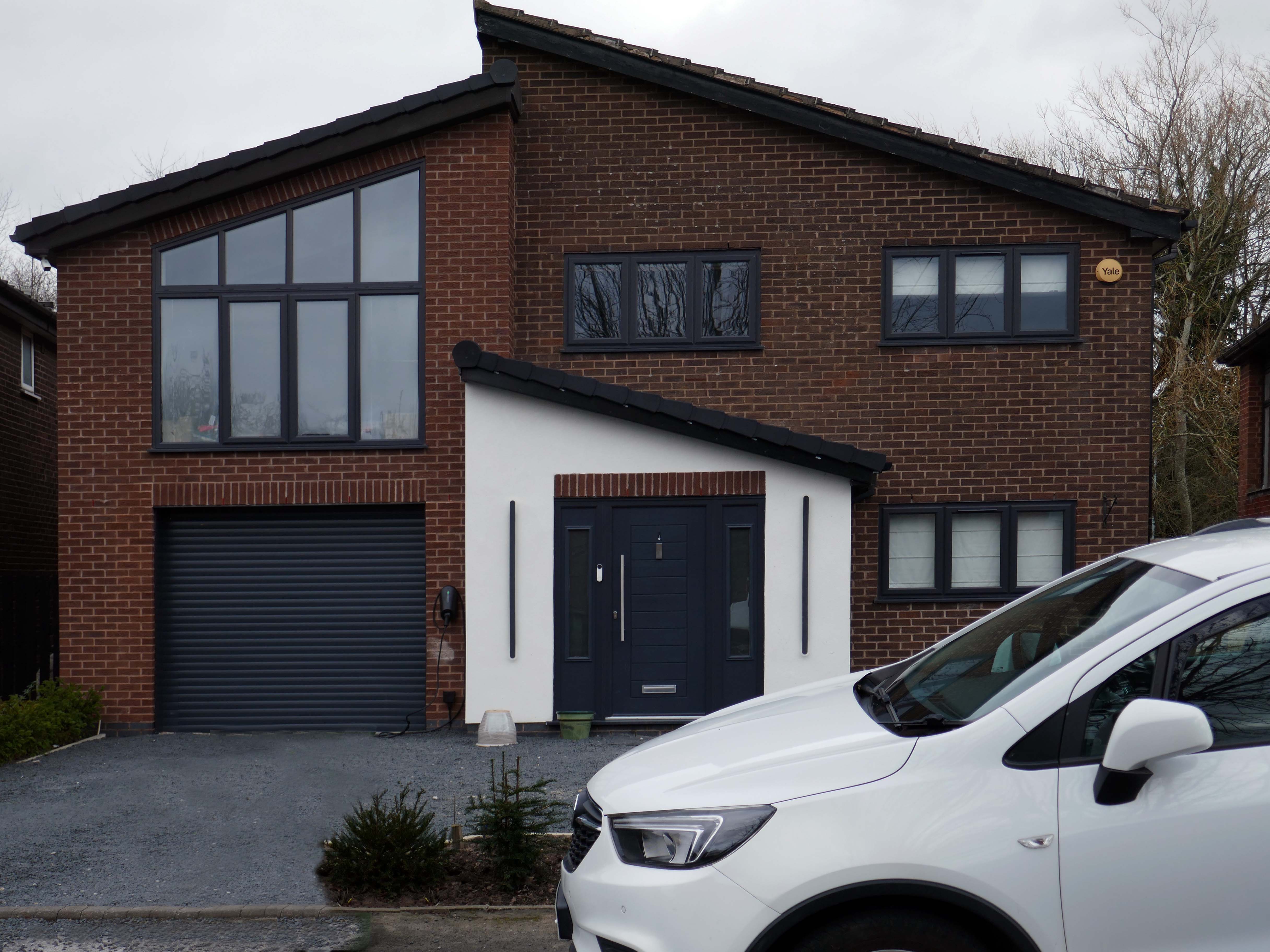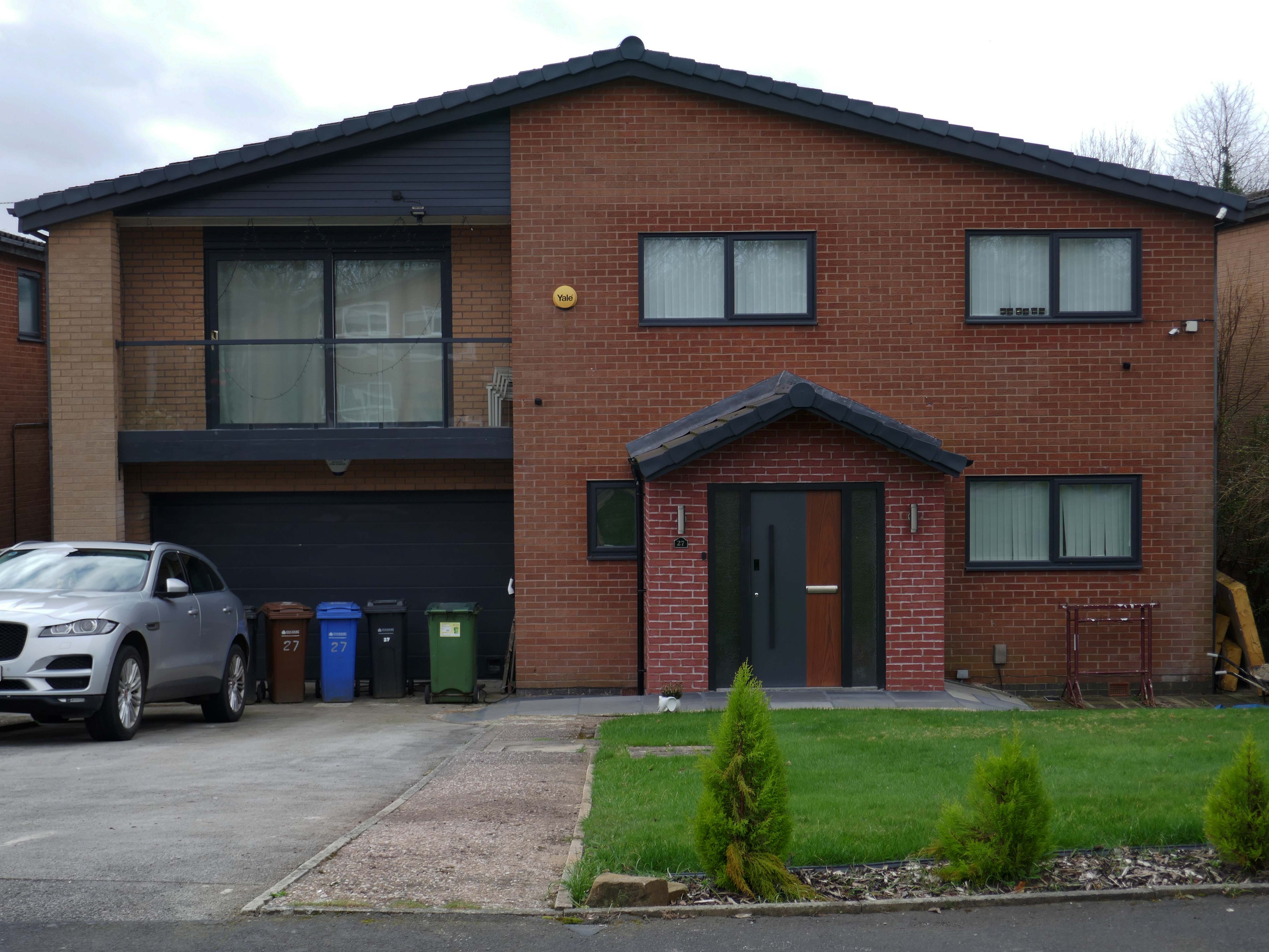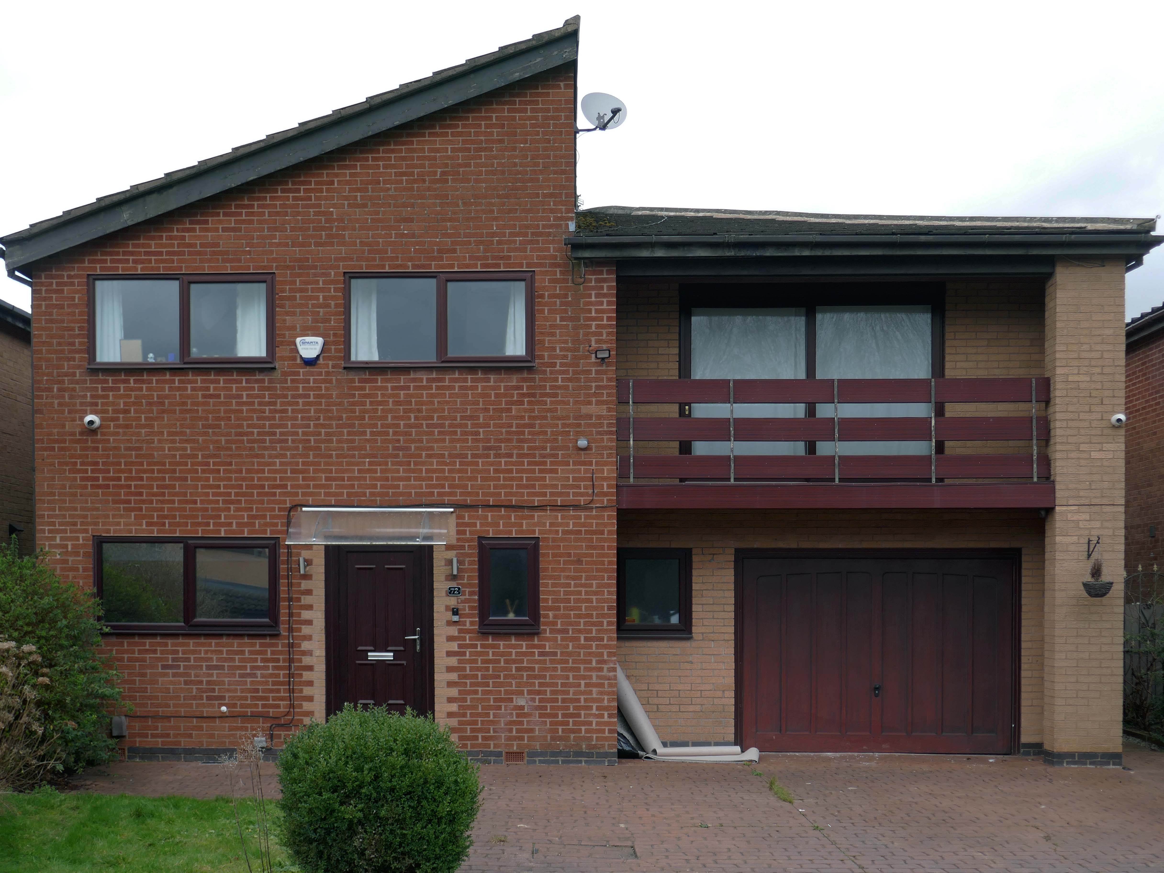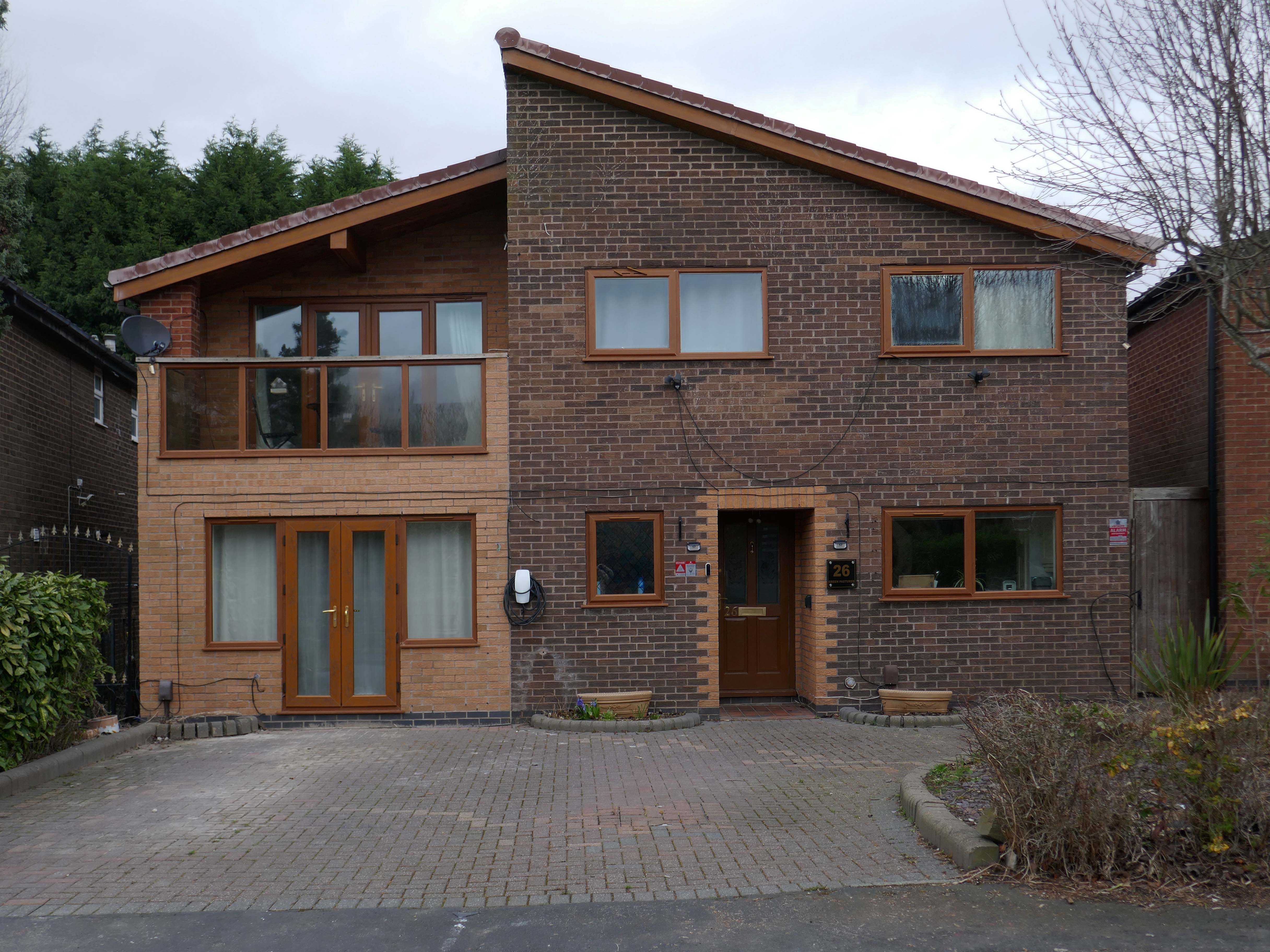 Asymmetric roof, bedroom balcony with optional infill, ever more pointless integrated garage, as the inflated automobile refuses to fit in.