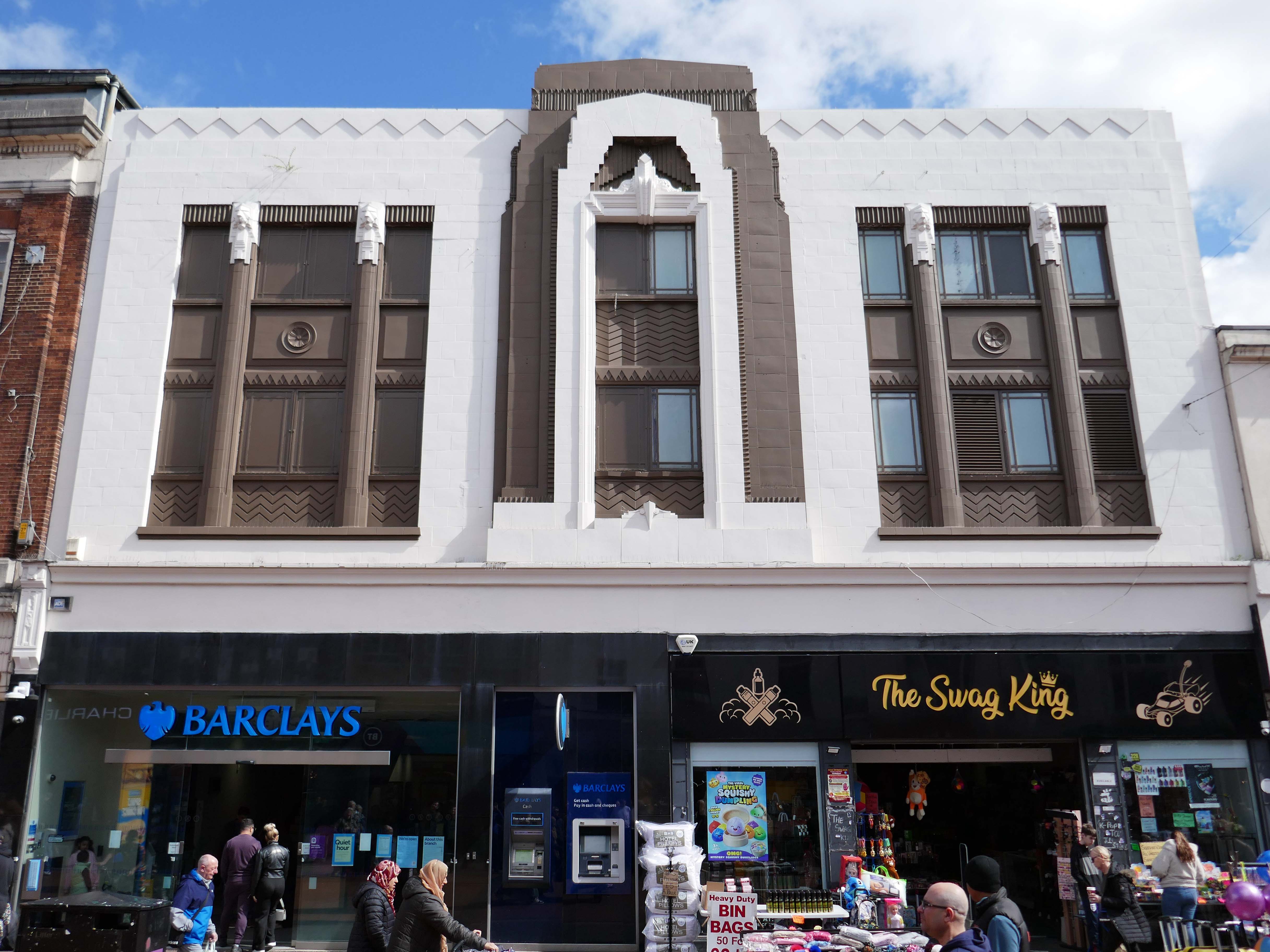 There are several examples of inter war, faience fronted infill dotted around the town centre, typically classical in style with touches of restrained Art Deco – a very English affair.