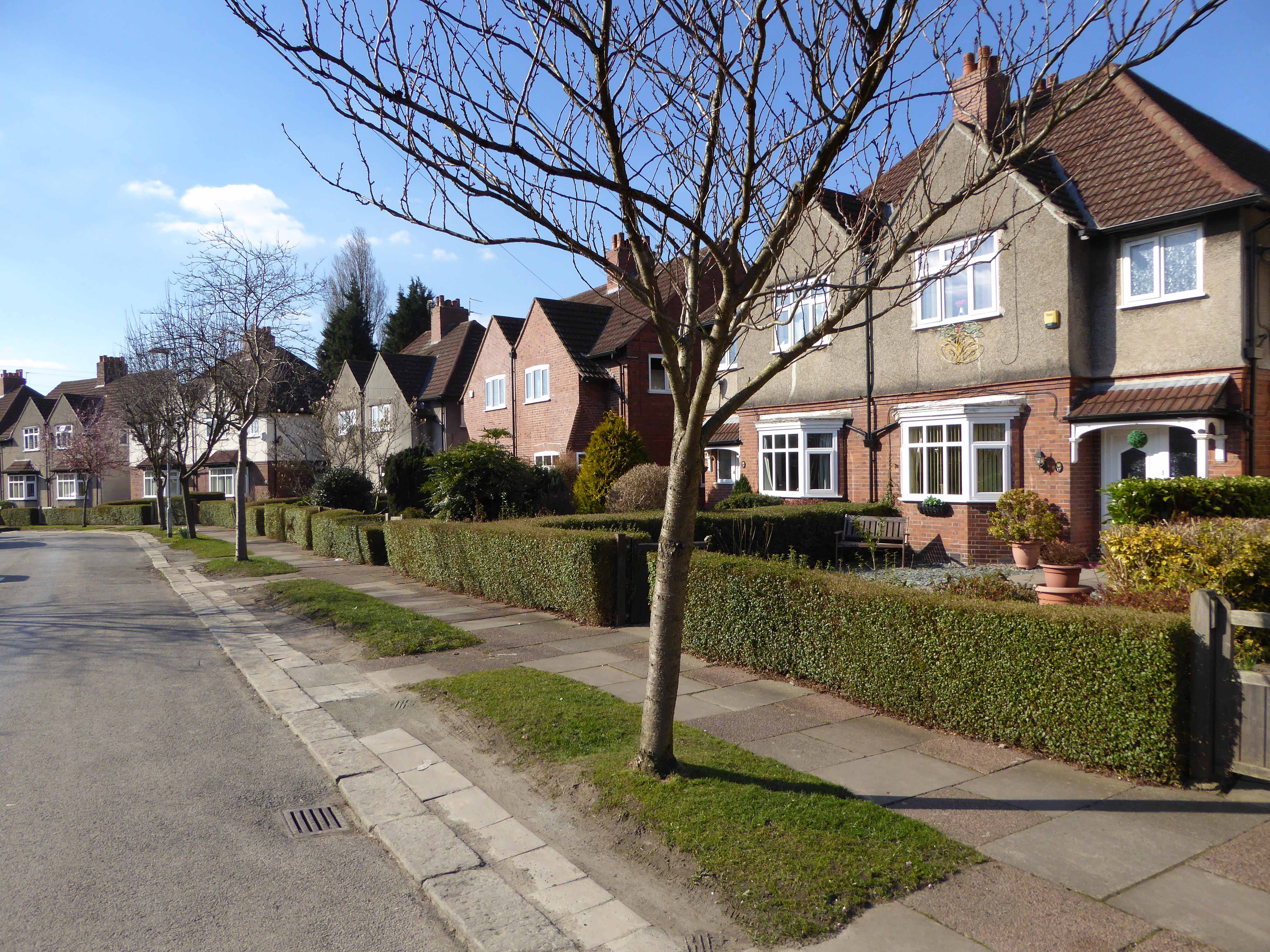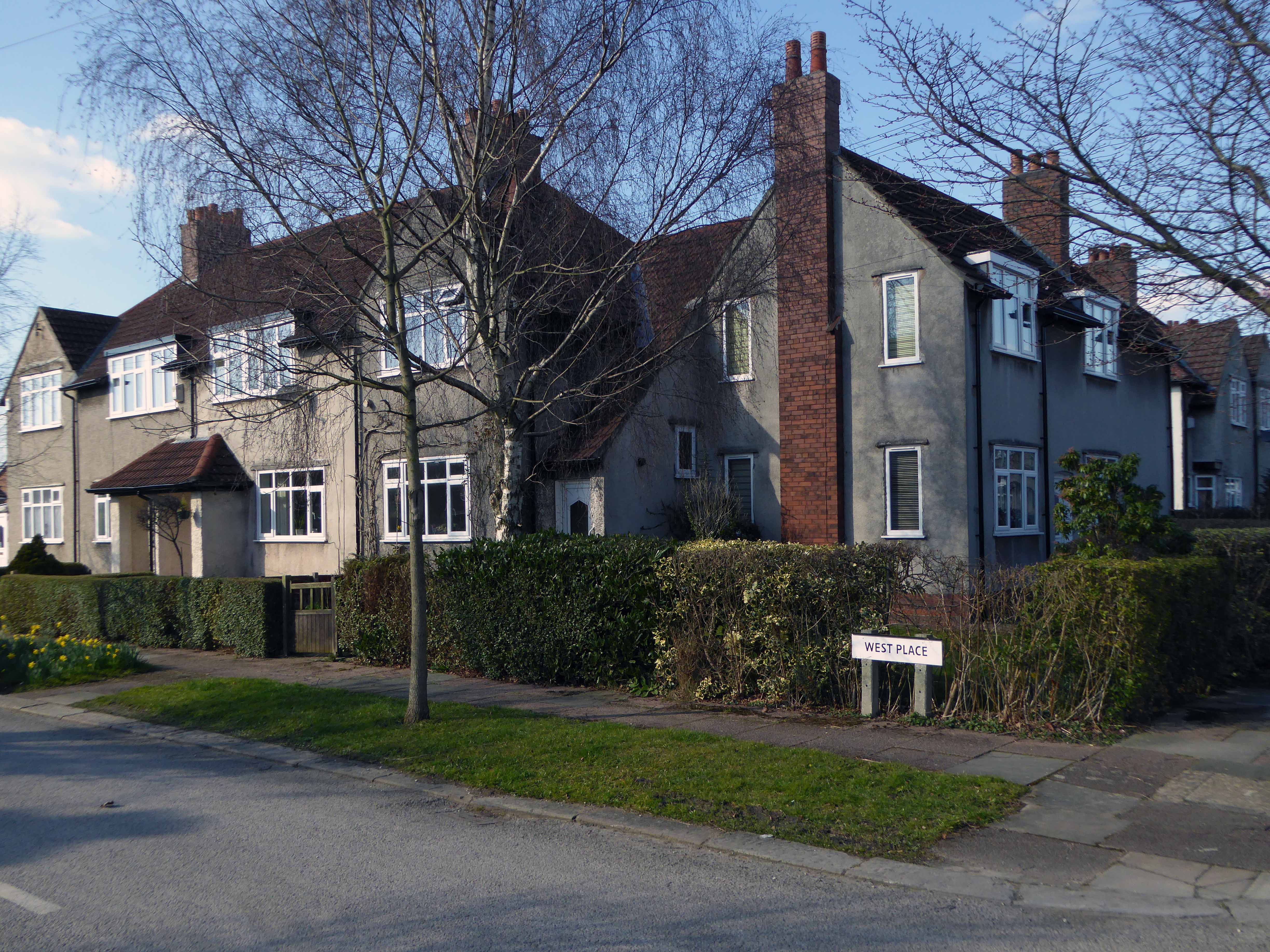 The housing estate of 136 houses known as Burnage Garden Village, a residential development covering an area of 19,113sqm off the western side of Burnage Lane in the Burnage ward. The site is situated approximately six kilometres south of the city centre and is arranged on a broadly hexagonal layout with two storey semi-detached and quasi detached dwelling houses situated on either side of a continuous-loop highway. The highway is named after each corresponding compass point with two spurs off at the east and west named Main Avenue and West Place respectively. Main Avenue represents the only access and egress point into the estate whilst West Place leads into a resident’s parking area.