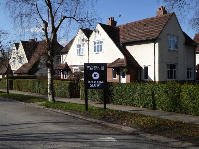 The housing estate of 136 houses known as Burnage Garden Village, a residential development covering an area of 19,113sqm off the western side of Burnage Lane in the Burnage ward. The site is situated approximately six kilometres south of the city centre and is arranged on a broadly hexagonal layout with two storey semi-detached and quasi detached dwelling houses situated on either side of a continuous-loop highway. The highway is named after each corresponding compass point with two spurs off at the east and west named Main Avenue and West Place respectively. Main Avenue represents the only access and egress point into the estate whilst West Place leads into a resident’s parking area.