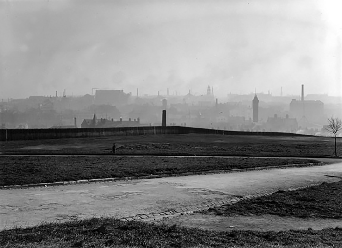 In 1935 the area seems to be little more than windswept cinders and thin forlorn grass, traversed by broad uneven paths – overlooking the dark industrial mire below.