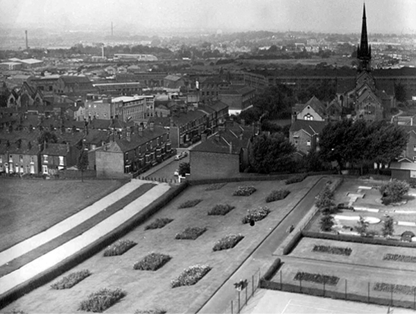 Into the 1960s and although now there is the provision of a children’s play area, the park is still in need of a little more care and attention, the immediate surroundings a dense dark warren of industrial activity and terraced housing.