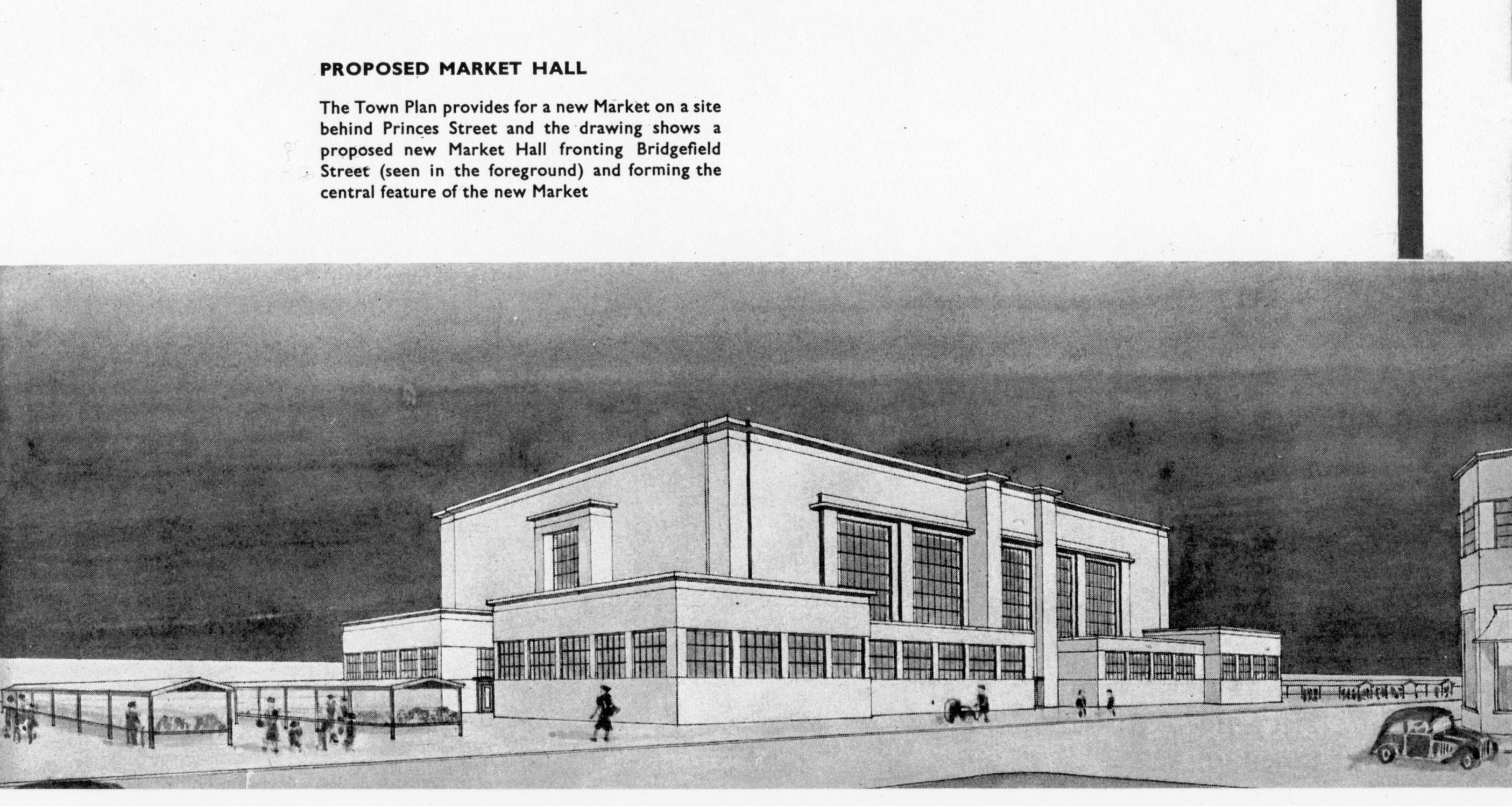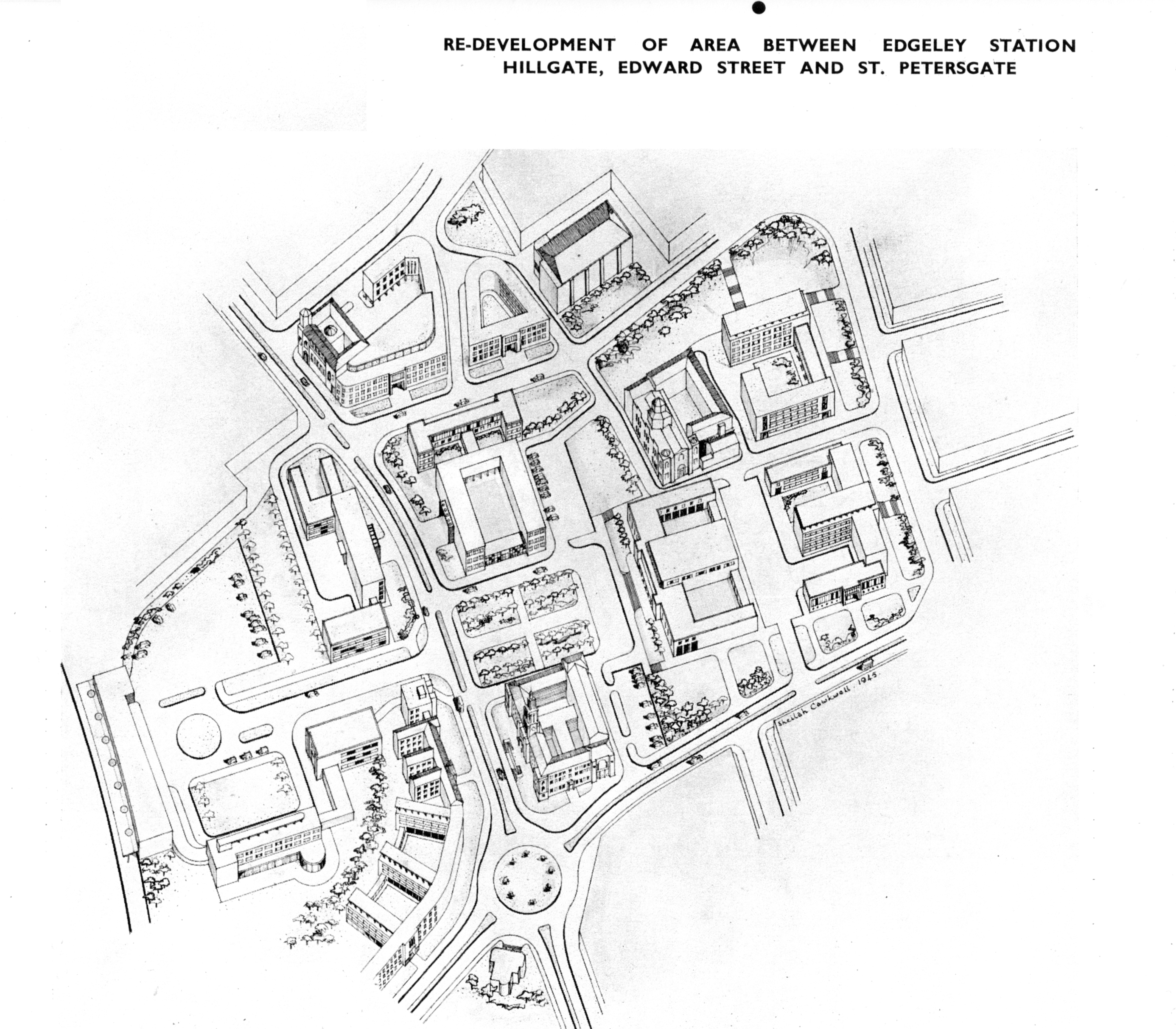 Stockport along with every other town in the country was asked by central government to draw up a plan for reconstruction, to be implemented at the end of WW2. The result was invariably a wholesale rebuilding of bomb damaged and aged industrial, civic and domestic architecture.
