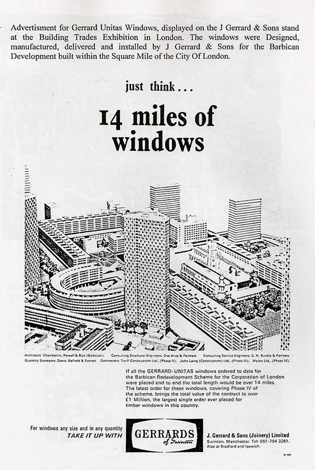 I also recently discovered a Barbican Manchester mash up – Gerrards of Swinton fulfilled their largest ever single order for the site – my thanks to David Roughley for the information and illustration.