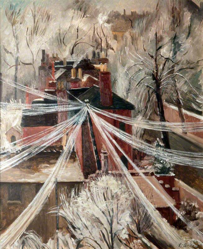 Annan’s paintings are in many national collections, she is also known for her tile murals, many of which have been destroyed in recent decades. Only three of her major public murals are believed to survive, the largest single example, the Expanding Universe at the Bank of England, was destroyed in 1997.