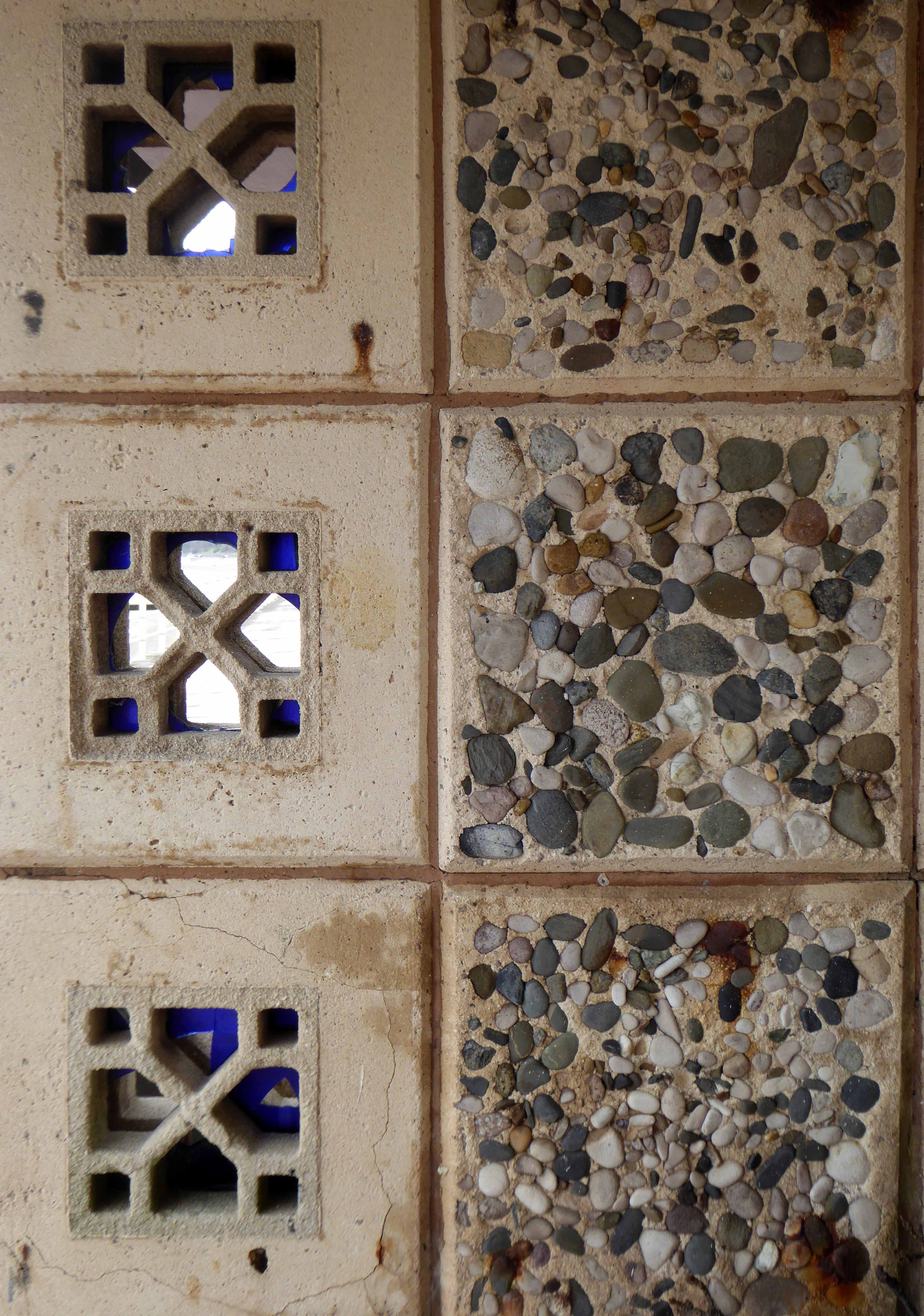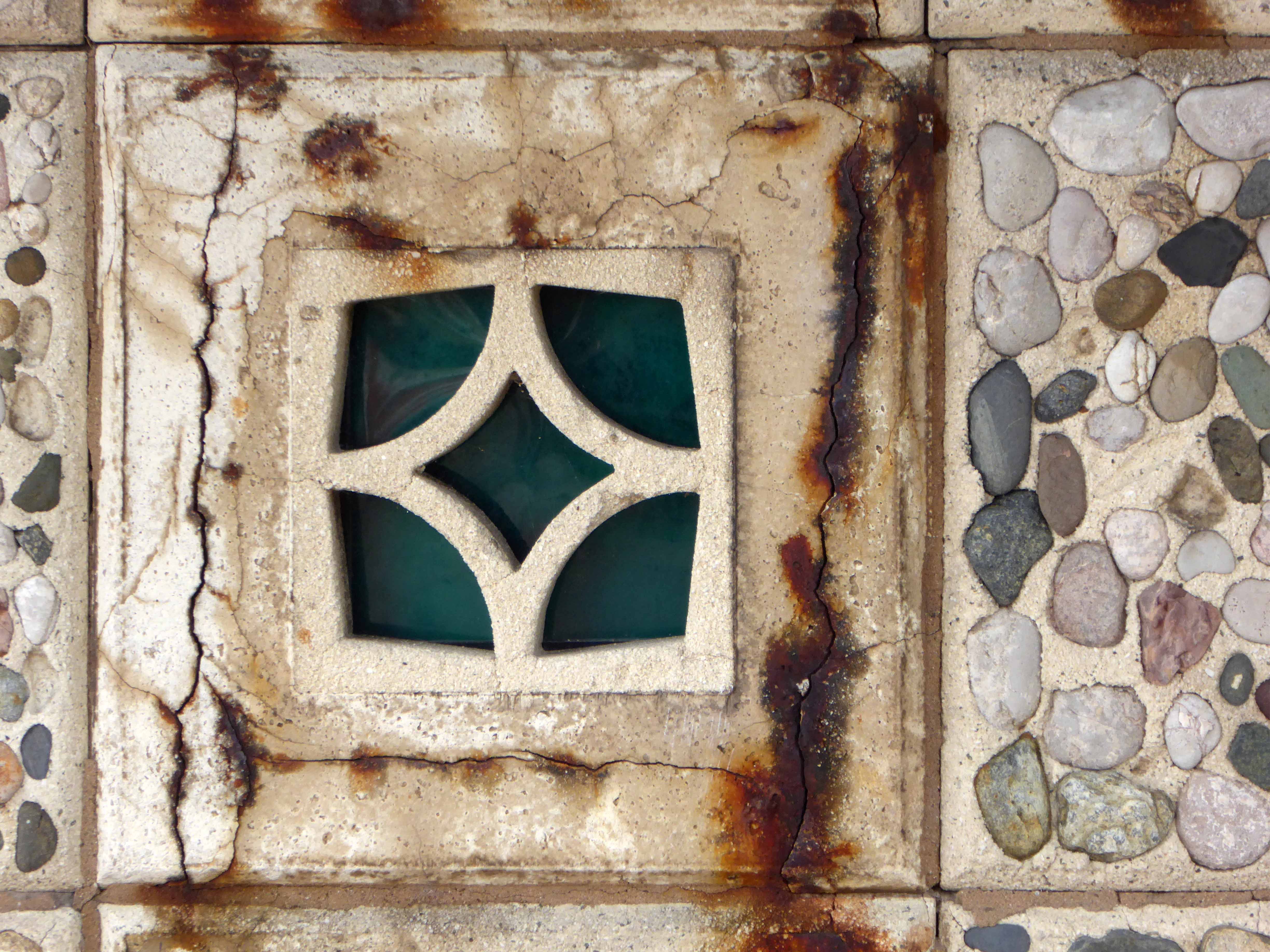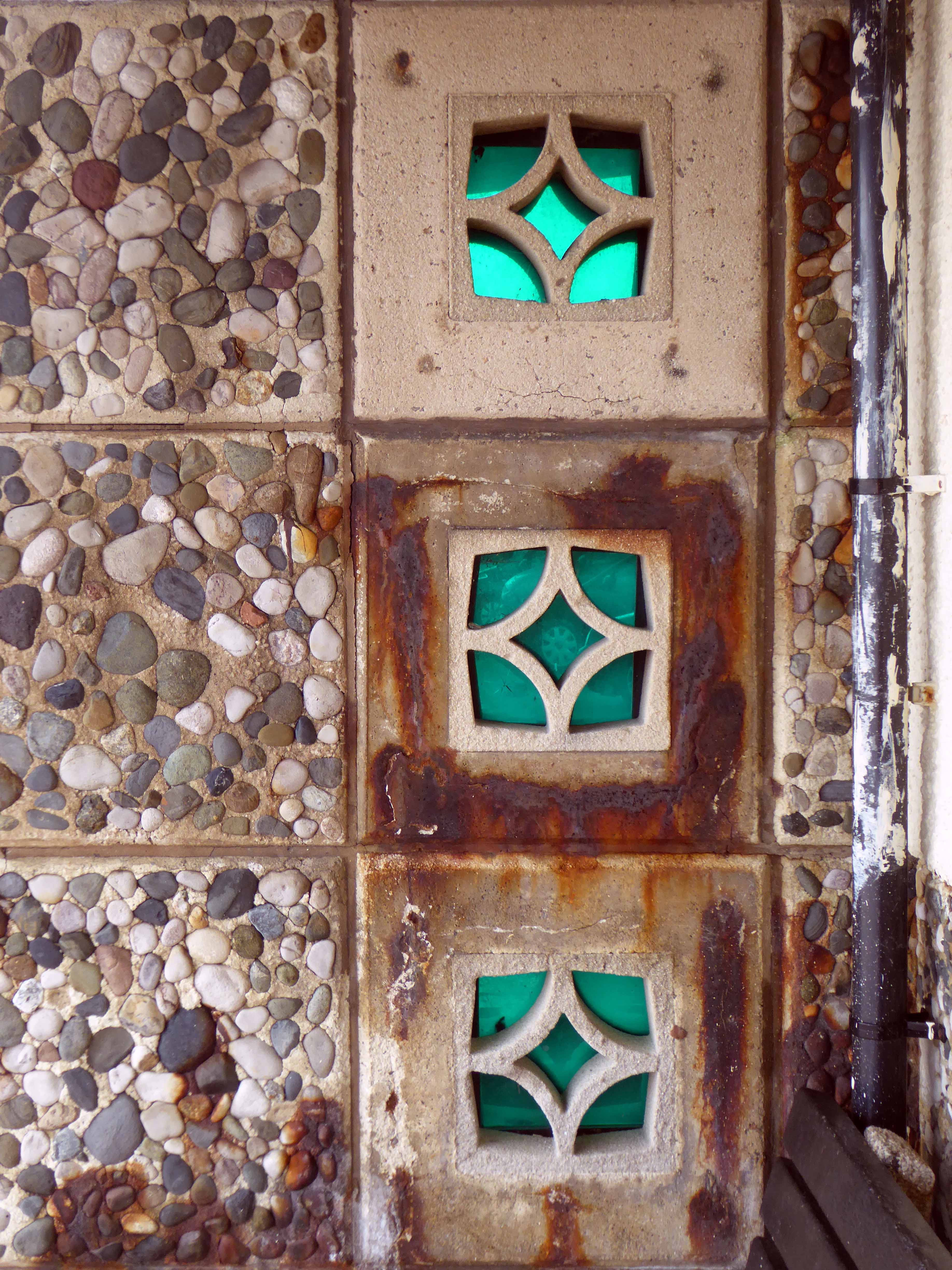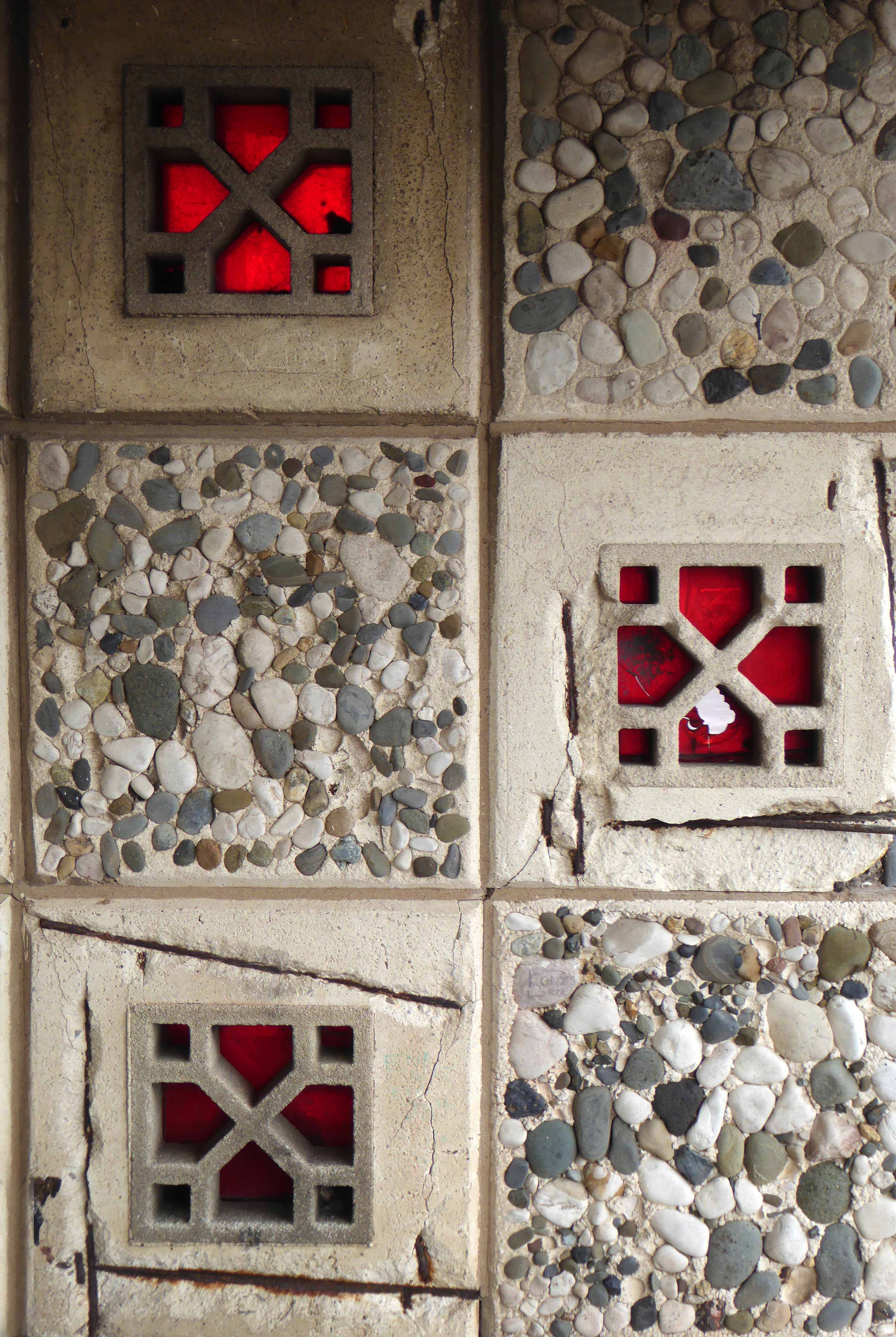 A concrete cornucopia of Californian screen block, glass, pebbledash, mosaic and crazy paving.