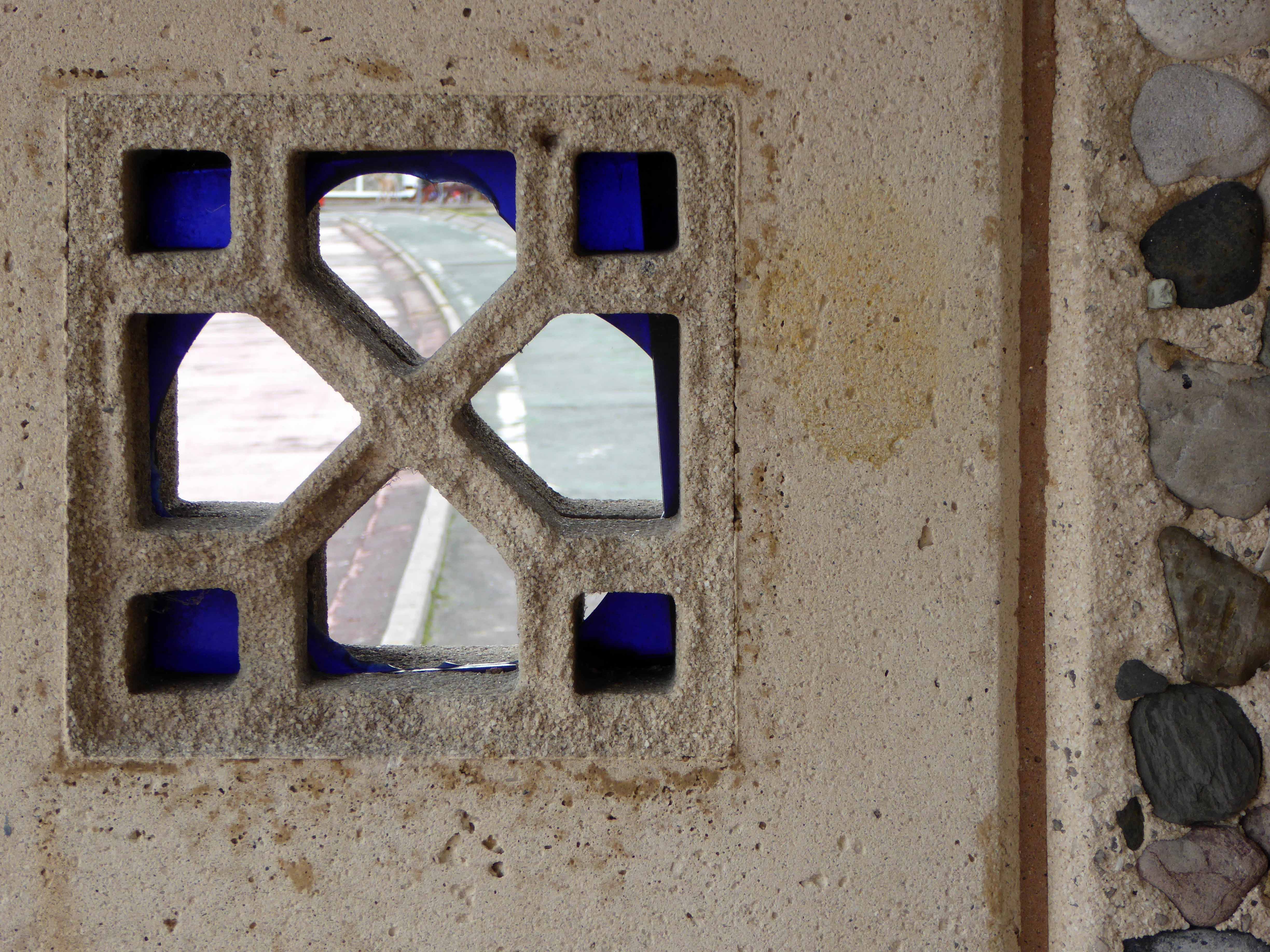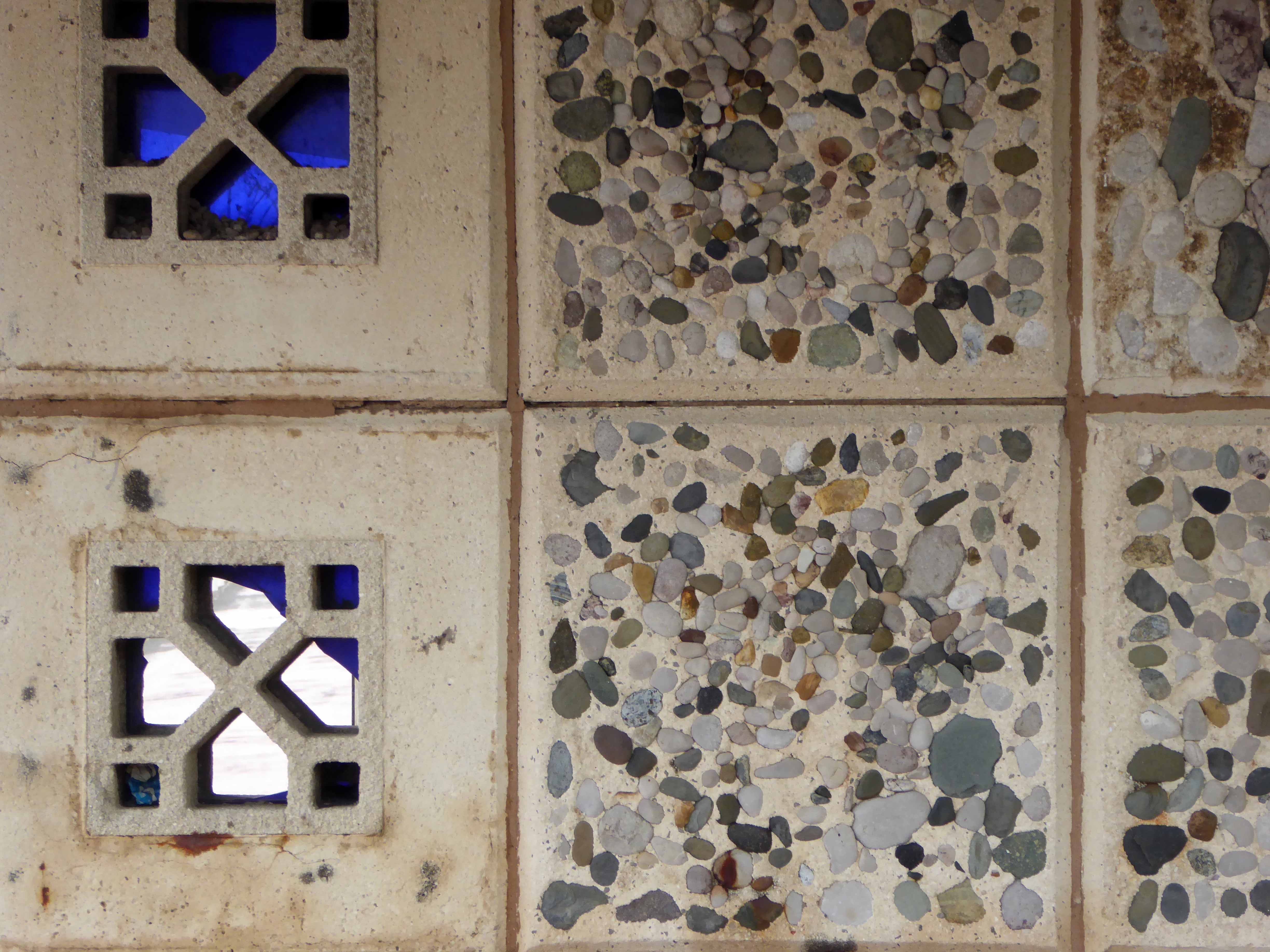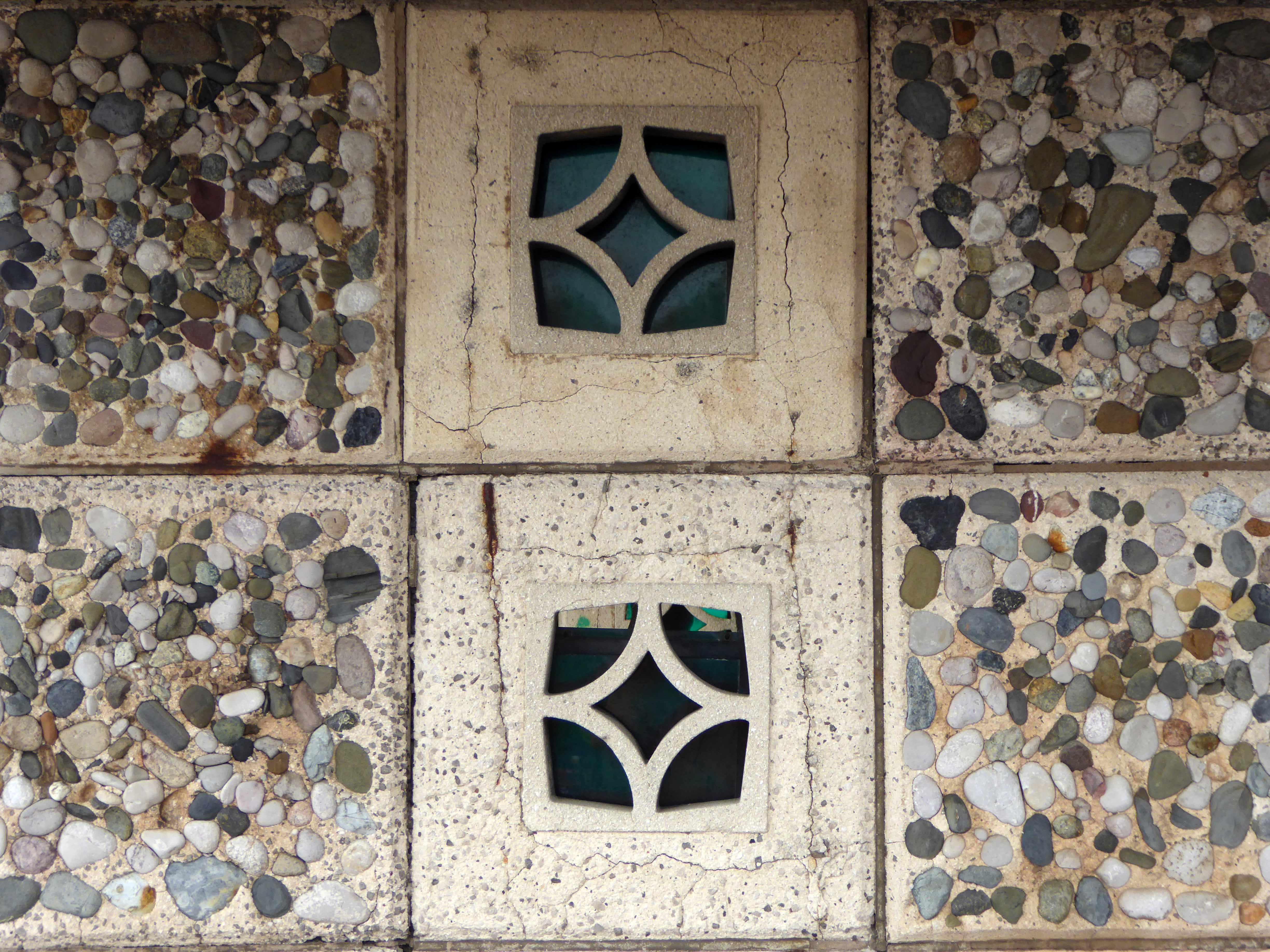 A concrete cornucopia of Californian screen block, glass, pebbledash, mosaic and crazy paving.