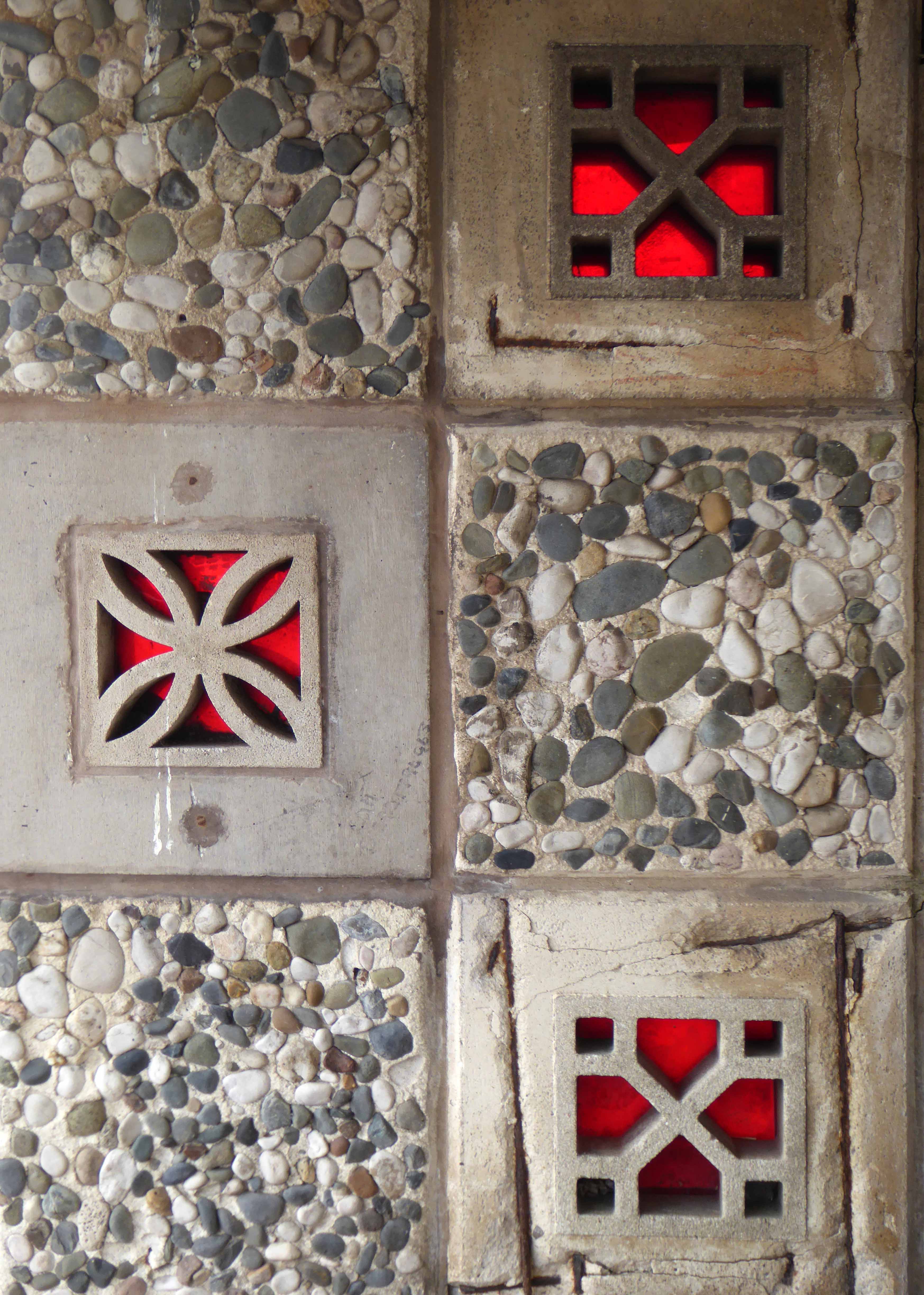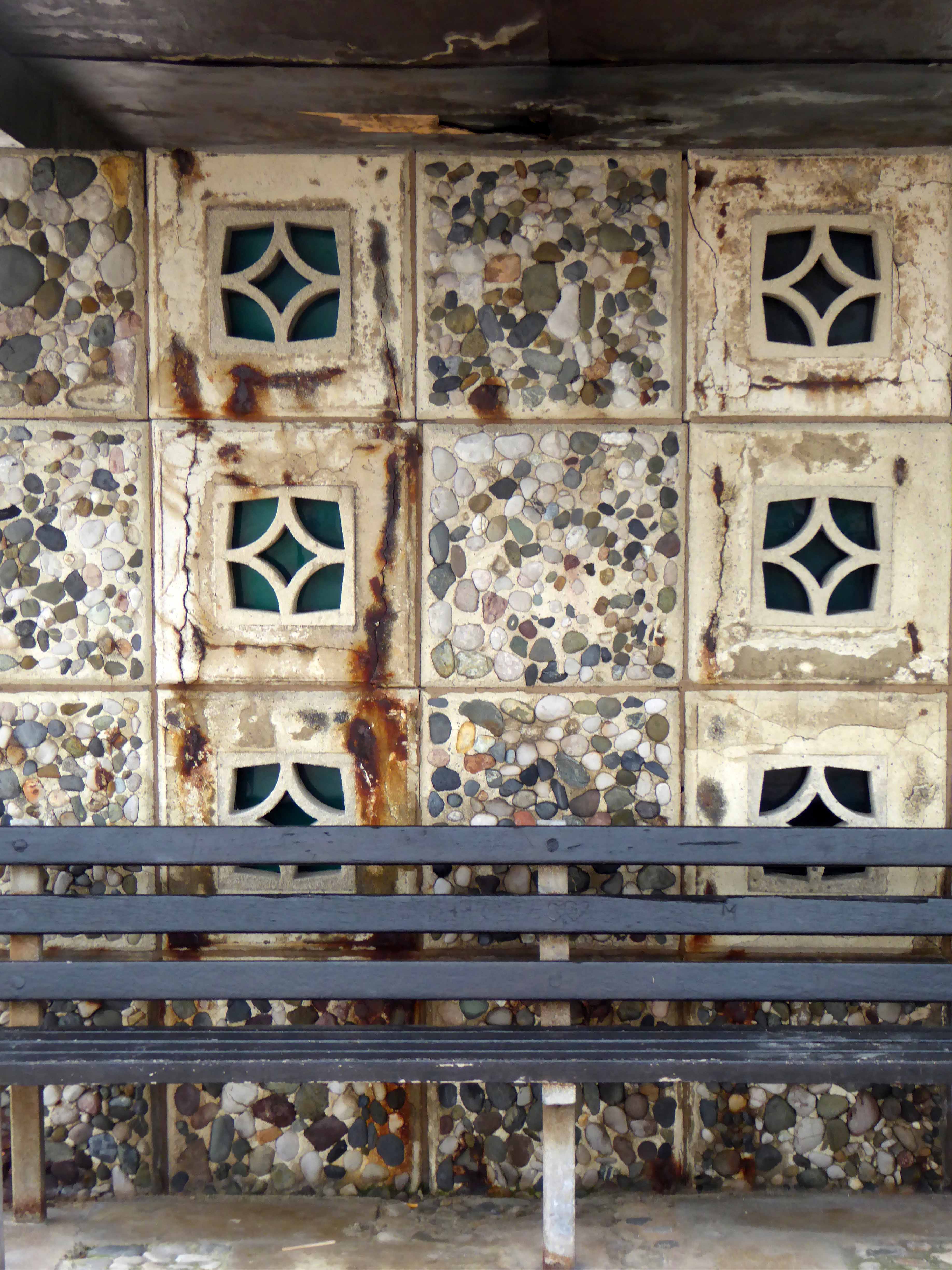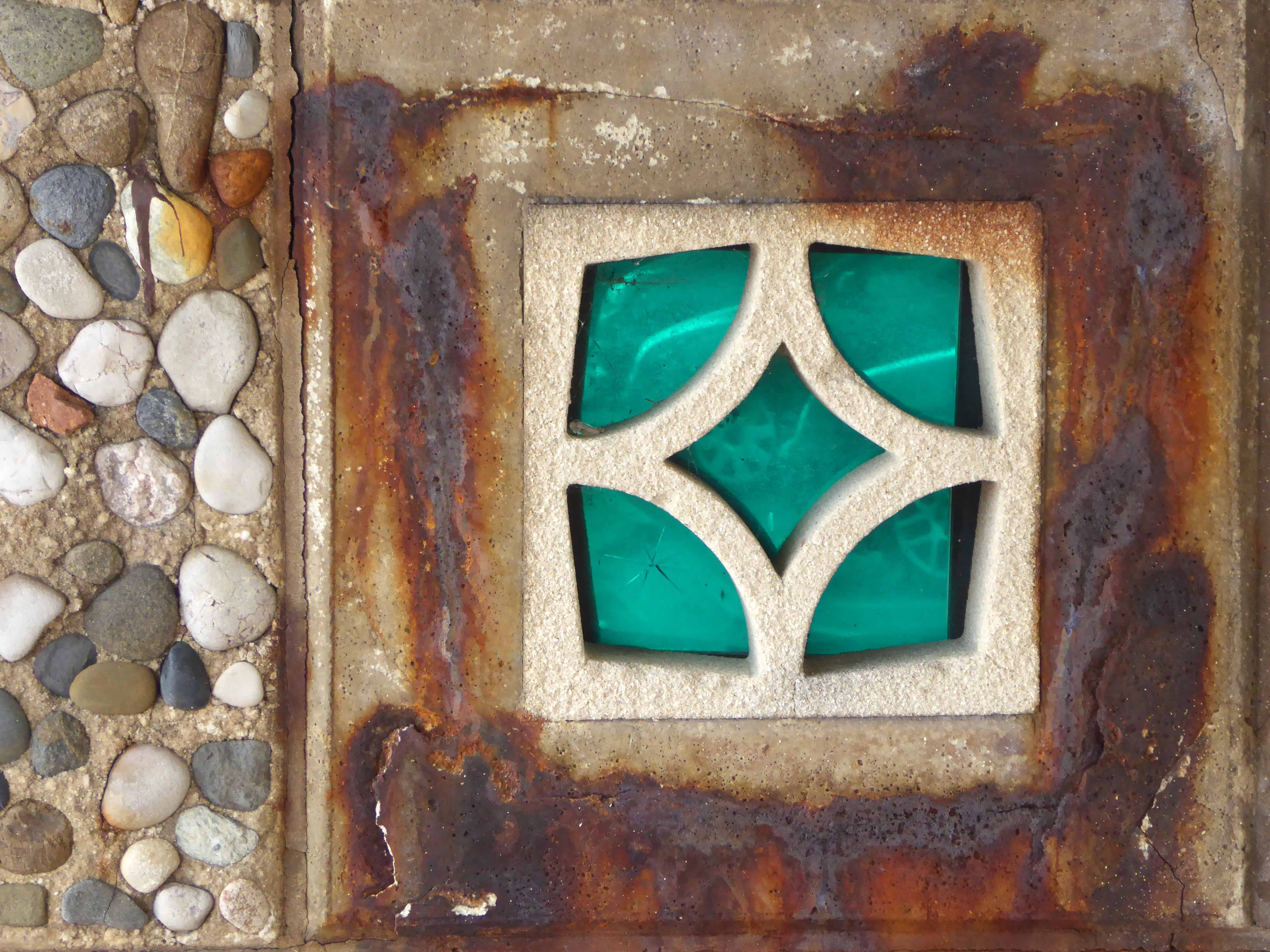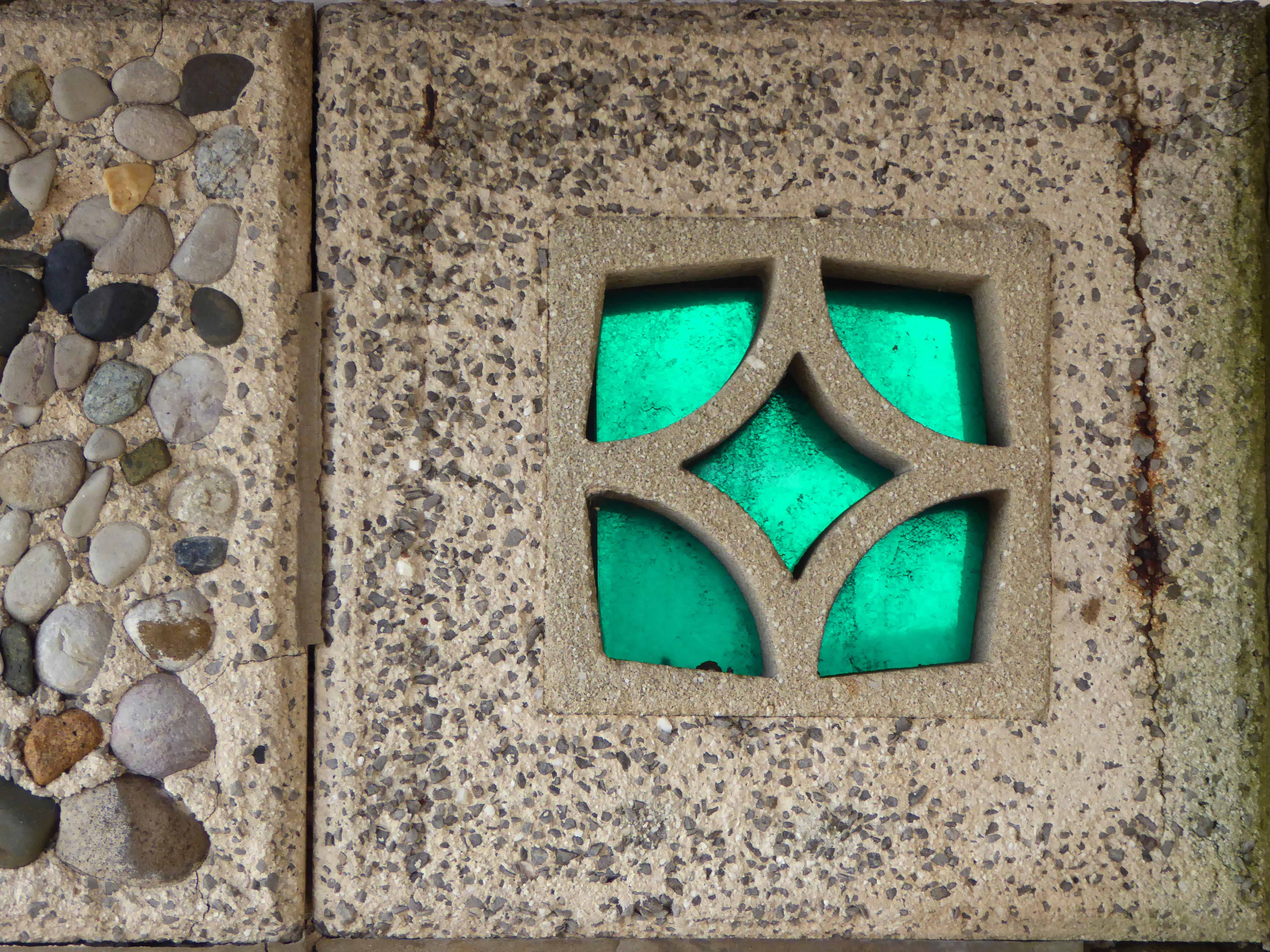 A concrete cornucopia of Californian screen block, glass, pebbledash, mosaic and crazy paving.