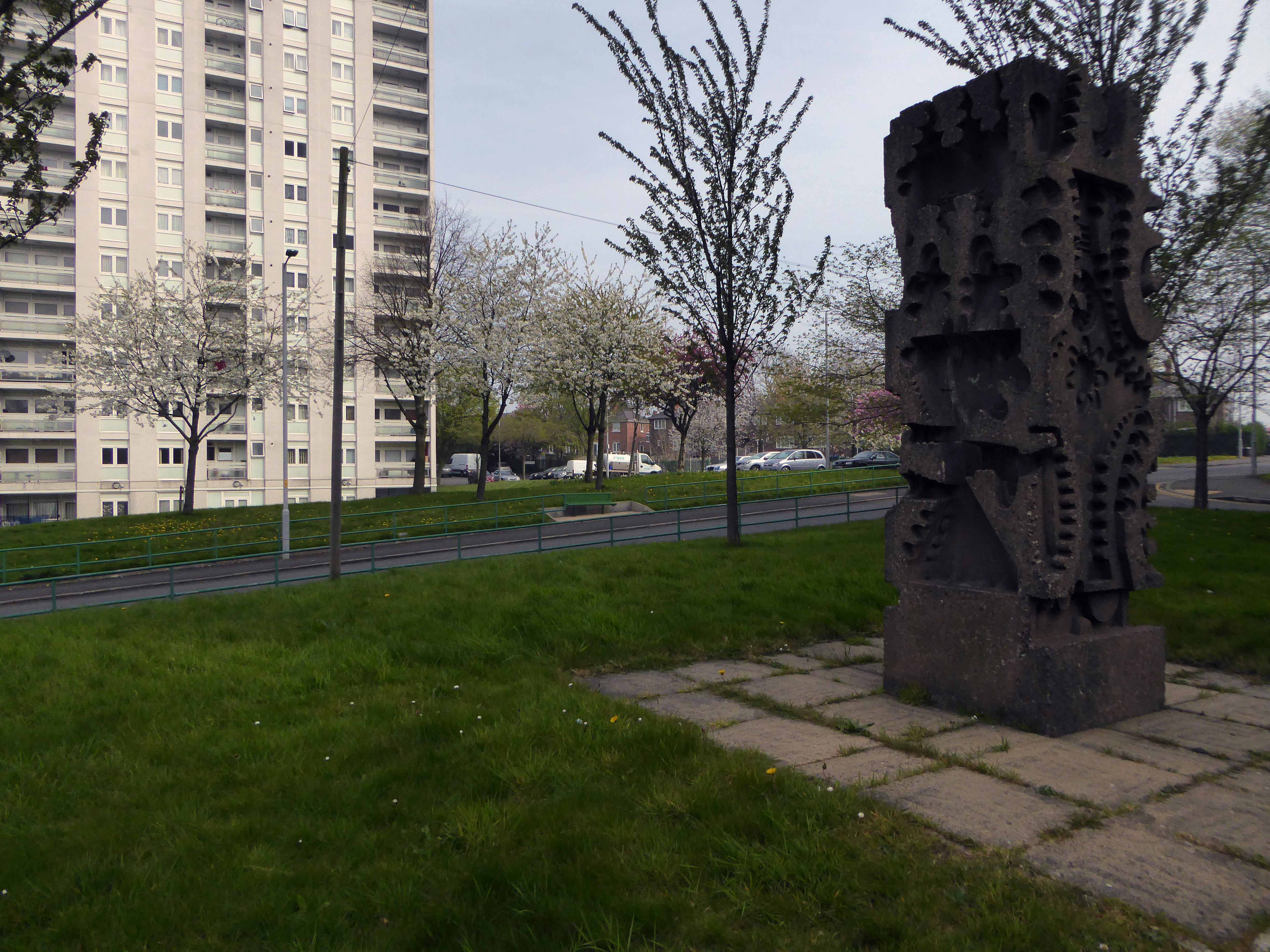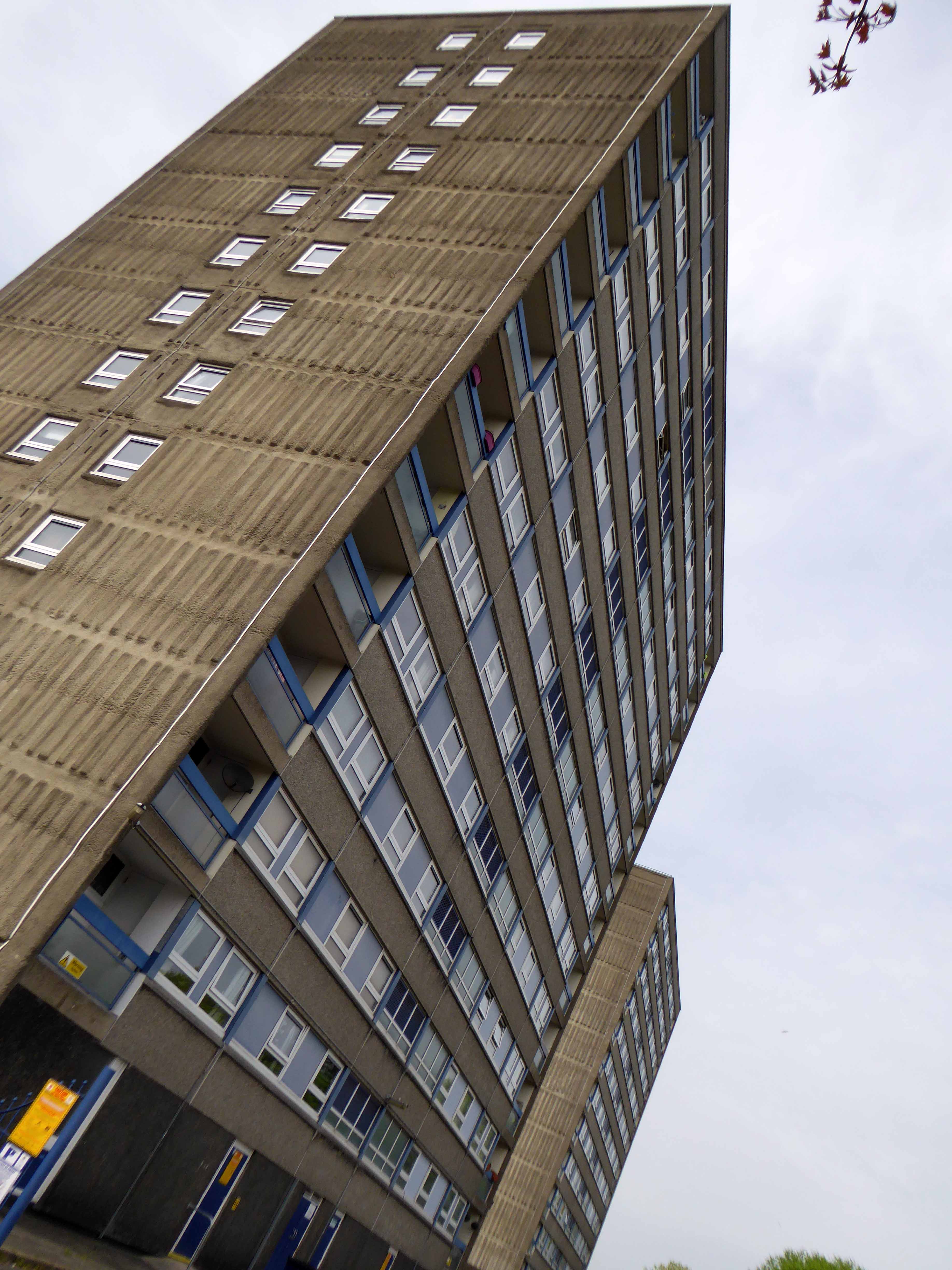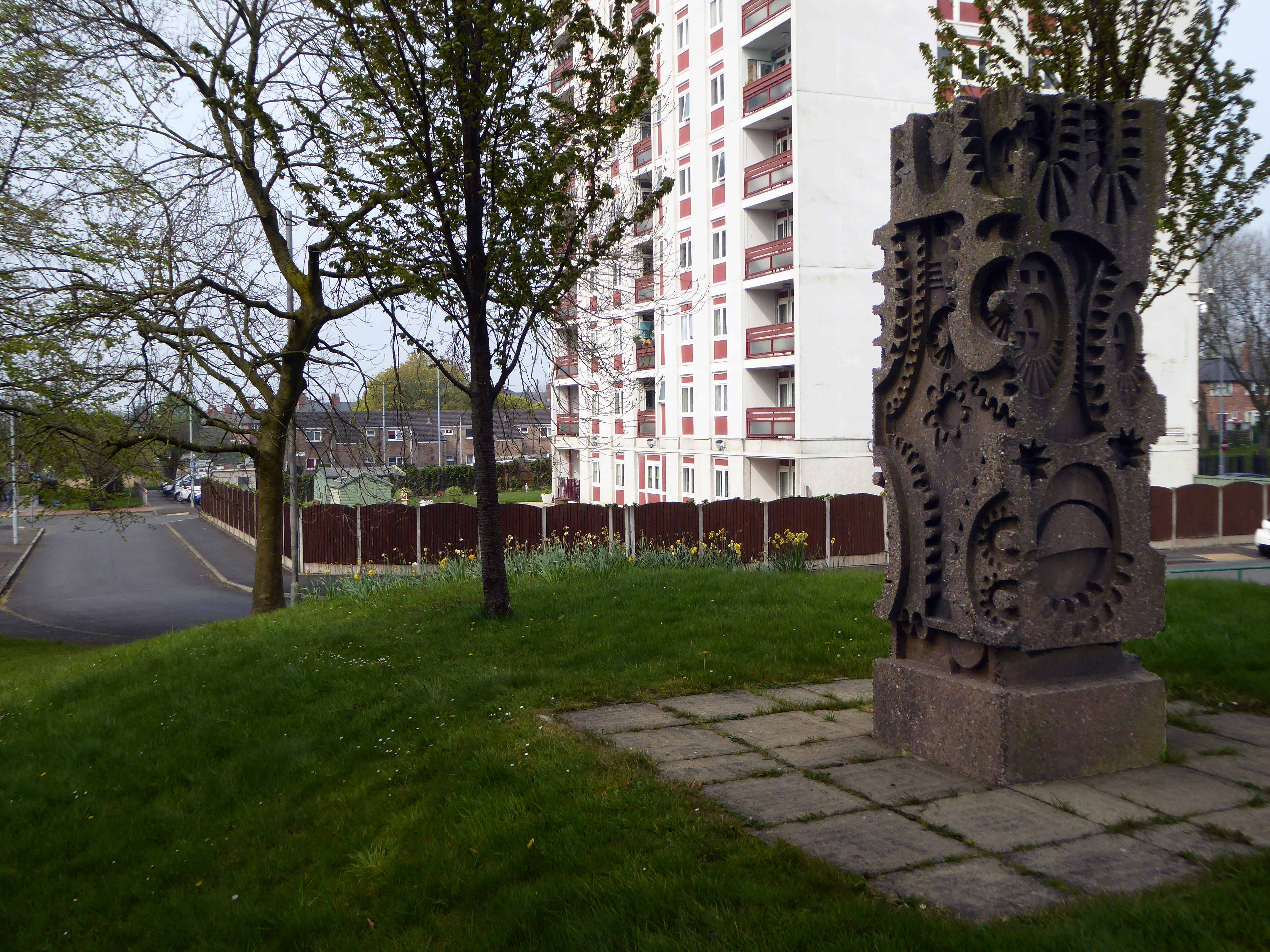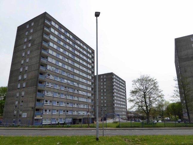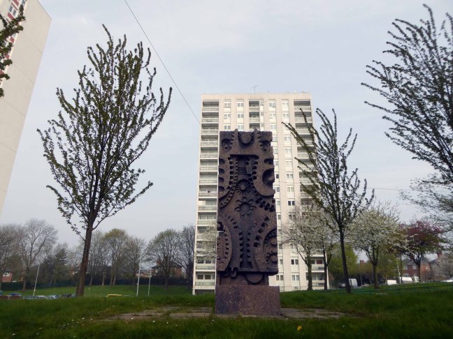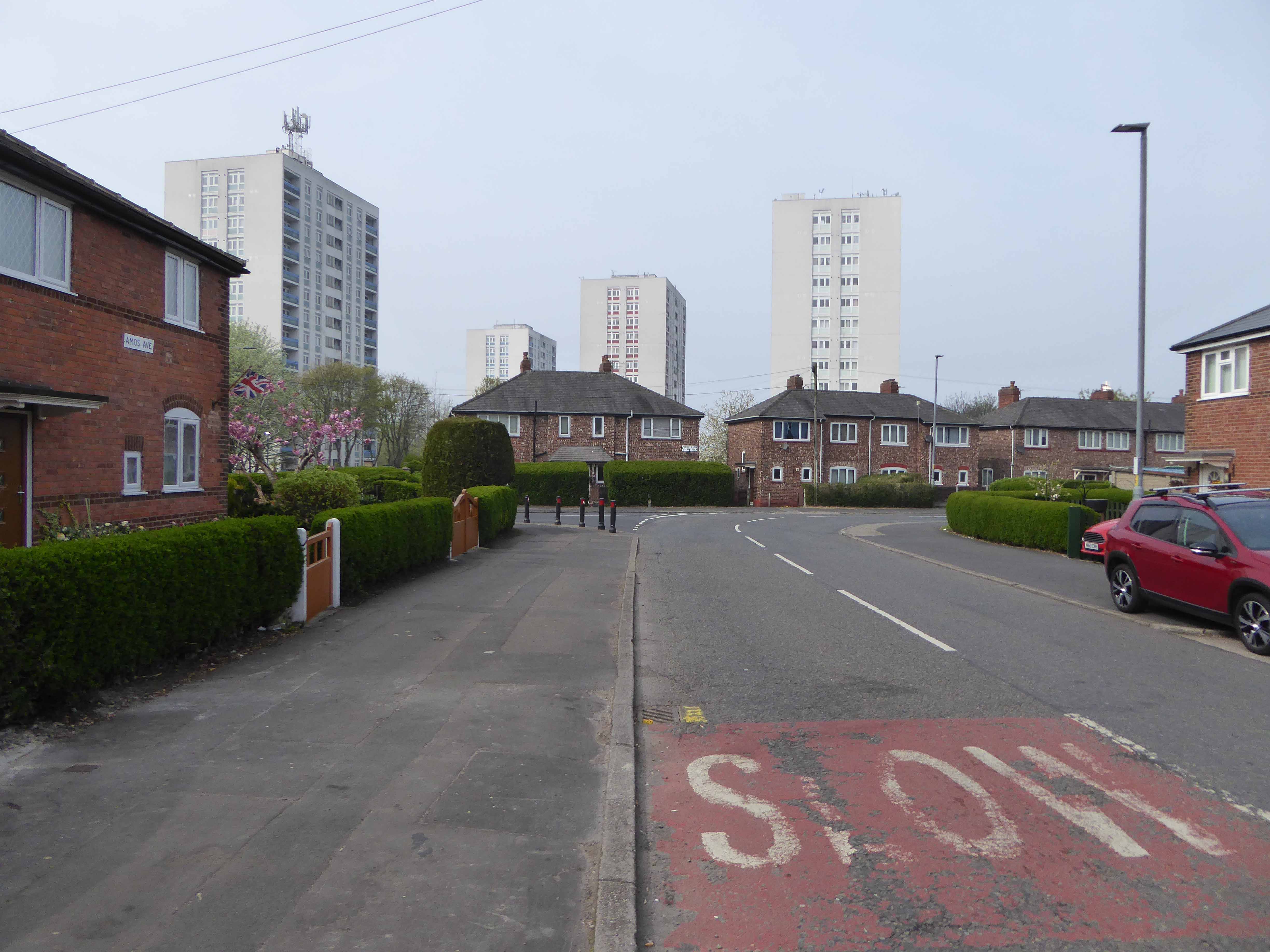 Following a lead from Neil Simpson I cycled along Clayton Vale and emerged on Amos Avenue where the flats came into view.