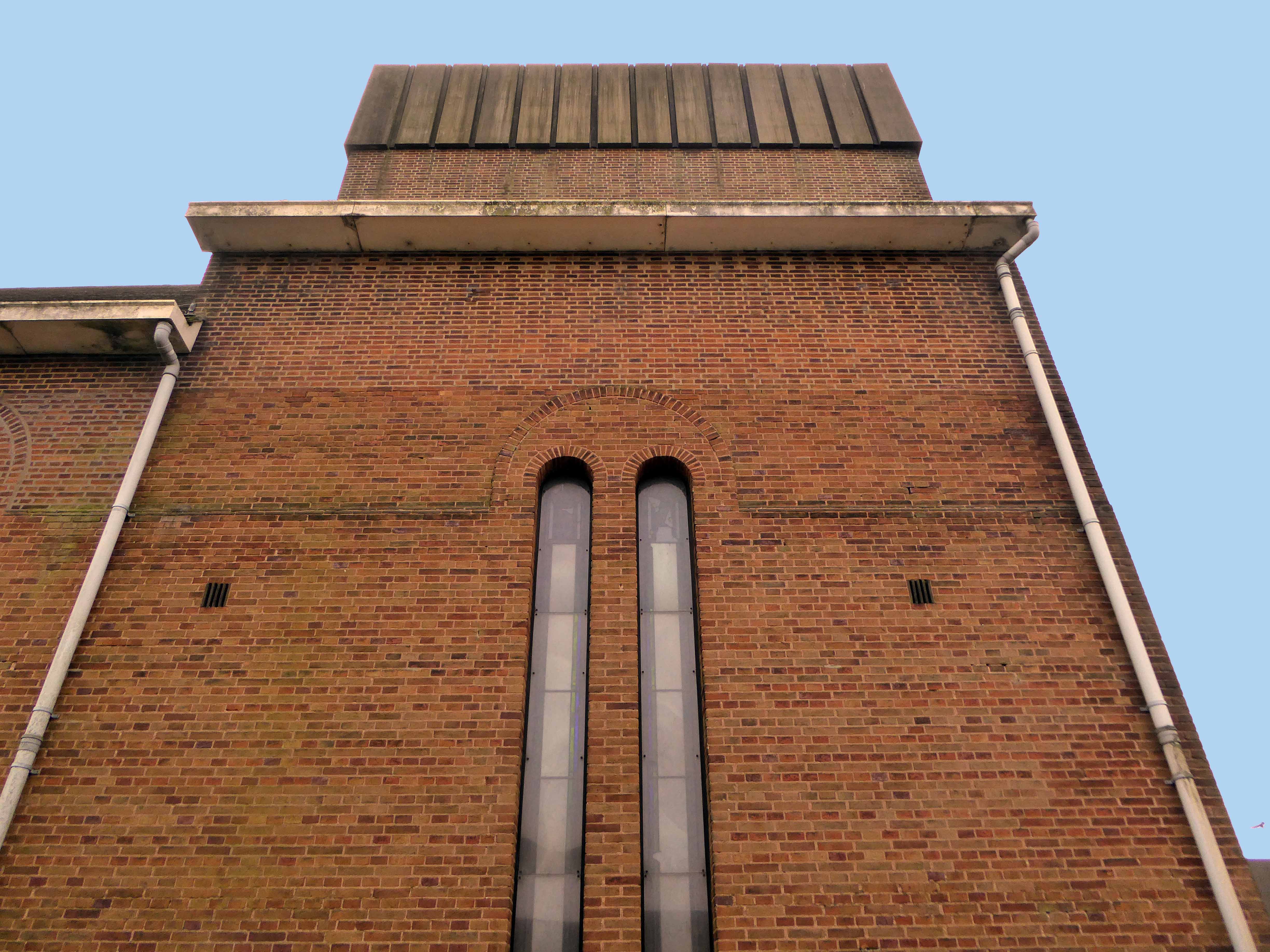 And so it now stands forlorn and unused – services are now held in the adjacent church hall. A series of interlocking monumental interwar functionalist brick clad slabs, once thought to resemble a brewery or cinema, now awaits its fate. Though it remains a thing of wonder in both scale and detailing, well worth a wander around if you’re passing.