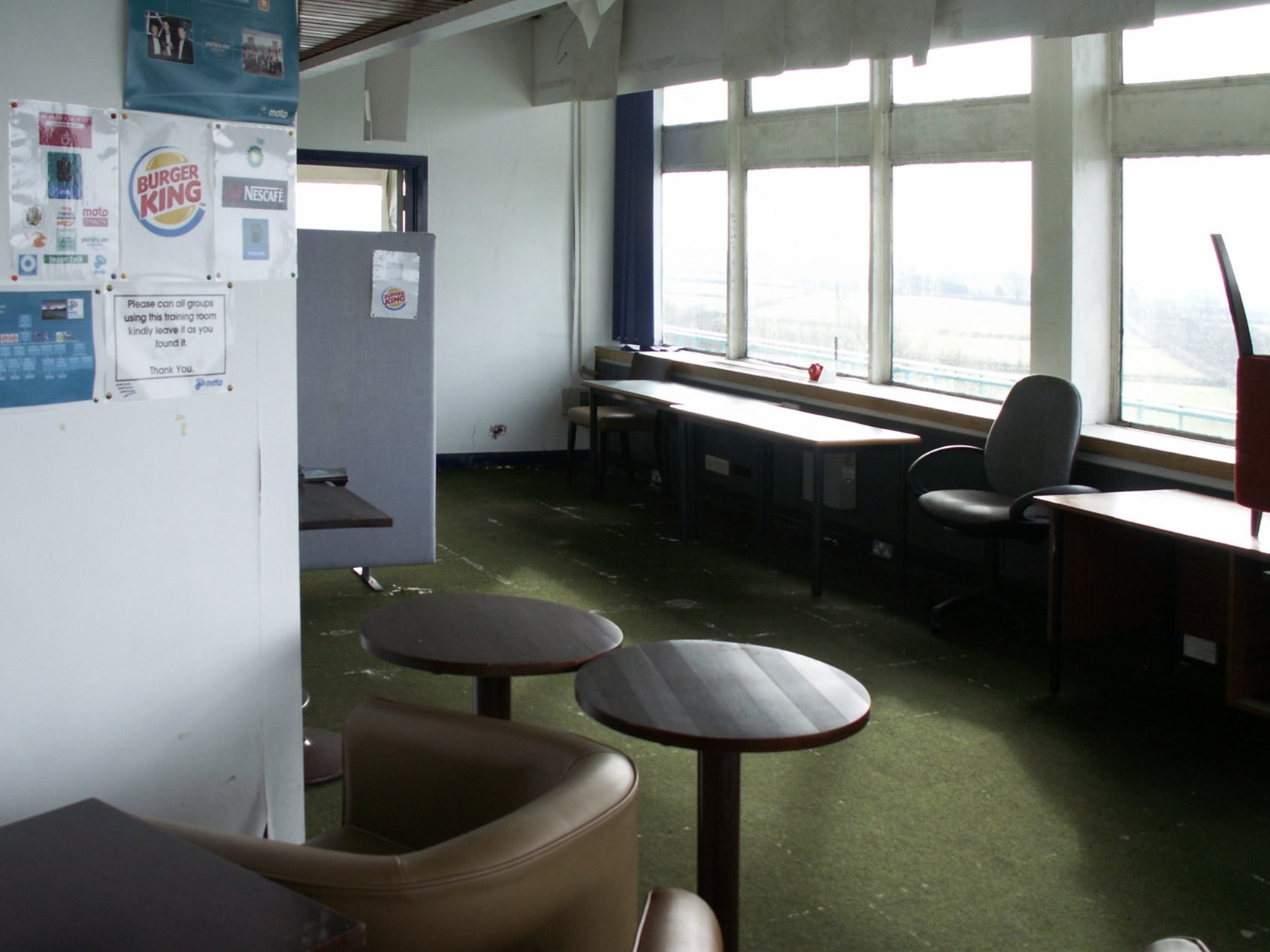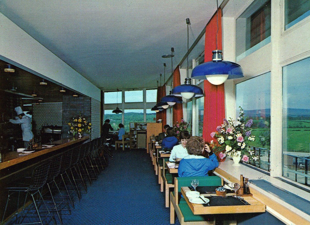 Although the tower is unique to these services, the concept of large high-level floors can be seen in many Rank services of the era, the idea of each one being to have a visible landmark and a good view of the surrounding area, such as at Hilton Park. The lower-level restaurant at Forton sticks out over the first floor, and partially in to the road, to give an optimum view. Toilets and offices were in the ground floor buildings below.