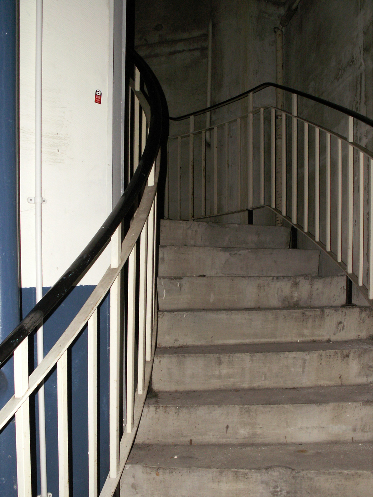The central shaft consists of two lifts, which were originally a pentagonal design until they were replaced in 2017. They’re still in use to access the first floor, but with the buttons to higher floors disabled. There are then three service lifts, and one spiral staircase – satisfying typical health and safety regulations.