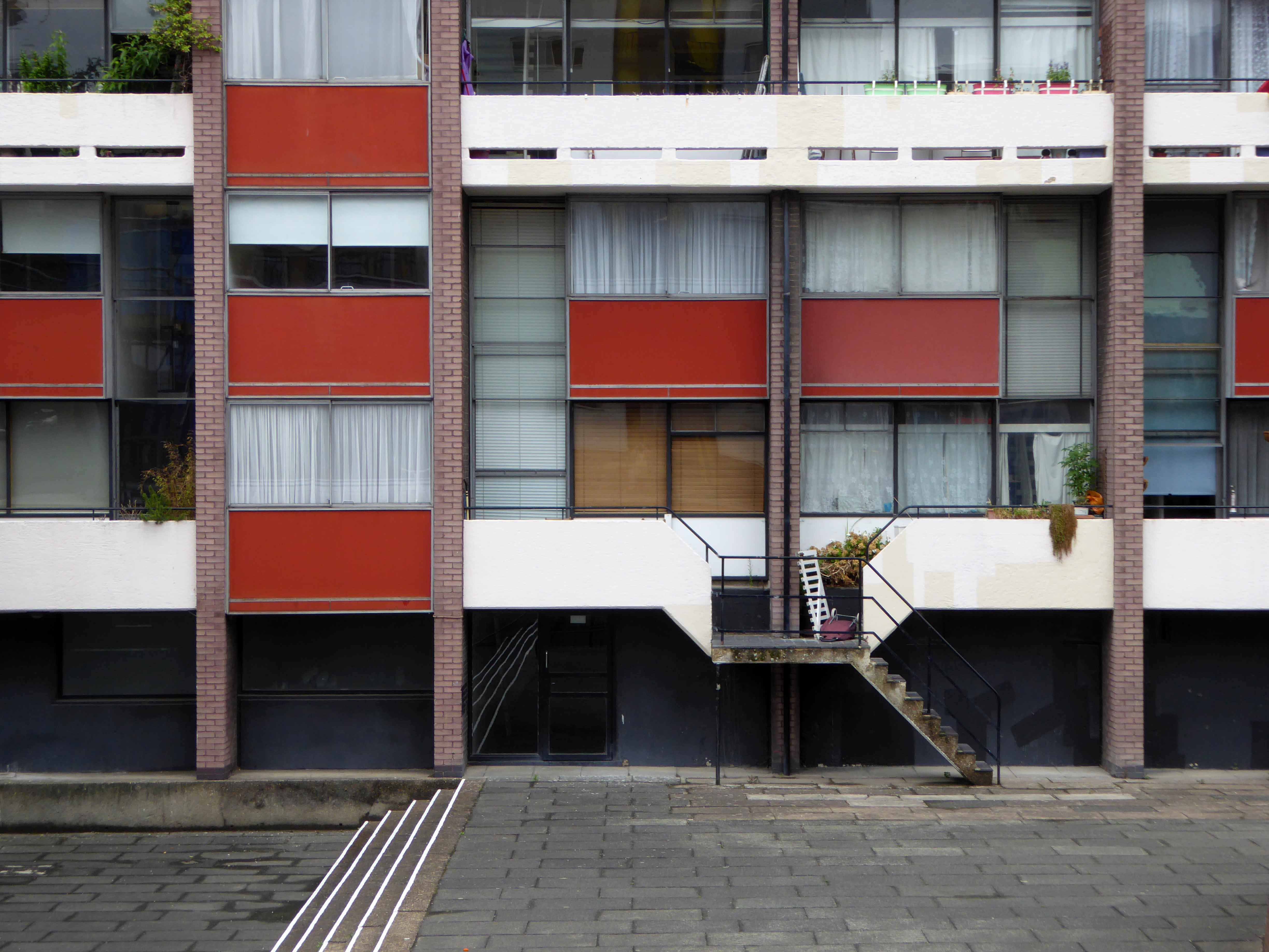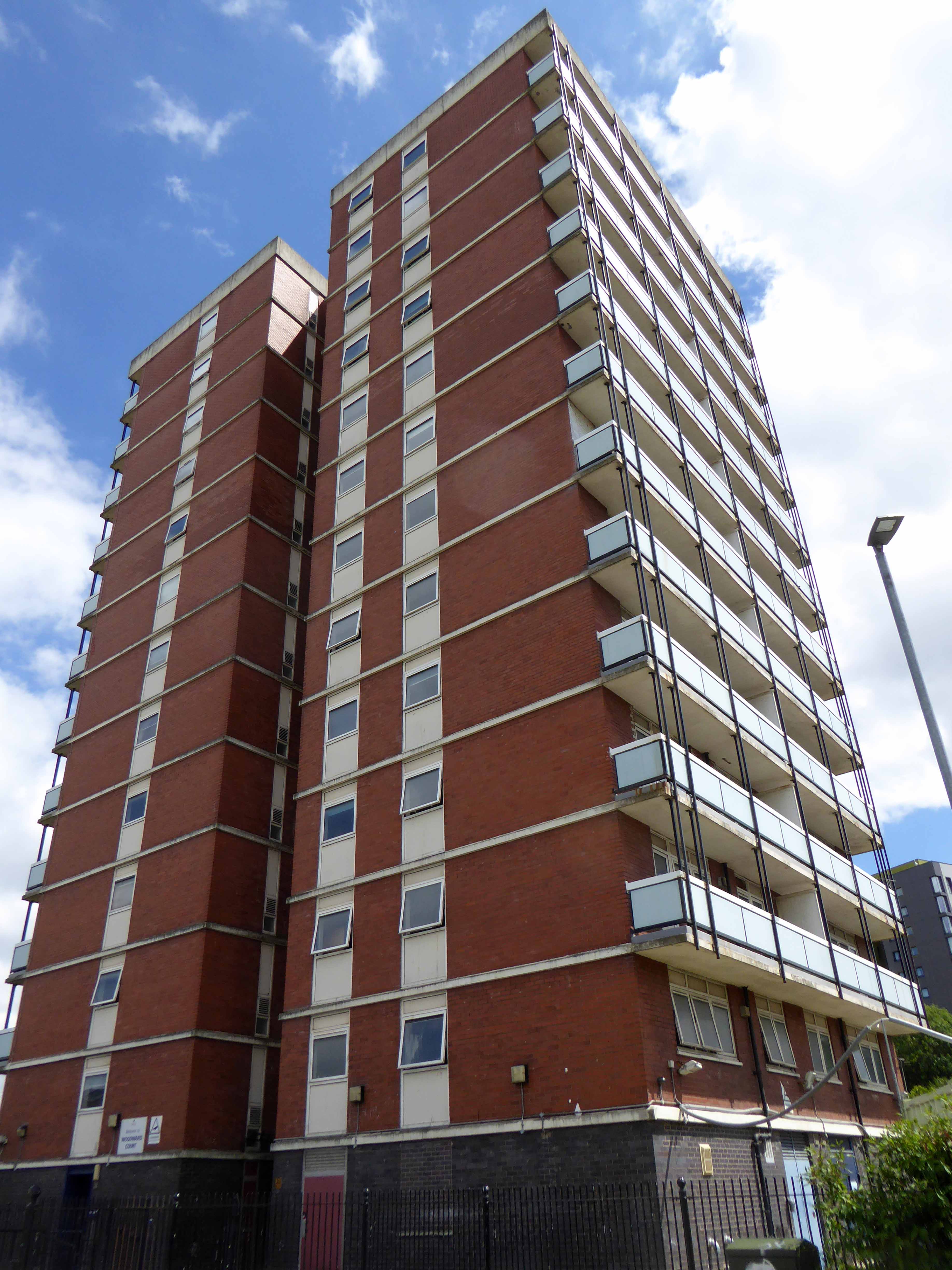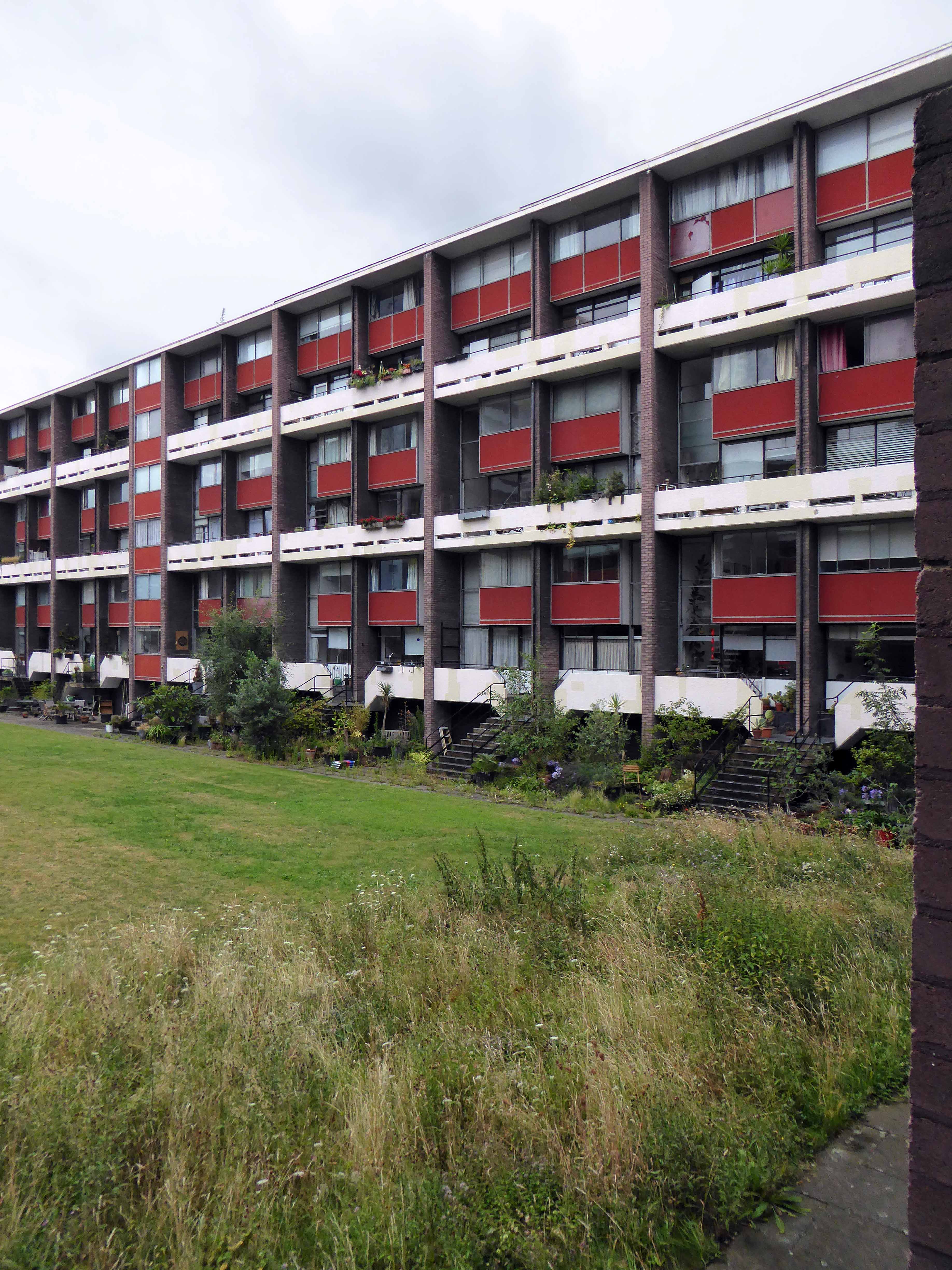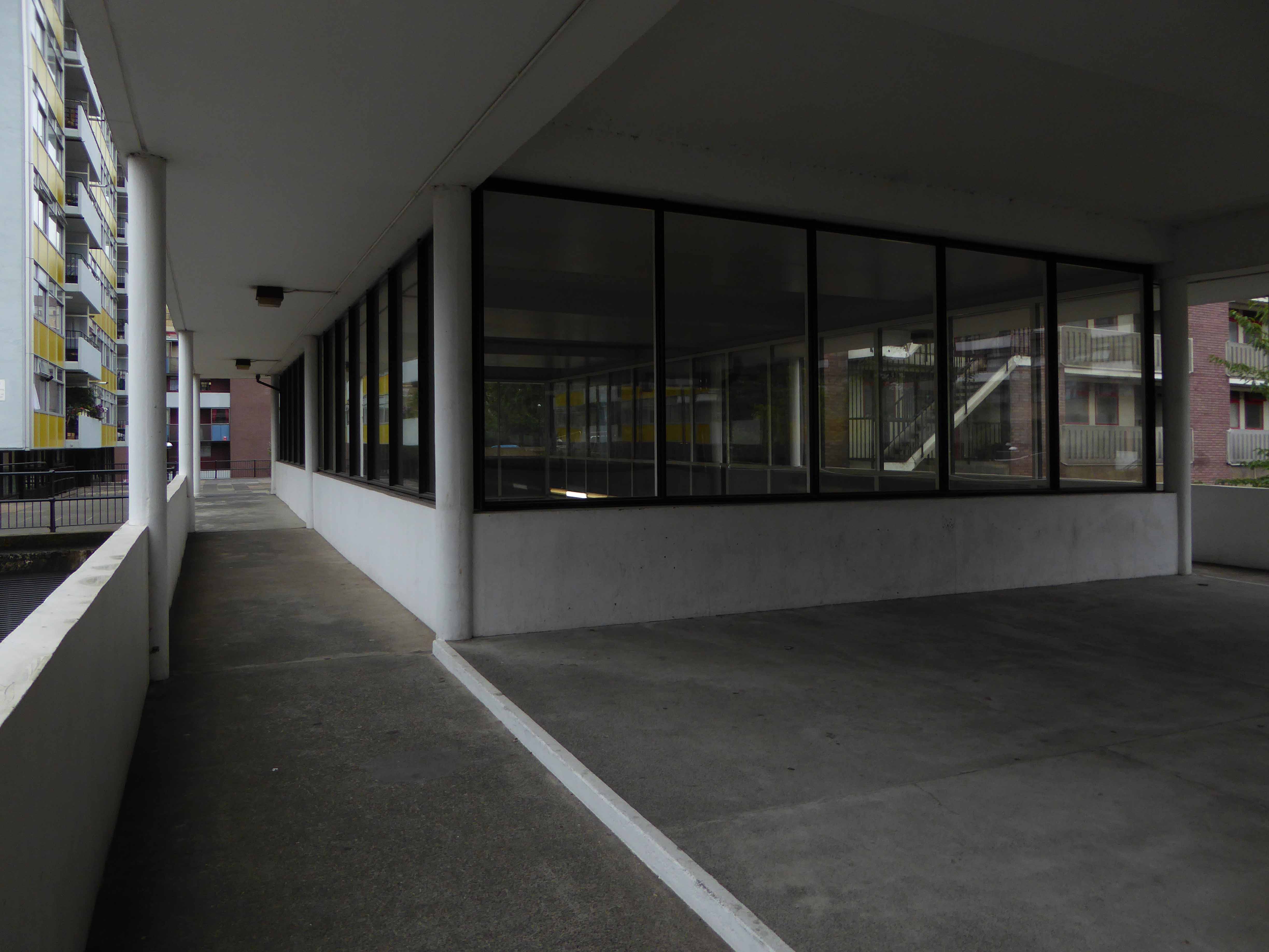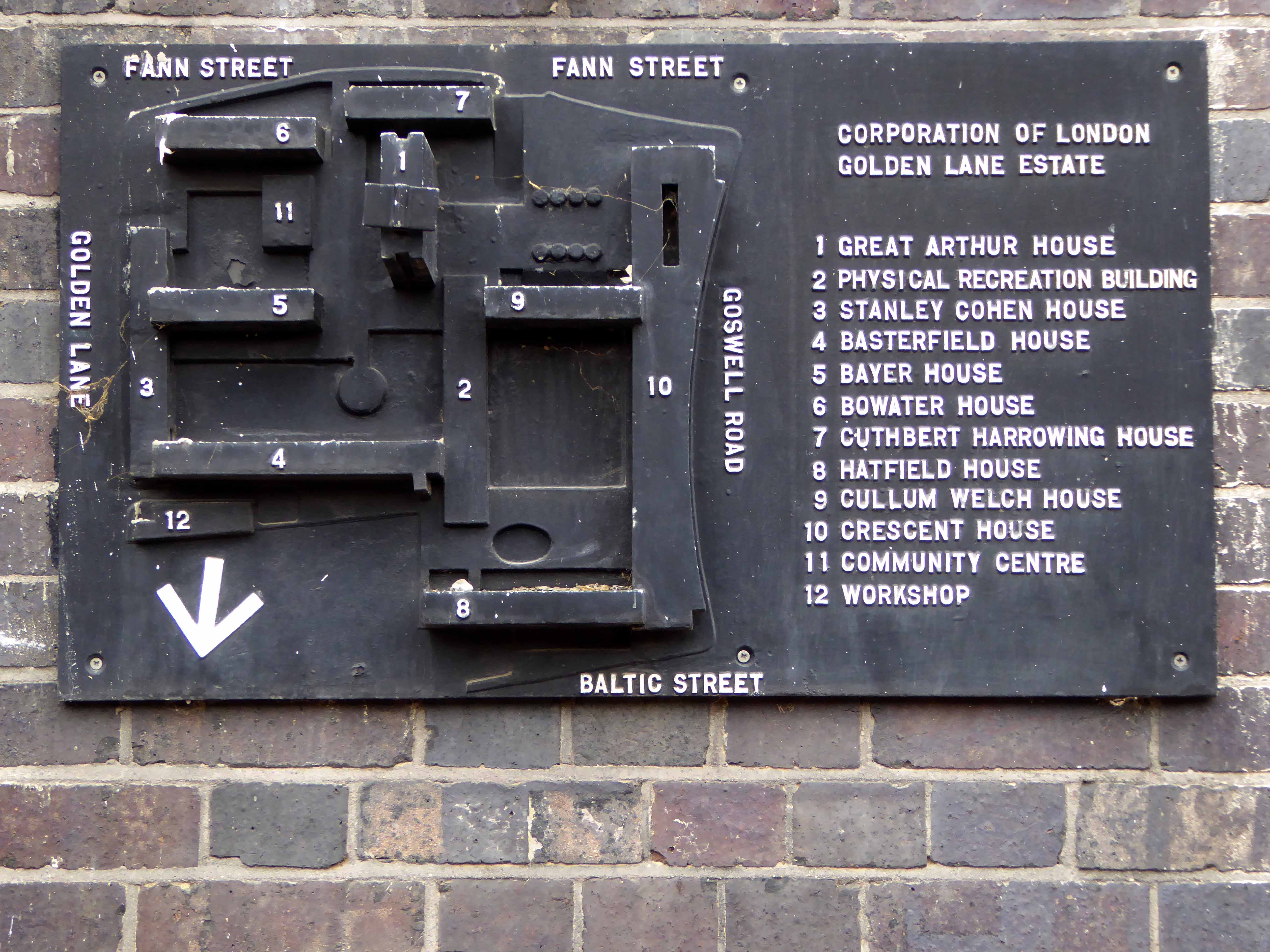 Golden Lane was commissioned from architects Chamberlin, Powell and Bon by the City of London Corporation (which still manages it) and built on bombed sites previously occupied by small businesses and industries. Some of the basement areas of the former buildings were retained as sunken areas of landscaping. Building took place over a 10-year period between 1952 and 1962 when Crescent House on Goswell Road was completed. Golden Lane was listed Grade II in 1997 (Crescent House is Grade II*). When built, Great Arthur House was the tallest residential building in London and its Le Corbusier inspired design included a resident’s roof garden. The estate also included a leisure centre with a swimming pool and tennis courts. It is now run by a private operator and is open to both residents and the general public.