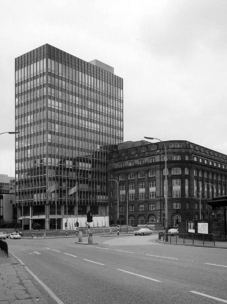 The Co-Operative Insurance Society (CIS) Chief Office was built between 1959-62. Its aim was to provide the company with a headquarters in the north comparable to anything in London. Operating from ten different sites in Manchester following the war, the company wished to consolidate their activities within a landmark building, and took advantage of a bomb-cleared site on Miller Street. The architect was Gordon Tait, of Sir John Burnet, Tait and Partners, who was brought in to collaborate with the already appointed Chief Architect in Manchester, G S Hay.