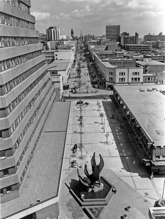 Take a look at Elements Fire Steel Brian Asquith’s work unveiled on May 10th 1965 at the former Westminster Bank – subsequently sited here on the Sheffield Hallam campus. He was also responsible for the sculptural work in the Peace Gardens.