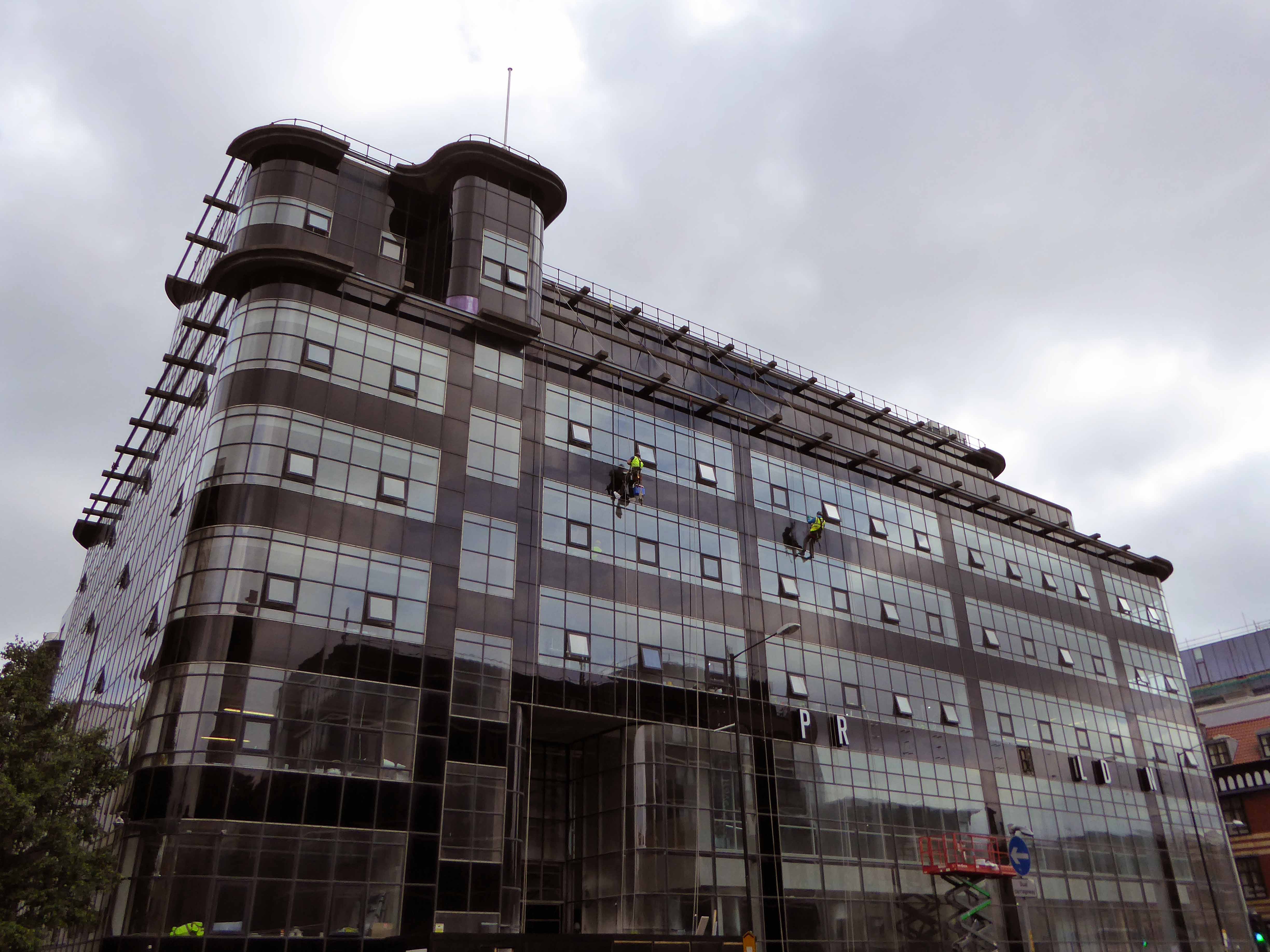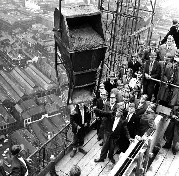 The tower was built using the then innovative technique of using a continuously climbing shutter to cast a central core; pre-fabricated cladding was then lifted into place using a tower crane. This technique led to rapid construction, avoided the need for scaffolding, and allowed the lower floors to be occupied while building continued higher up. The combination was very cost-effective, but was not flawless by any means. On a windy night the windows of the building blew off, ending up in Salford Bus Station.