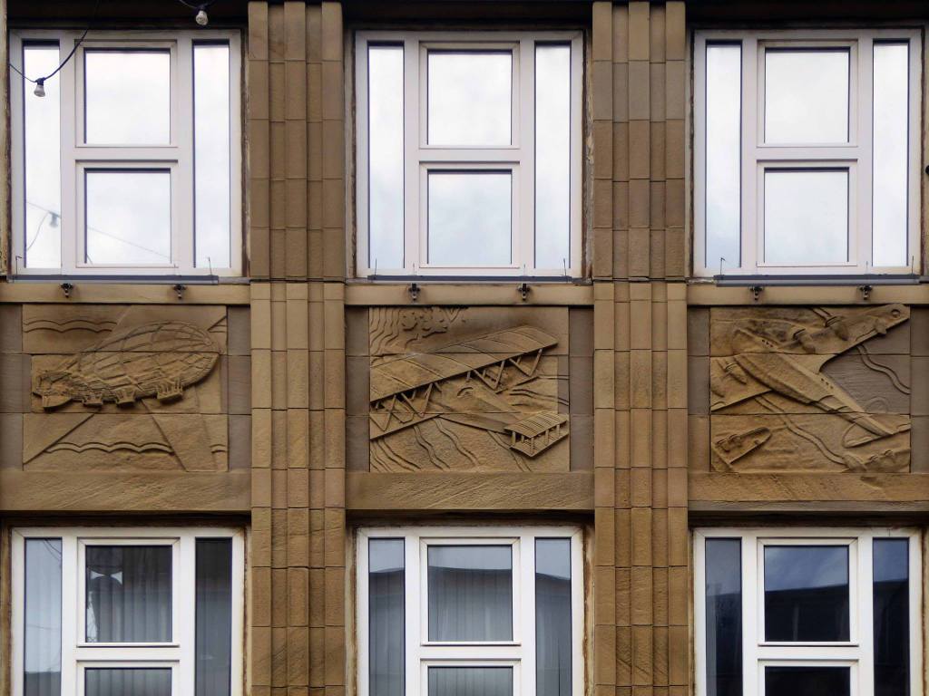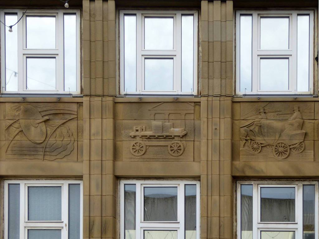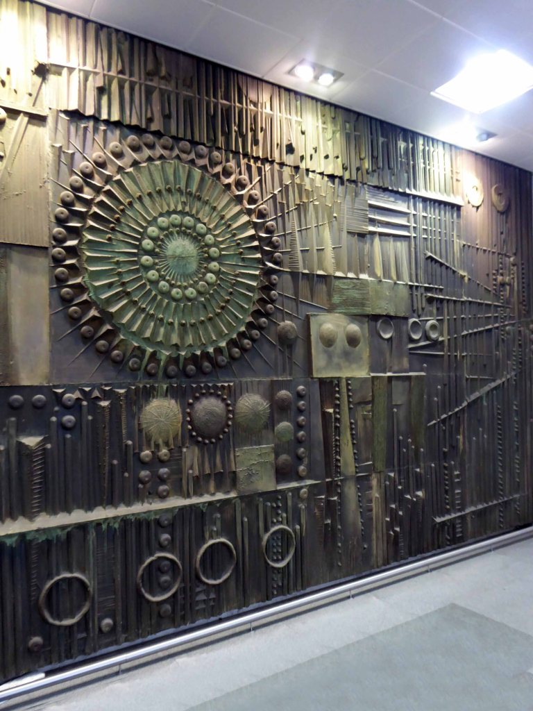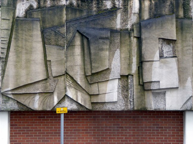 Though there are rumours of a change of use and this wall relief by John Brumby is still visible.