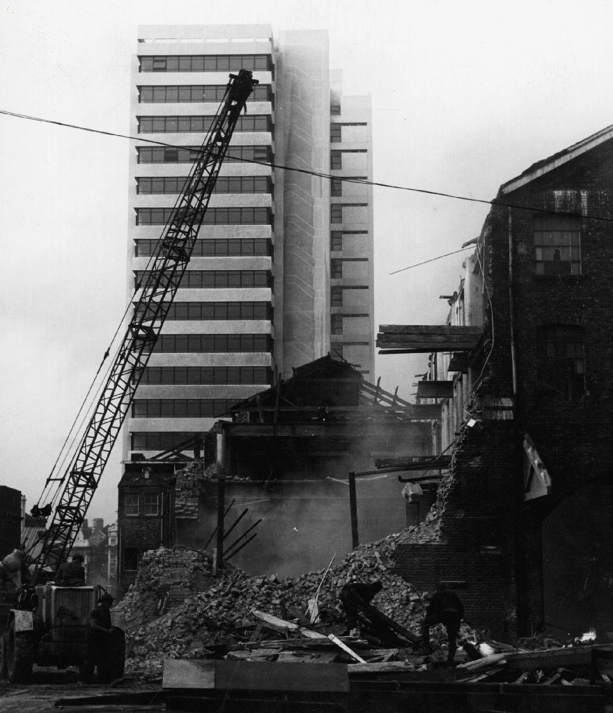 It can be seen here as the demolition takes place, preparing for a new arrival on the approach to Piccadilly Station.