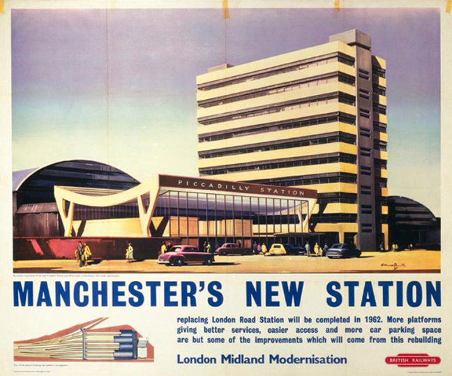 Oxford Road Station 1960 W.R. Headley and Max Glendinning and structural engineer Hugh Tottenham, a Sydney Opera House in miniature sans the grand guignol.