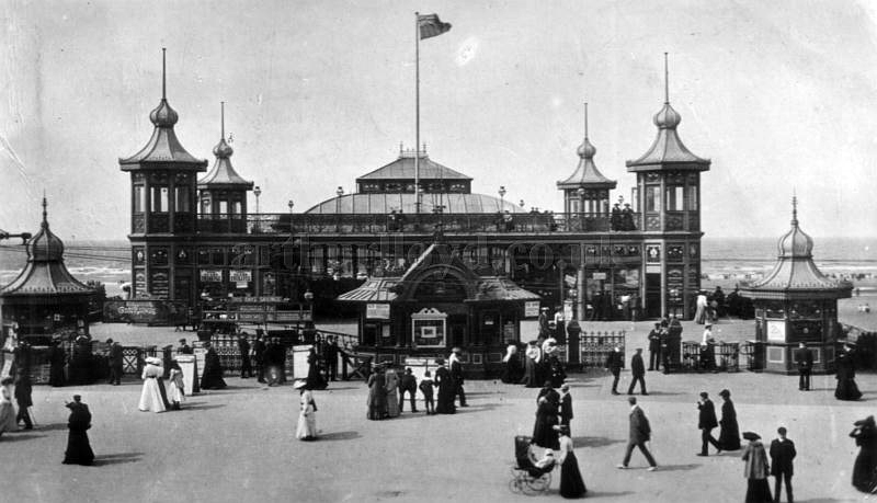 The Blackpool South Shore Pier & Pavilion Co. Ltd. was registered in November 1890 and work began to build the pier in 1892. It was constructed, at a total cost of £50,000, using a different method than that used for North and Central piers, the Worthington Screwpile System. It opened, with a choir, two brass bands and an orchestra on Good Friday, 1893. The 3,000 capacity Grand Pavilion opened on 20 May. At 163 yards long, it was the shortest of the three piers, and had 36 shops, a bandstand, an ice-cream vendor and a photograph stall. It was built shorter and wider than North and Central piers to accommodate pavilions