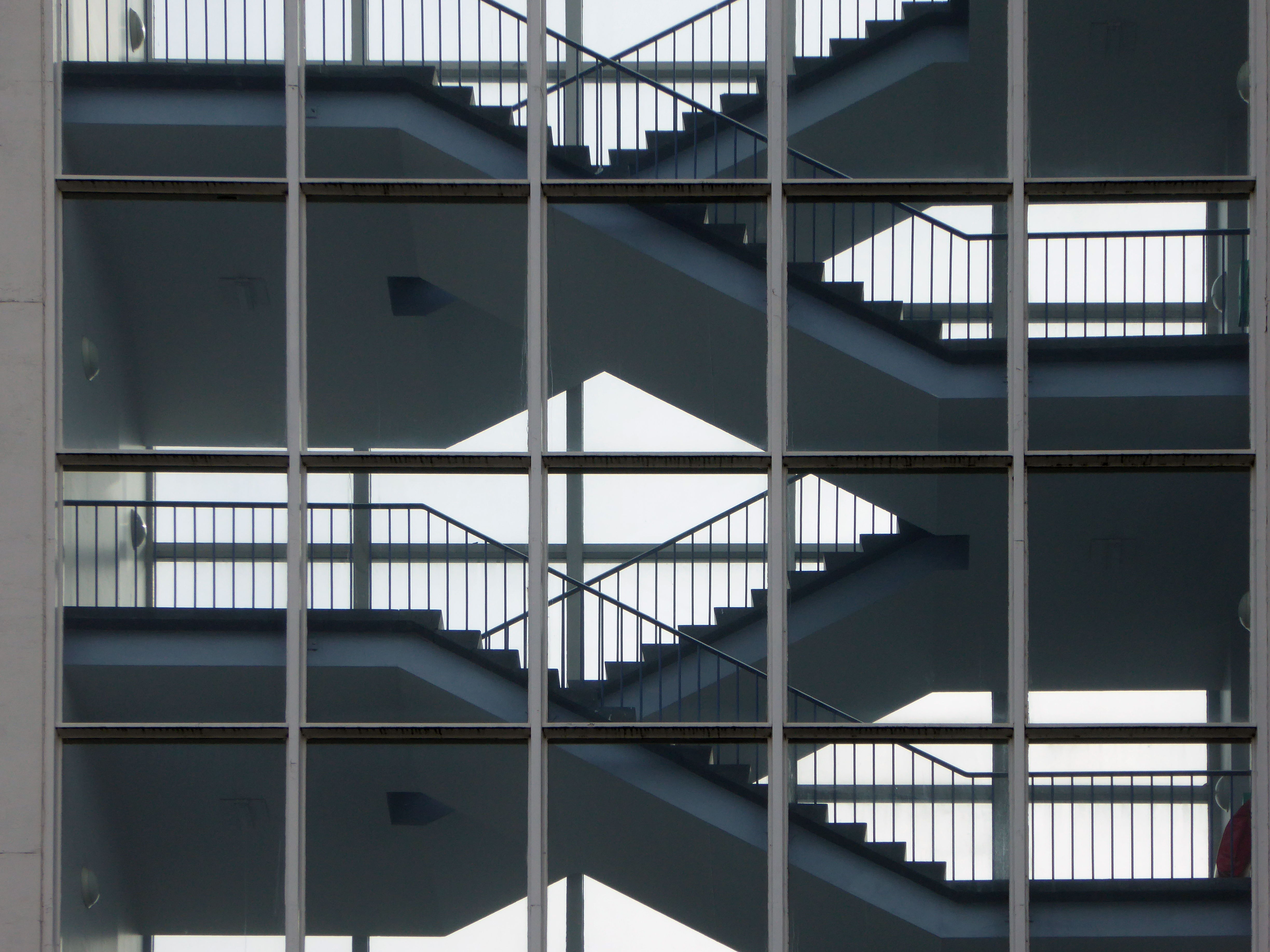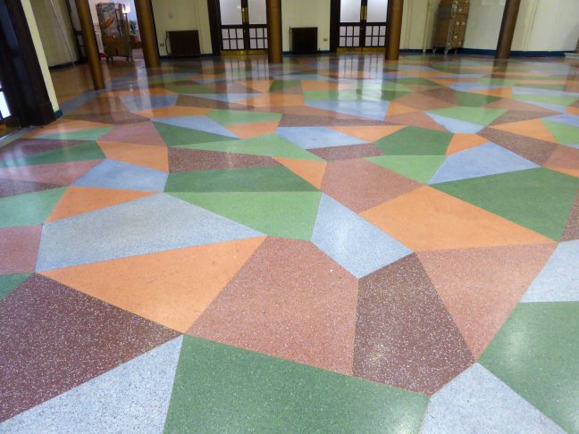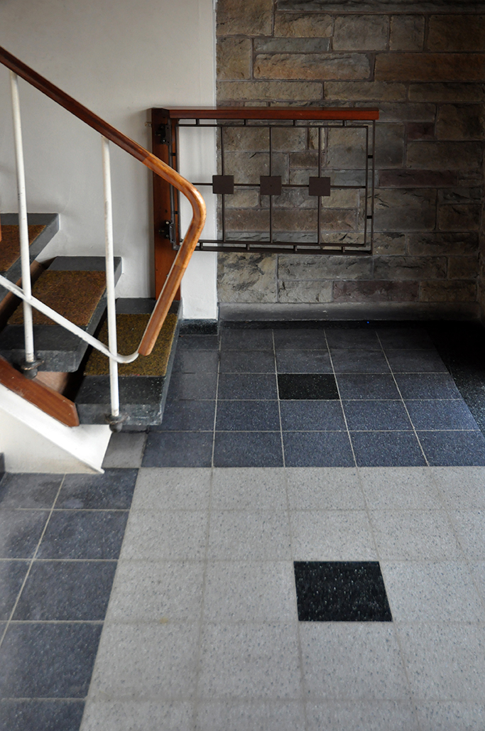 Lets take a look at the end stairwells, two very distinct designs one dotty one linear, both using Carter’s Tiles.