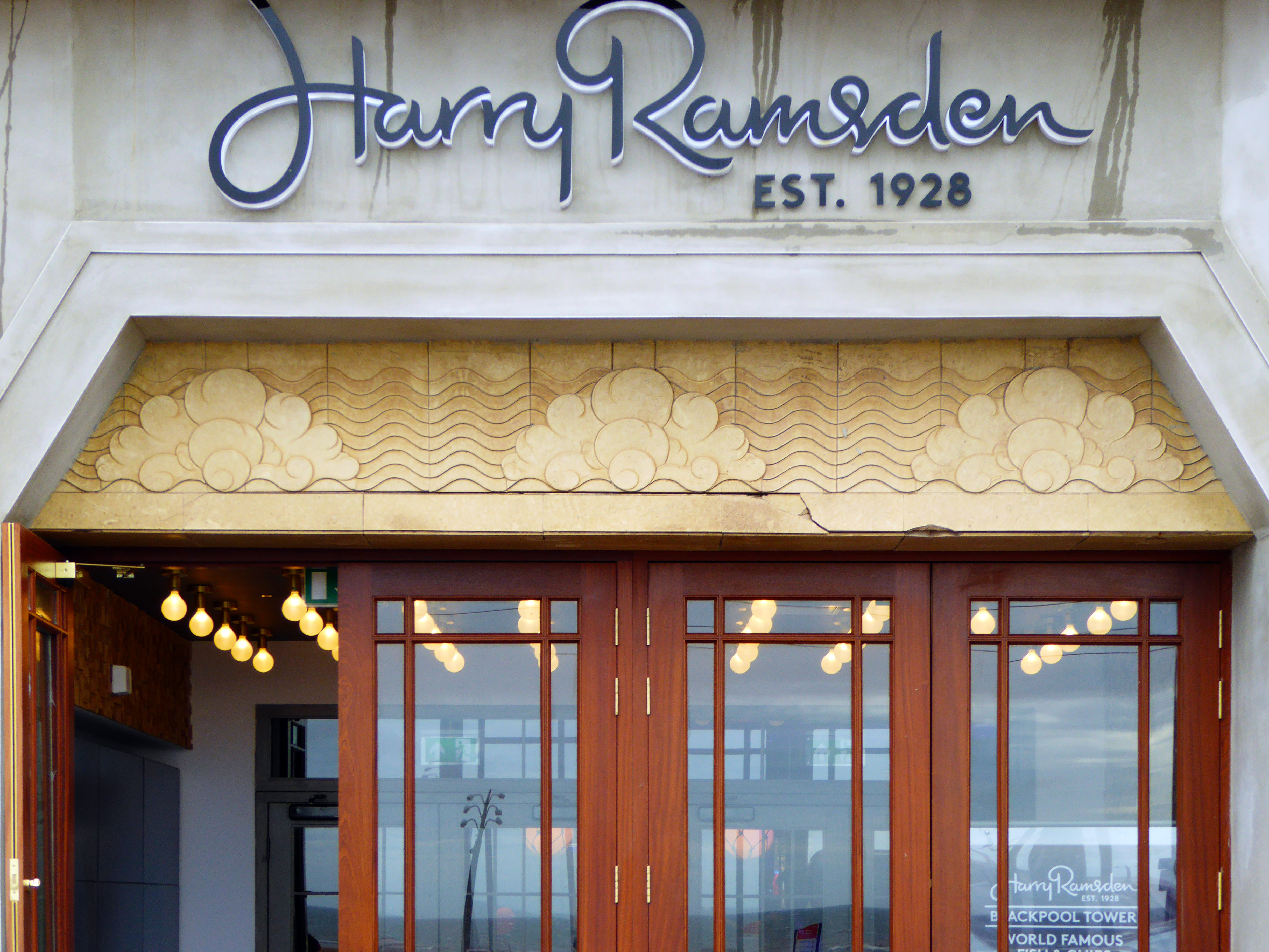 Glancing at Harry Ramsden’s delightful Deco detailing.