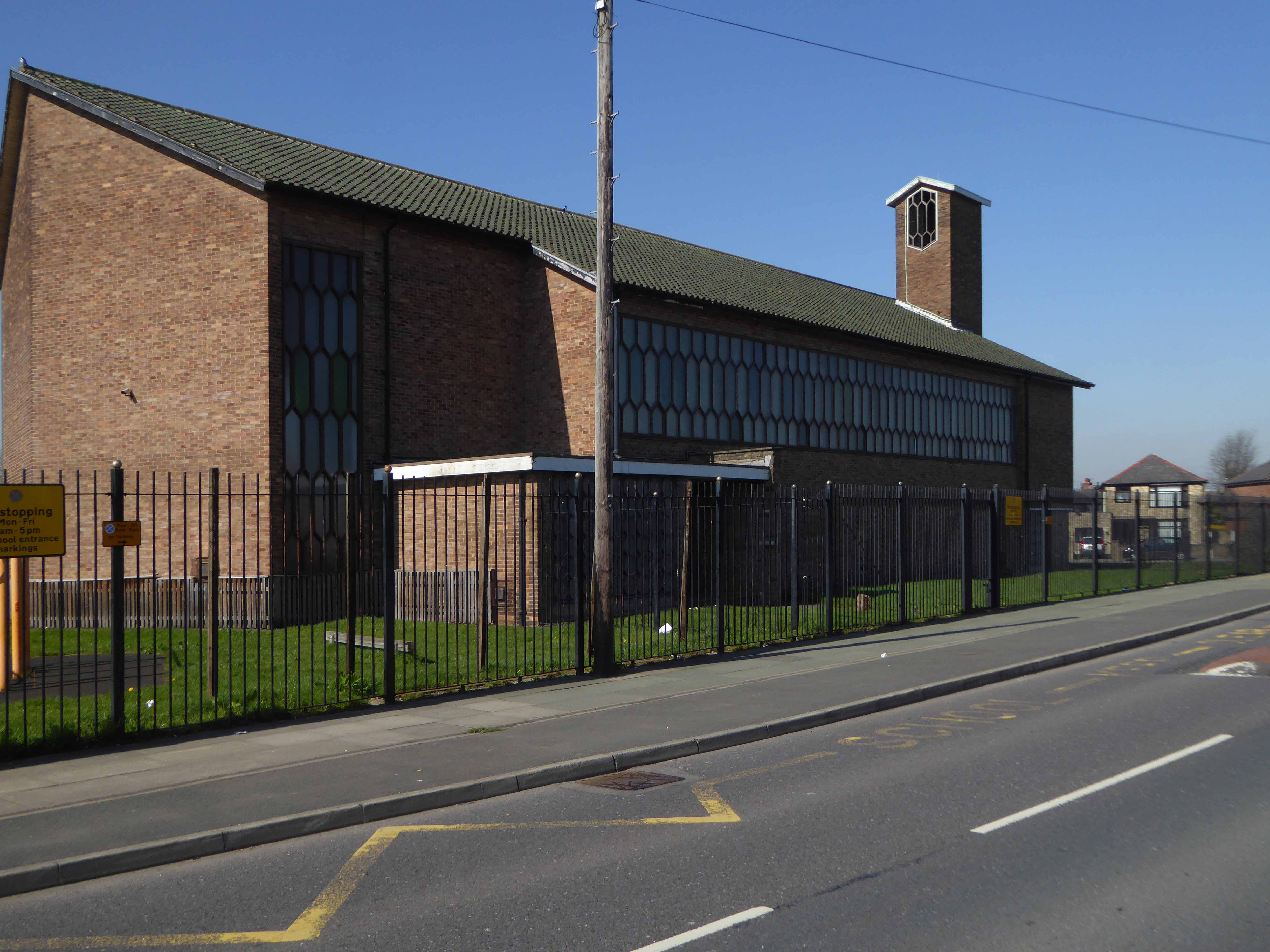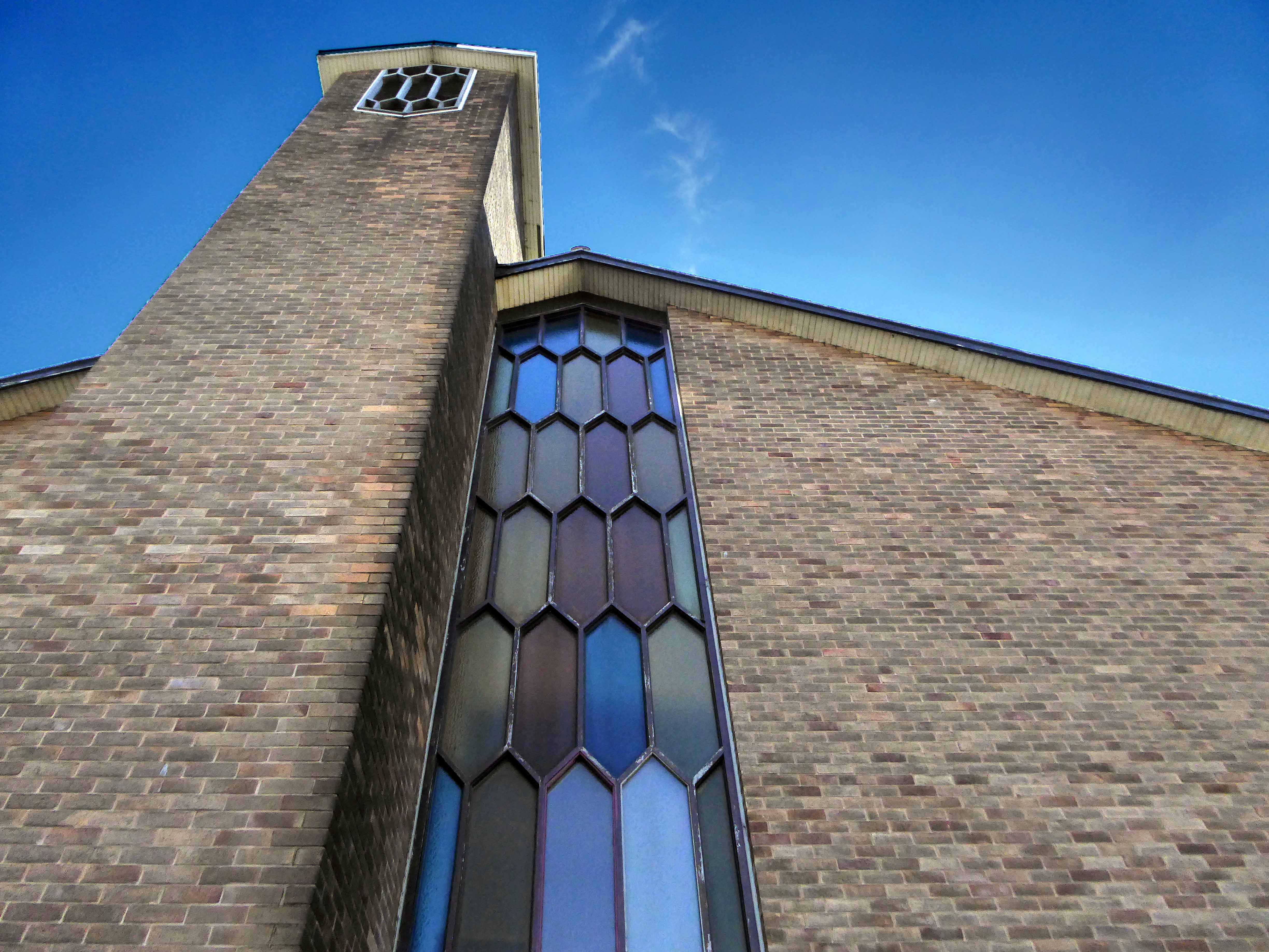 Idly pedalling down Greenside Lane looking this way and that I was drawn magnetically to a pitched roof tower, towering over the red brick semis. Rounding the corner I discovered the delightful St Stephen’s RC church, stood high and proud on a grassy corner, glowing golden in the March sunlight.