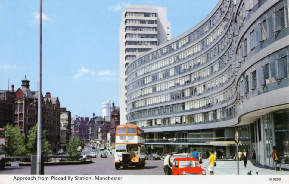 Lets hot foot it to St Peter’s Square before Stanley Baker falls off the roof of the Refuge – where Peter House 1958 Amsell and Bailey awaits.