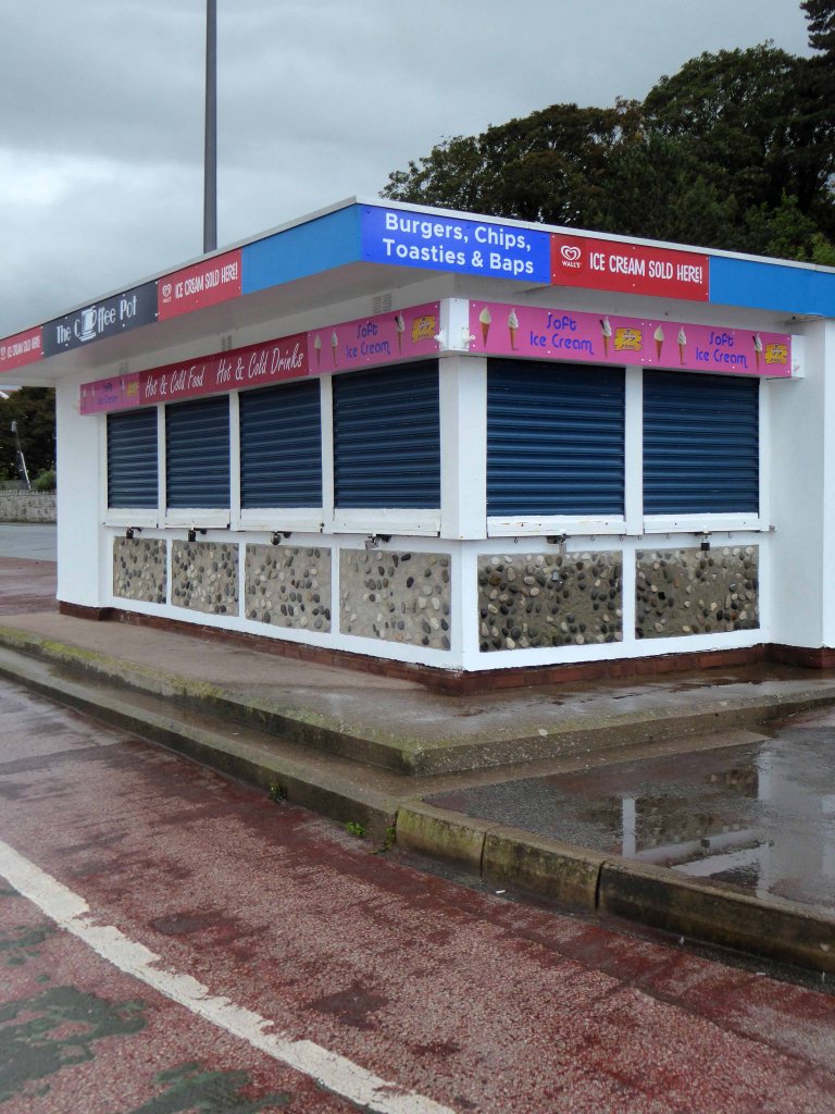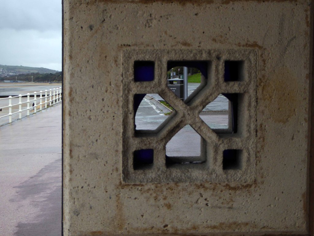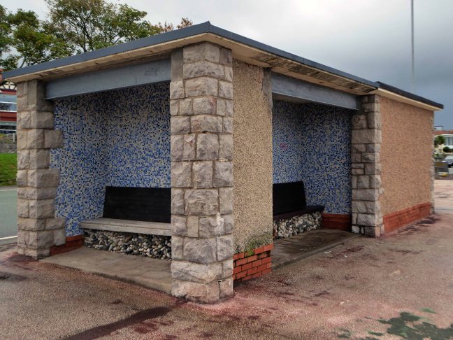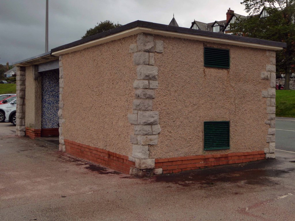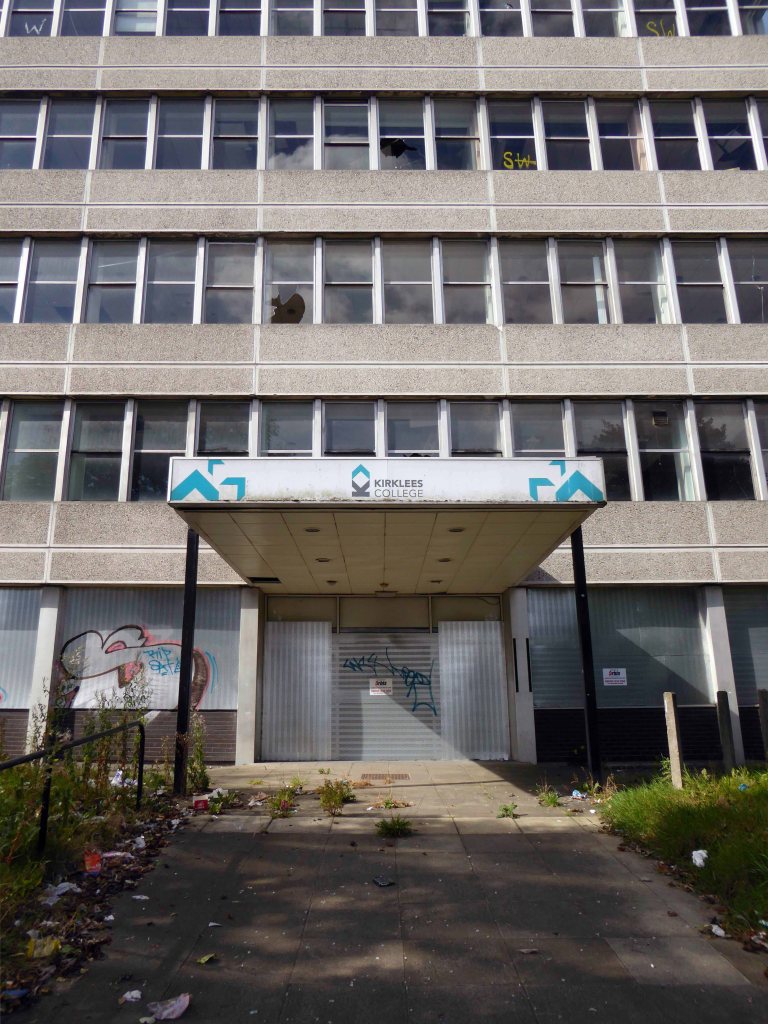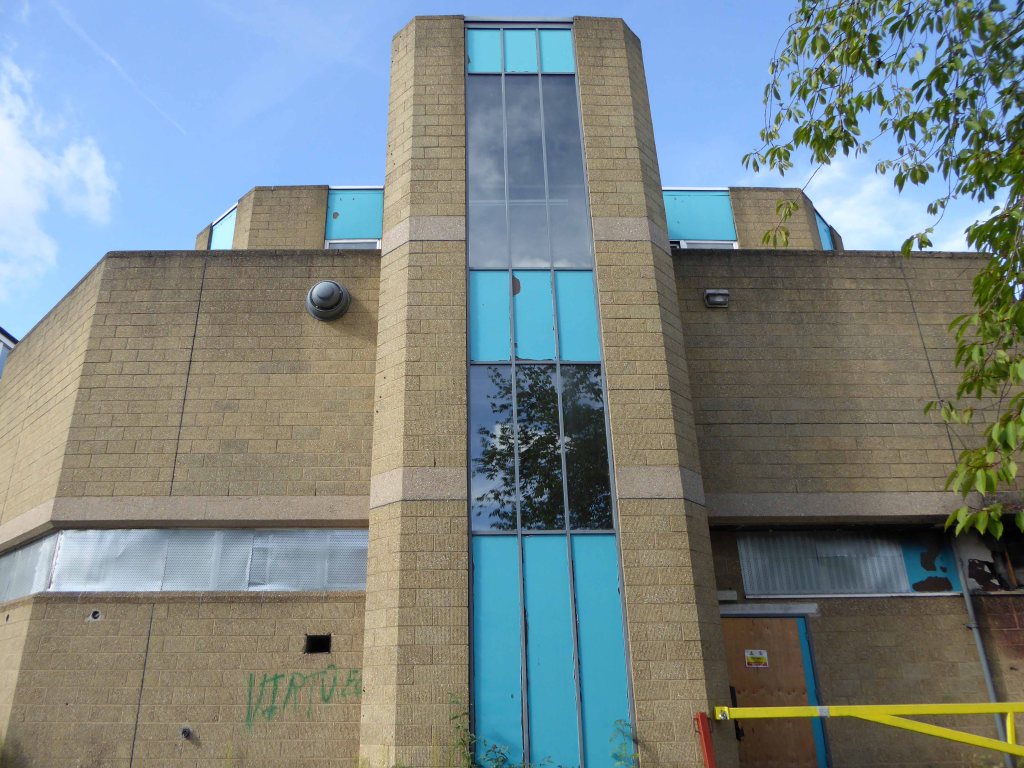Over the road and up onto the elevated car parking space above Merseyway where we can catch sight of The George an inter-war pub now permanently tinned up.