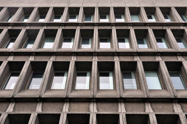 Now modified as a Po-Mo Hi-Tec shadow of its former self some details and untreated concrete do remain.