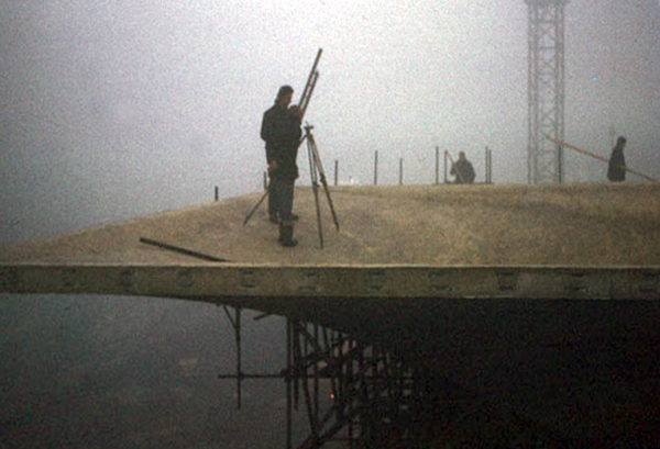 Slowly emerging from the rough ground – a series of glass and steel boxes worthy of that master of minimalism Ludwig Mies van der Rohe, a Neue Nationalgalerie in miniature.