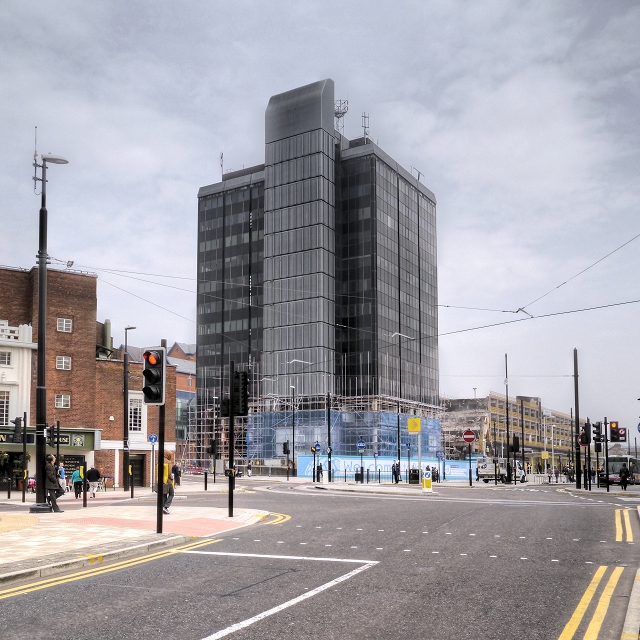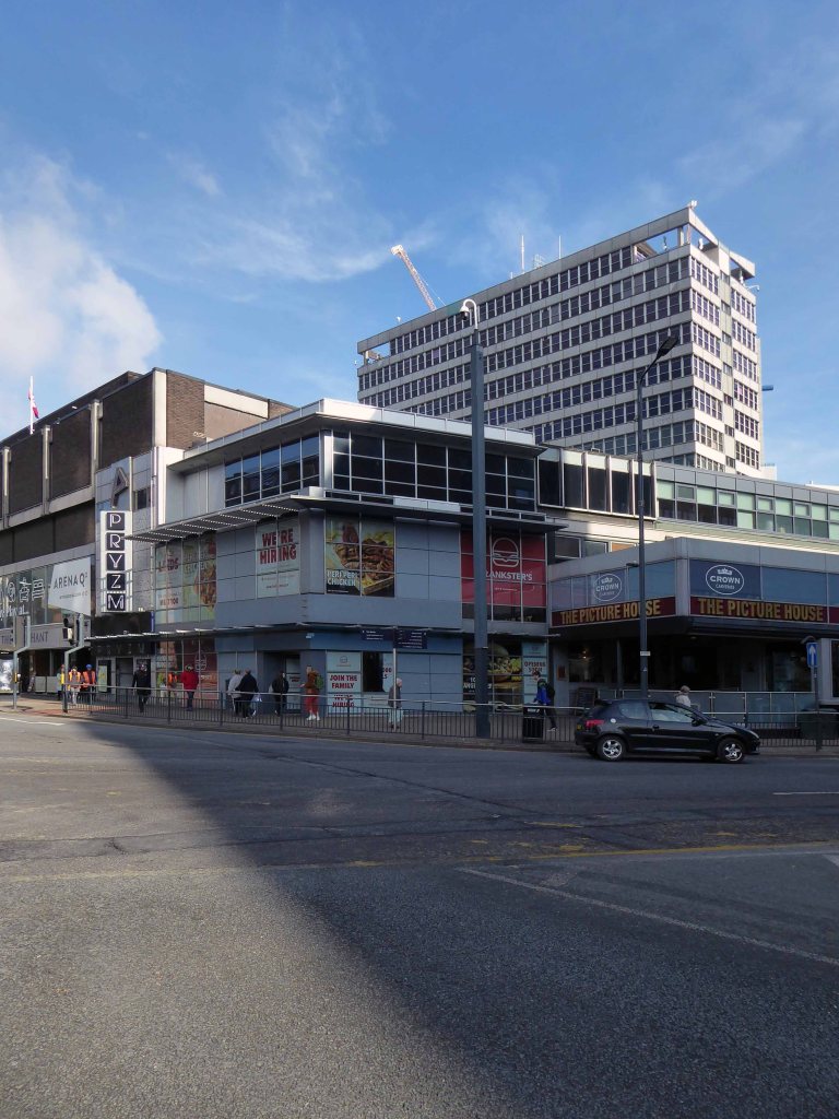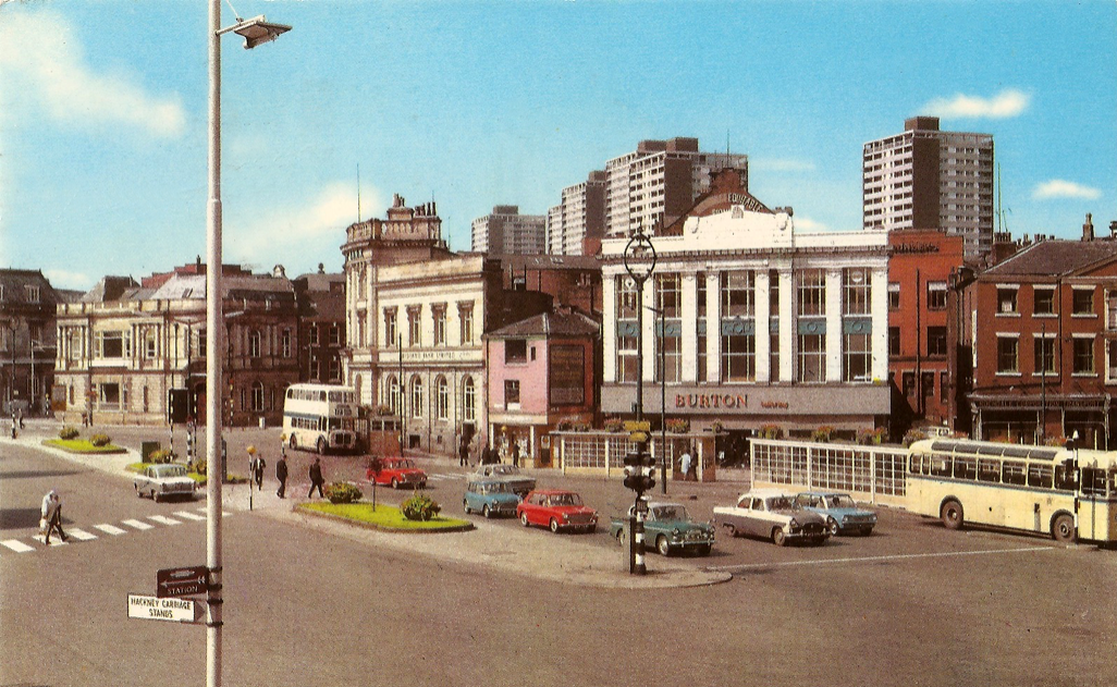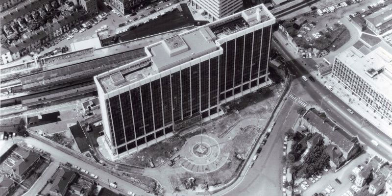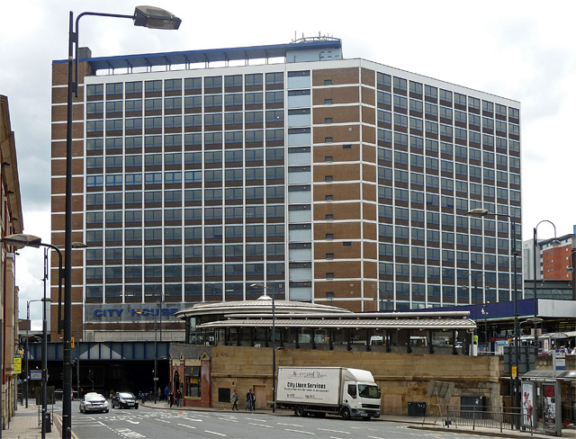 Atop the station John Poulson’s 1967 City House – now re-clad in the modern manner and badged as Bruntwood owned Platform One.