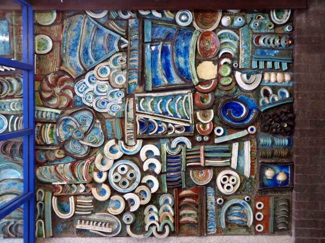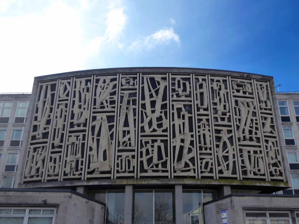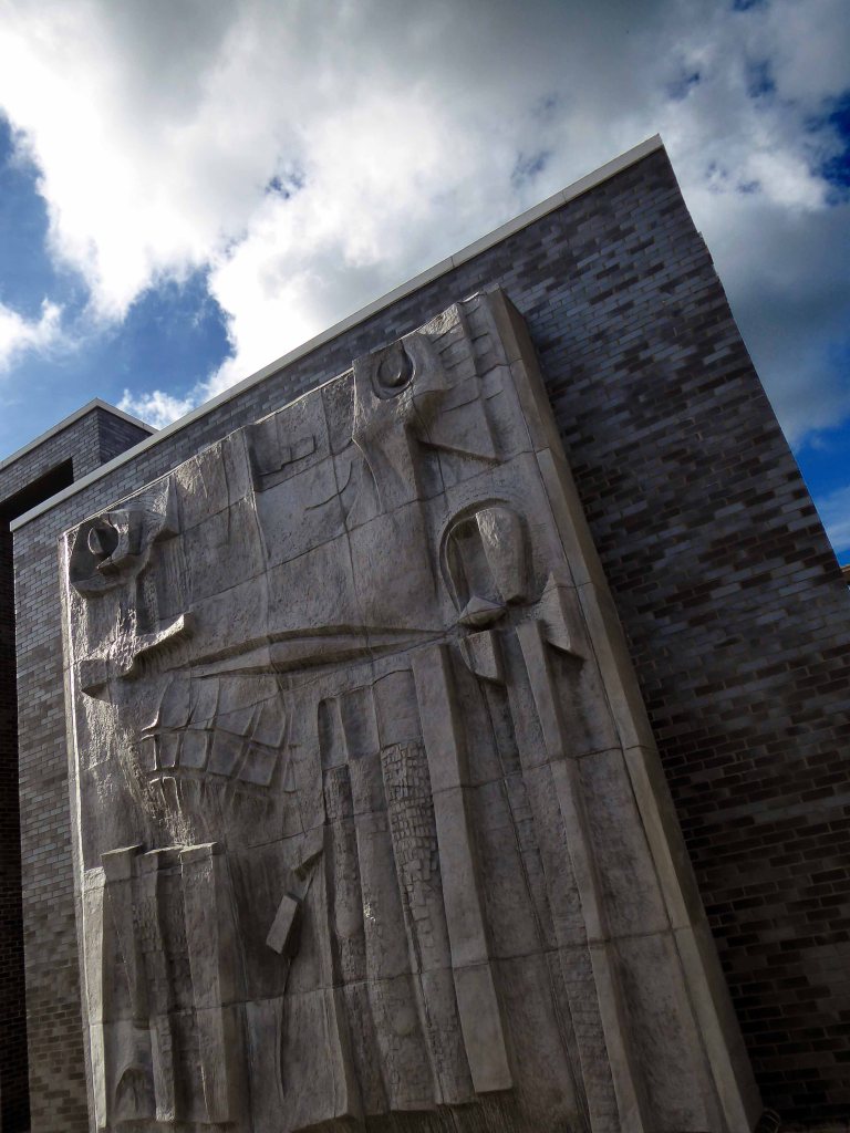 Let’s wend our way homewards via Hubert Dalwood’s 1961 Untitled Bas-Relief now see this on the theatre Stage@Leeds, it was originally up at the University’s Bodington Hall of residence.