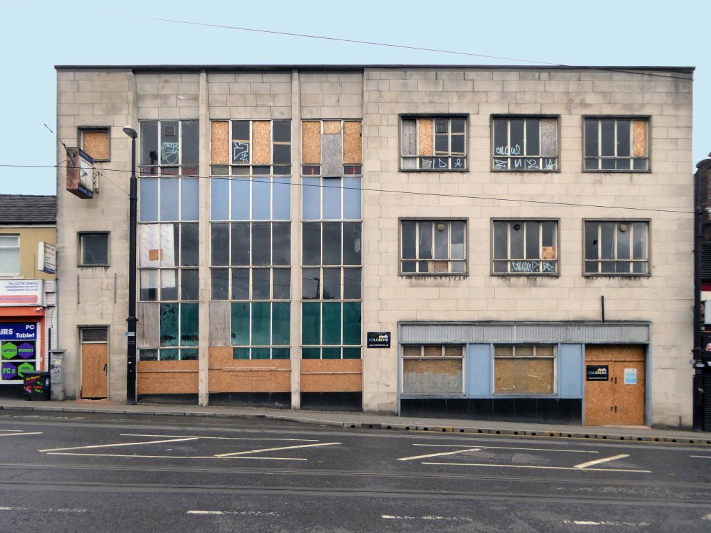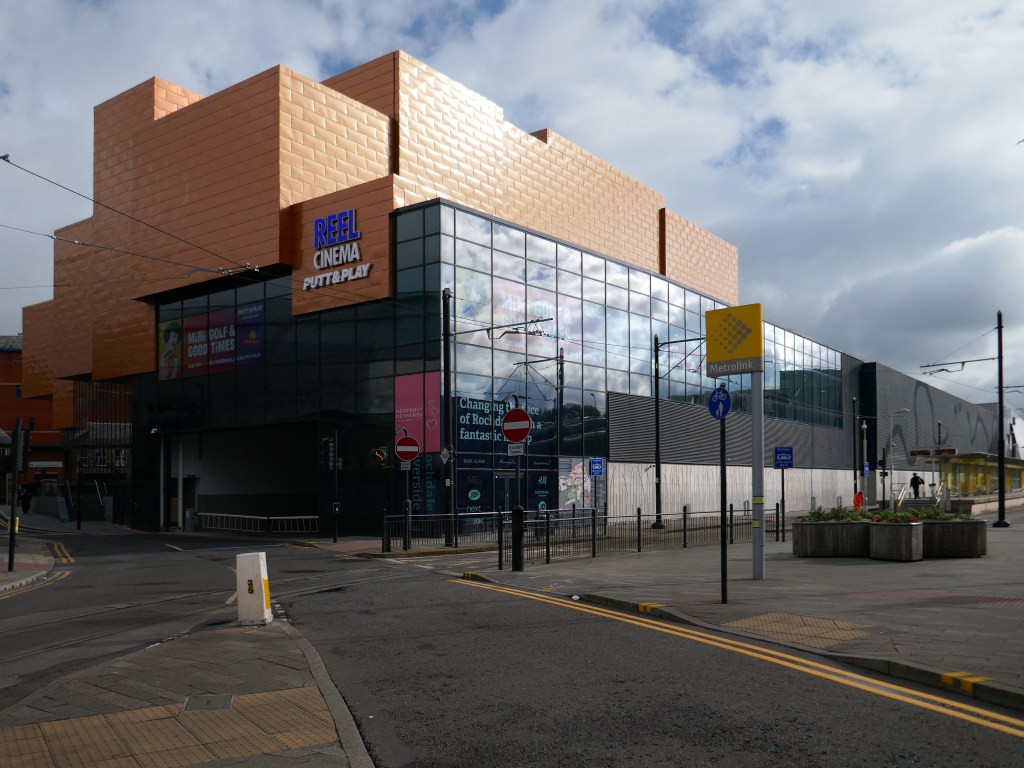 Let’s walk into town following the tram tracks past the former Rochdale Observer Offices.