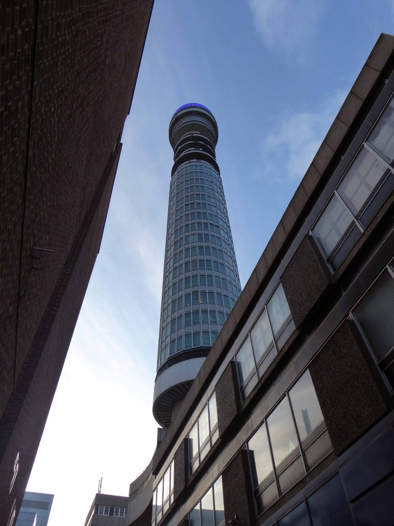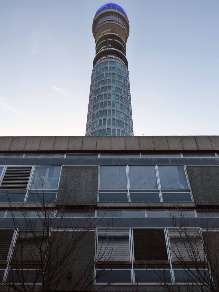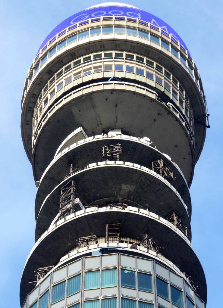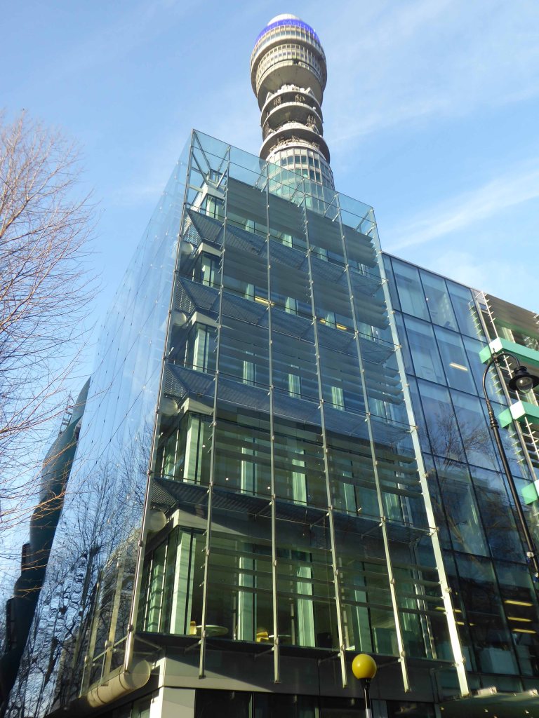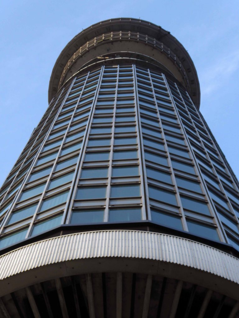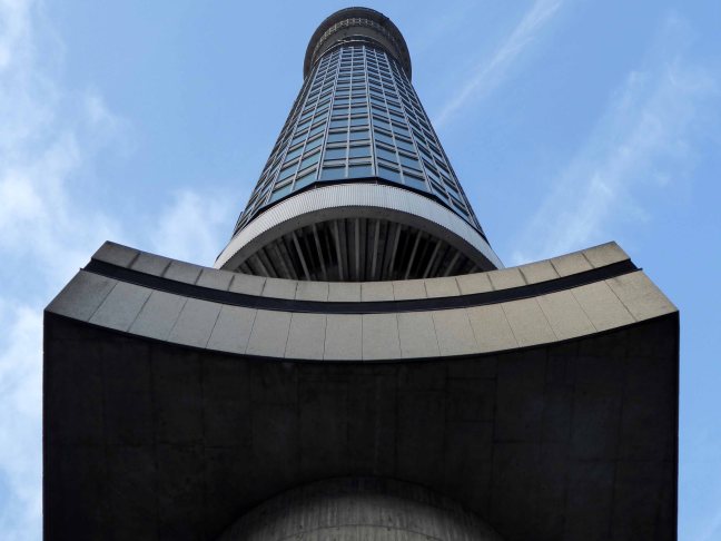 The tower was designed by the architects of the Ministry of Public Building and Works: the chief architects were Eric Bedford and G. R. Yeats. Typical for its time, the building is concrete clad in glass. The narrow cylindrical shape was chosen because of the requirements of the communications aerials: the building will shift no more than 25 centimetres in wind speeds of up to 95 mph. Initially, the first 16 floors were for technical equipment and power. Above that was a 35-metre section for the microwave aerials, and above that were six floors of suites, kitchens, technical equipment and finally a cantilevered steel lattice tower. To prevent heat build-up, the glass cladding was of a special tint. The construction cost was £2.5 million.