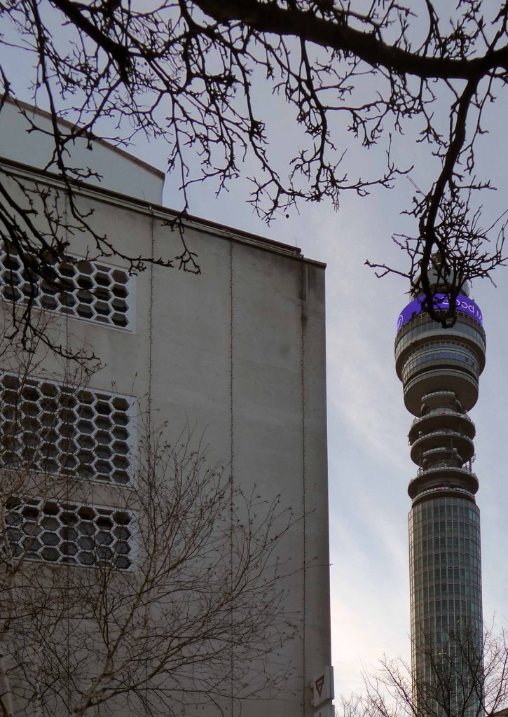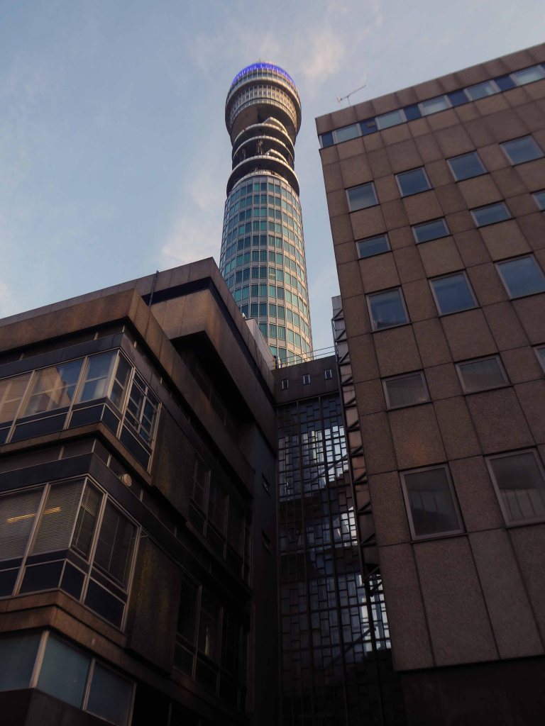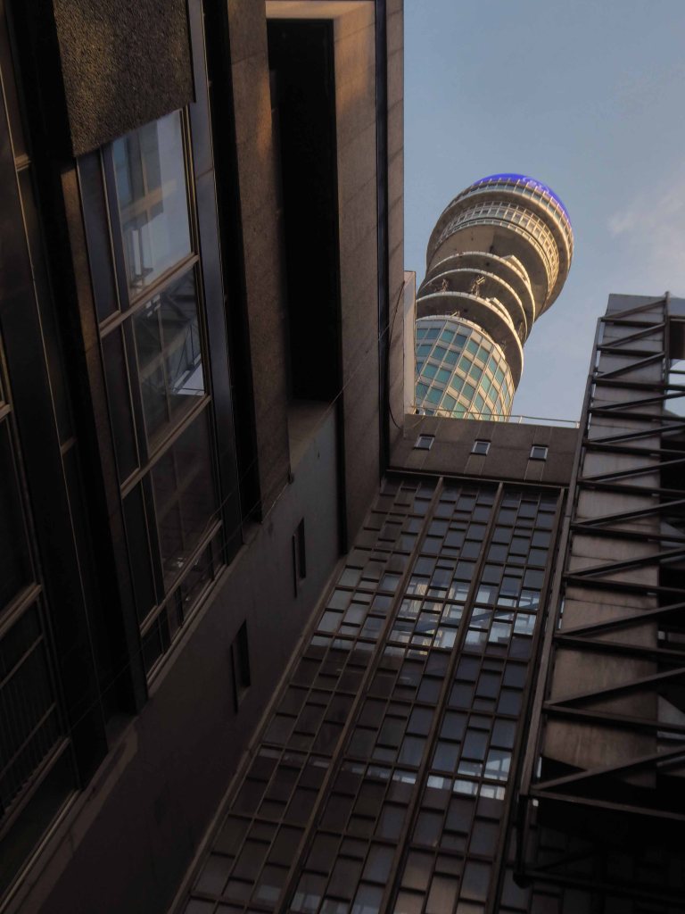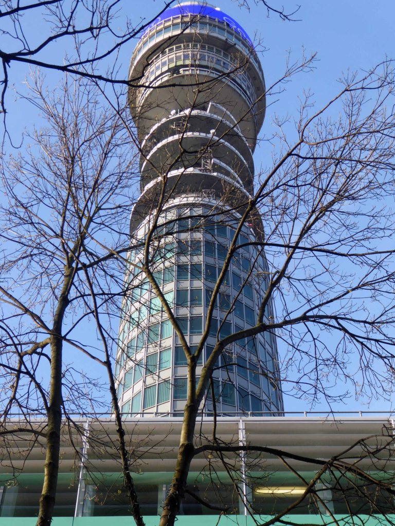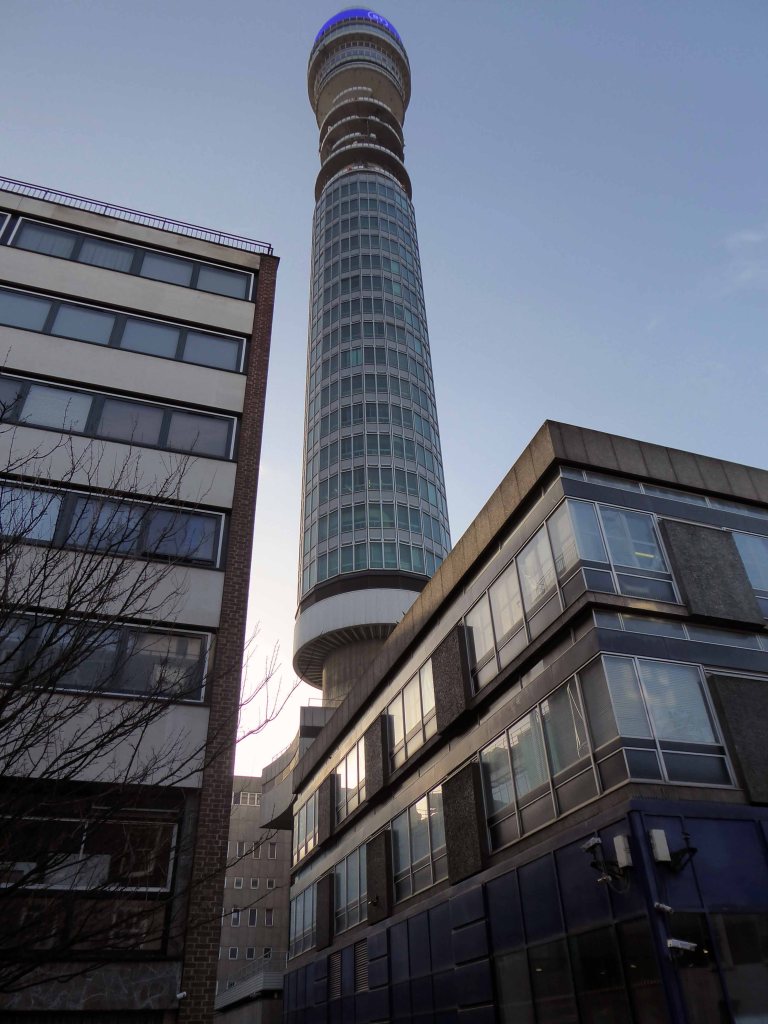 The tower was designed by the architects of the Ministry of Public Building and Works: the chief architects were Eric Bedford and G. R. Yeats. Typical for its time, the building is concrete clad in glass. The narrow cylindrical shape was chosen because of the requirements of the communications aerials: the building will shift no more than 25 centimetres in wind speeds of up to 95 mph. Initially, the first 16 floors were for technical equipment and power. Above that was a 35-metre section for the microwave aerials, and above that were six floors of suites, kitchens, technical equipment and finally a cantilevered steel lattice tower. To prevent heat build-up, the glass cladding was of a special tint. The construction cost was £2.5 million.