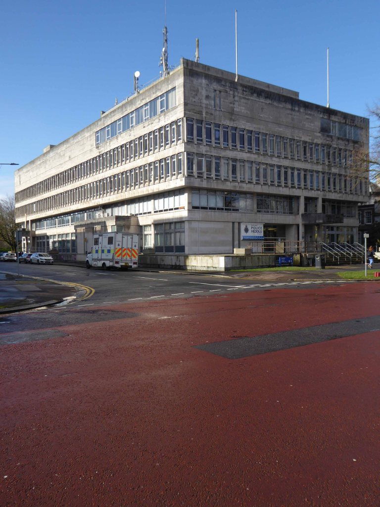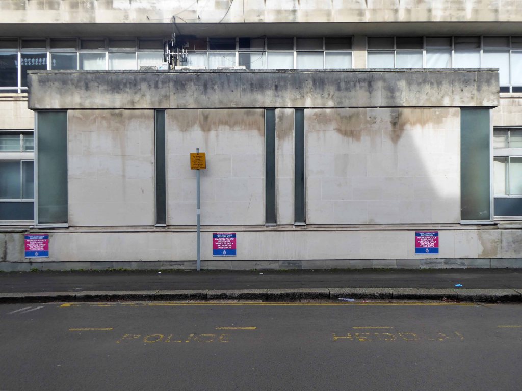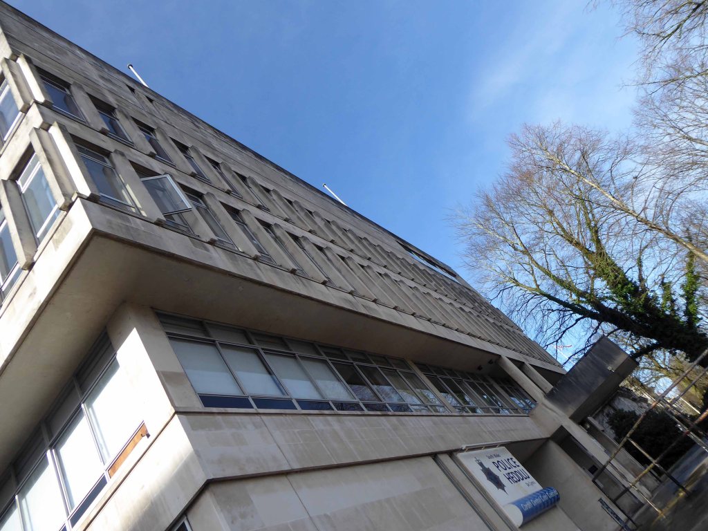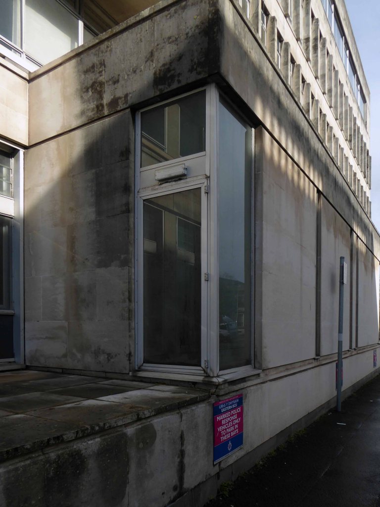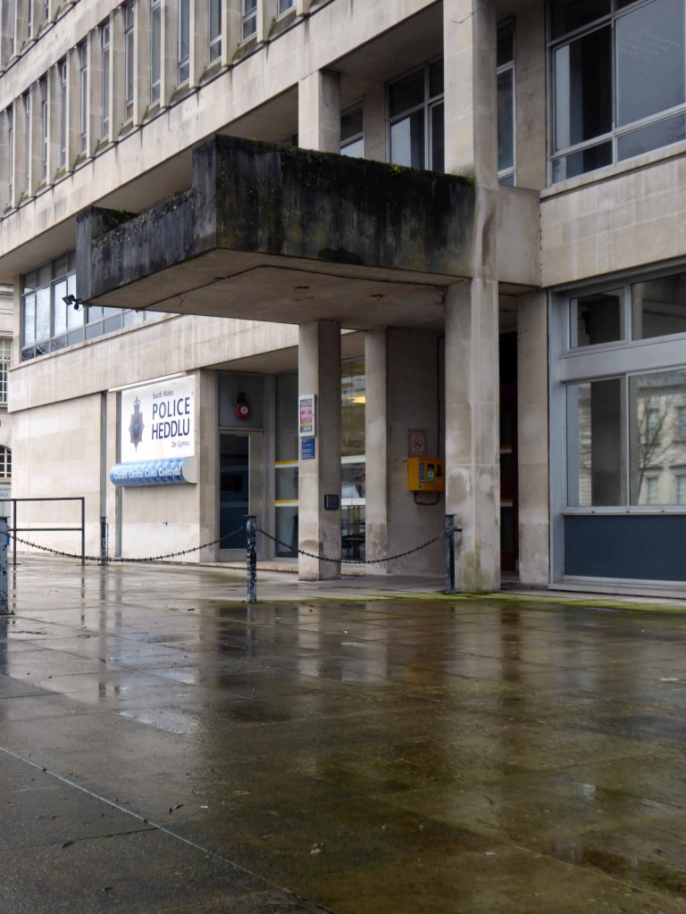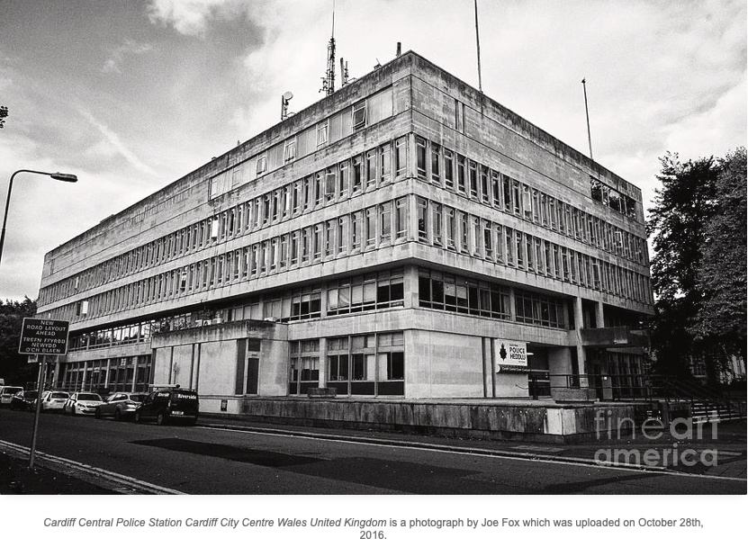The current five storey Cardiff Central police station was designed by Cardiff’s city architect John Dryburgh and built on the southern corner of Cathays Park between 1966 and 1968. It is described as: The most successful post-war building in Cathays Park and the only post-war building in the area: To be both modern and majestic
