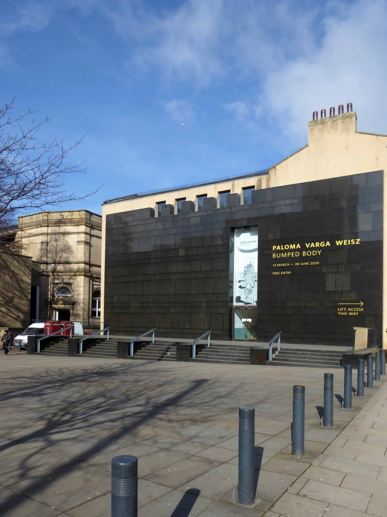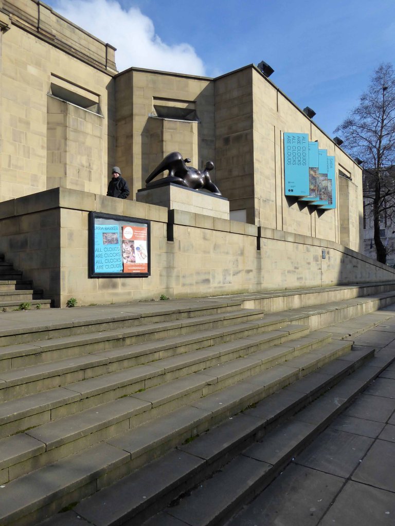 Up the rise of the Row toward the Henry Moore Institute and City Art Gallery with their modern extensions.