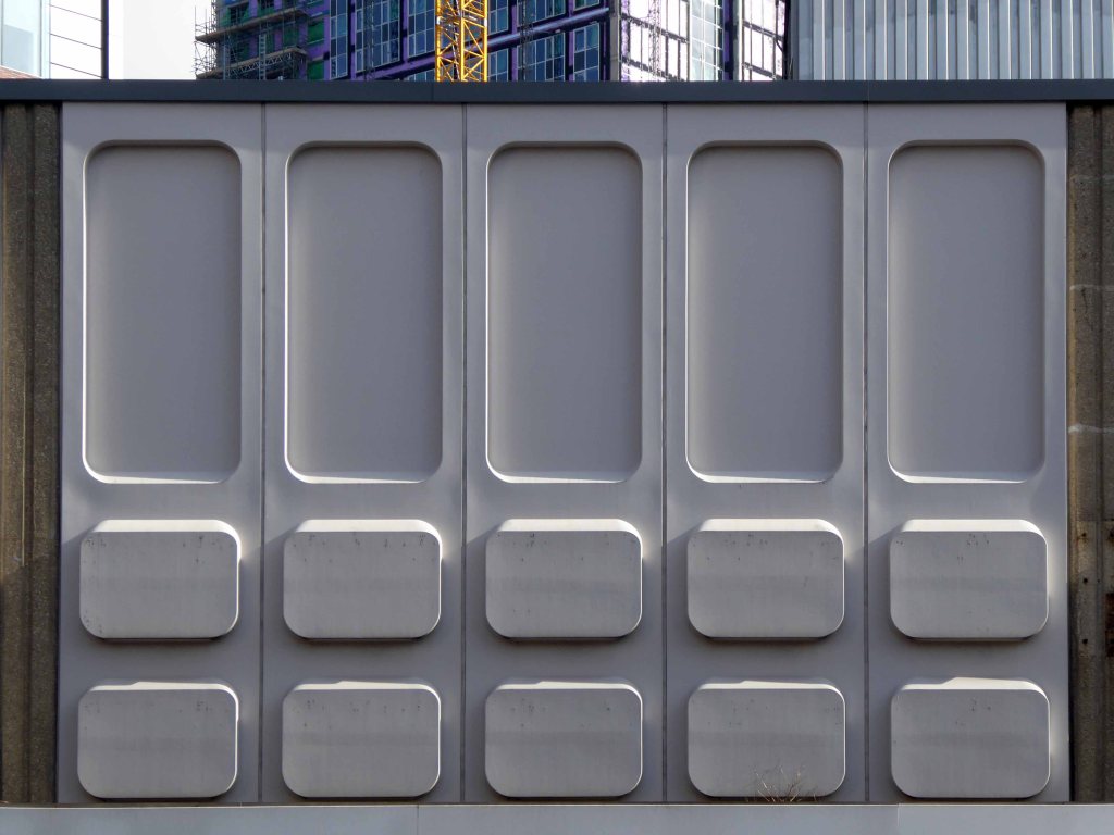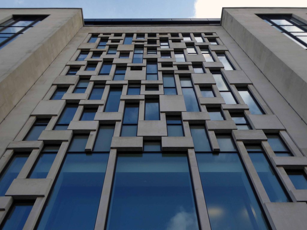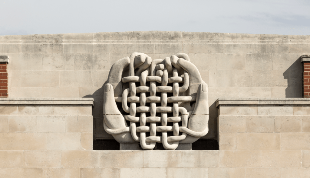 Cunliffe spent her entire working life bringing sculpture and architecture together. She wanted her work to be ‘used, rained on, leaned against, taken for granted’, declaring that her life-long dream ‘is a world where sculpture is produced by the yard in factories and used as casually as bricks’. In this case however, ‘Man-Made Fibres’ is positioned so high on the building, now called Clothworkers’ Building South, that it can easily be missed.