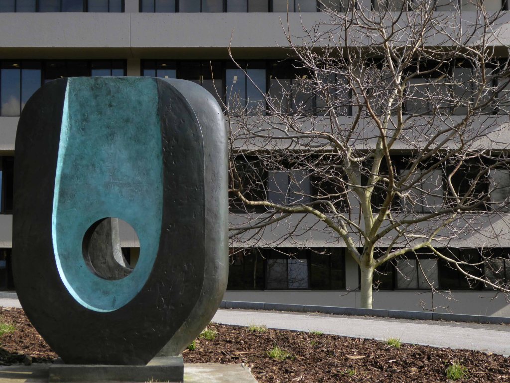 Seconds from this theatre Barbara Hepworth’s 1965 Dual Form.
