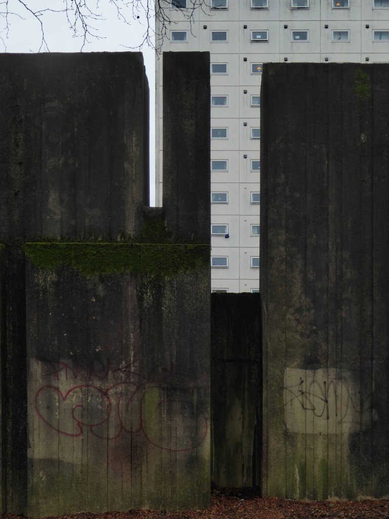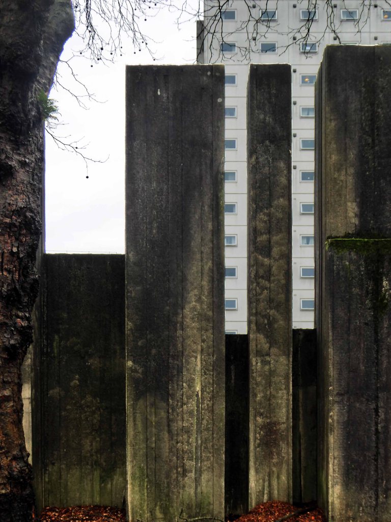 It sits by a busy London Road, behind an intrusive green steel fence, slowly acquiring a green patina – as moss and lichen attach themselves to the well weathered concrete.