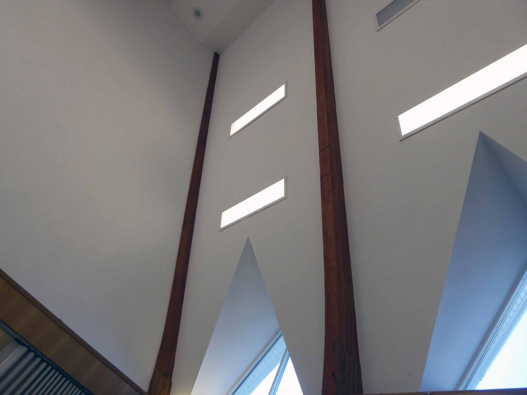 A striking A Line addition to the Stockport skyline – its steeply pitched roof punctuated by prominent triangular bays, and partnered with a prominent remote tower of wood and steel.