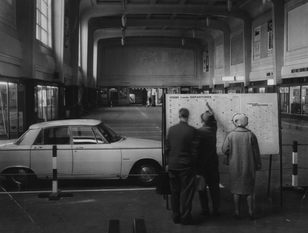 On arriving at the Leeds City Station pass through the ticket barriers and turn to your left.