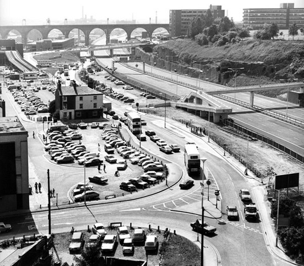 Prior to the arrival of the ring road the space remained undeveloped and turned over to car parking.